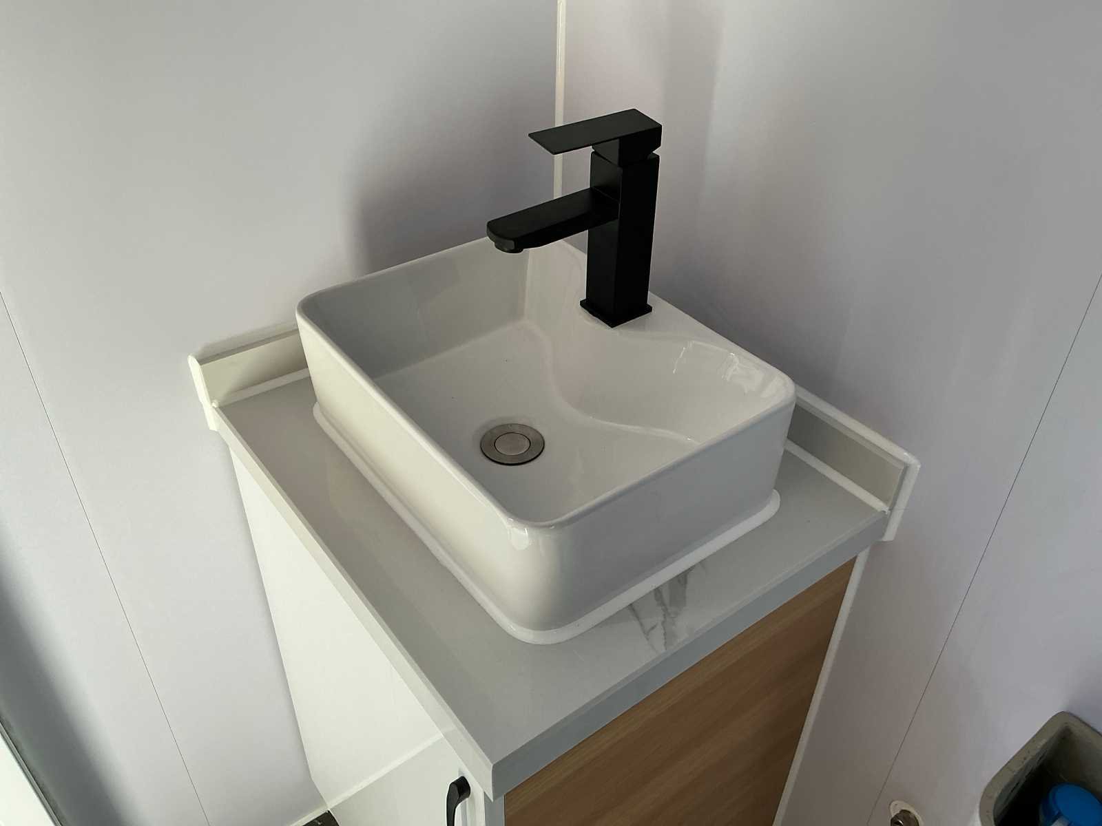 40ft HQ container met 2 woonruimtes. Iedere woonruimte is voorzien van een living met separate badkamer. Badkamer is voorzien van douchecabine, toilet, badkamermeubel (wastafel met opbergkast en spiegelkast), draai-/kiepraam met dubbele beglazing in aluminium kozijn, electronische ventilator, stopcontact 230 Volt en badkamergarnituur. Living bestaat uit keukenblok met opbergruimte, schuiframen + draai-/kiepramen met dubbele beglazing in aluminium kozijnen, stopcontacten 230 Volt met USB aansluitingen, plafonnières, vinyl vloer met kantplinten, lepelgaten, ongebruikt No Merk: Field Facilities Type: 12 meter 40ft HQ Luxury Bouwjaar: 2025 Eigen gewicht: 7000kg