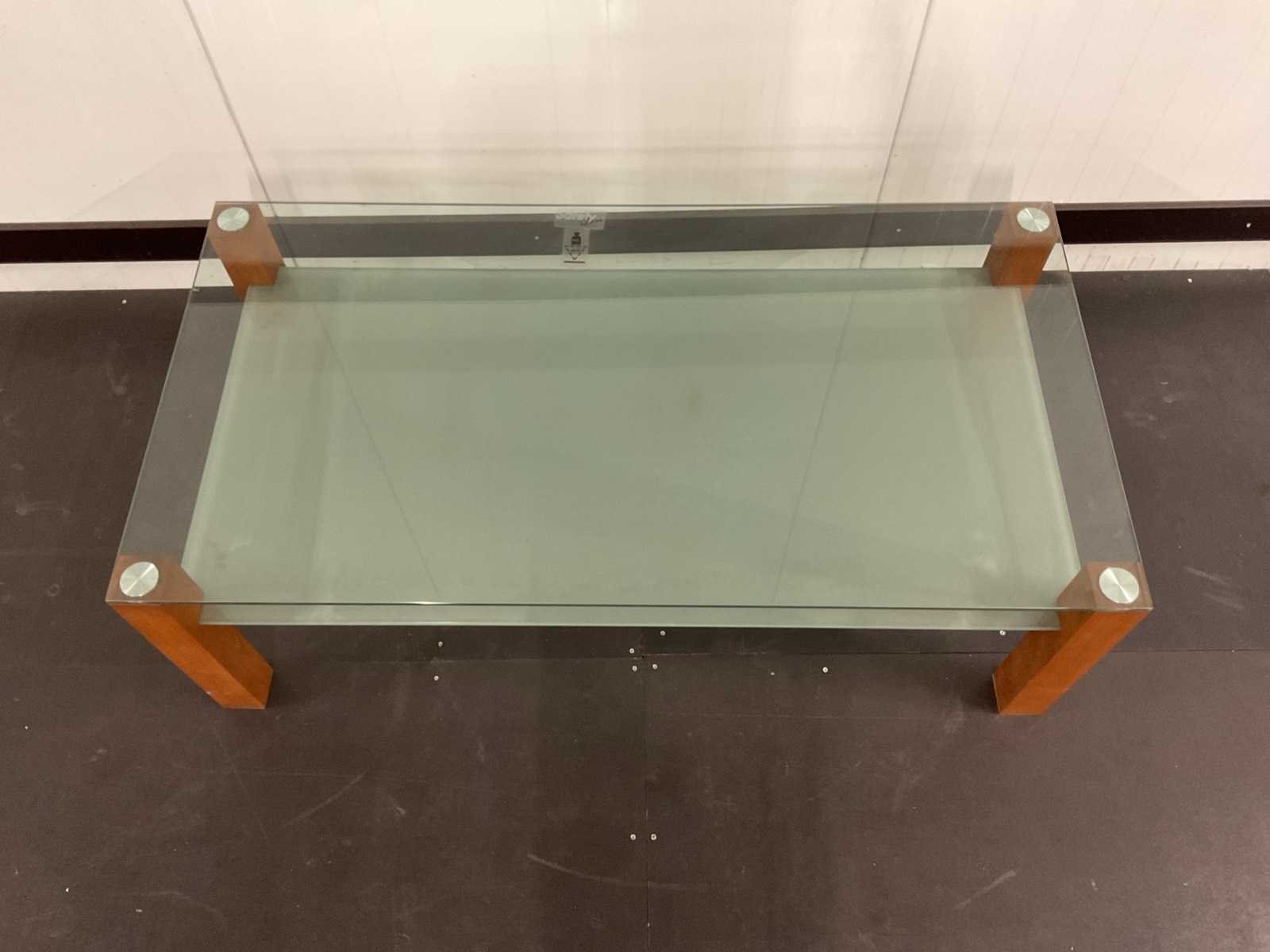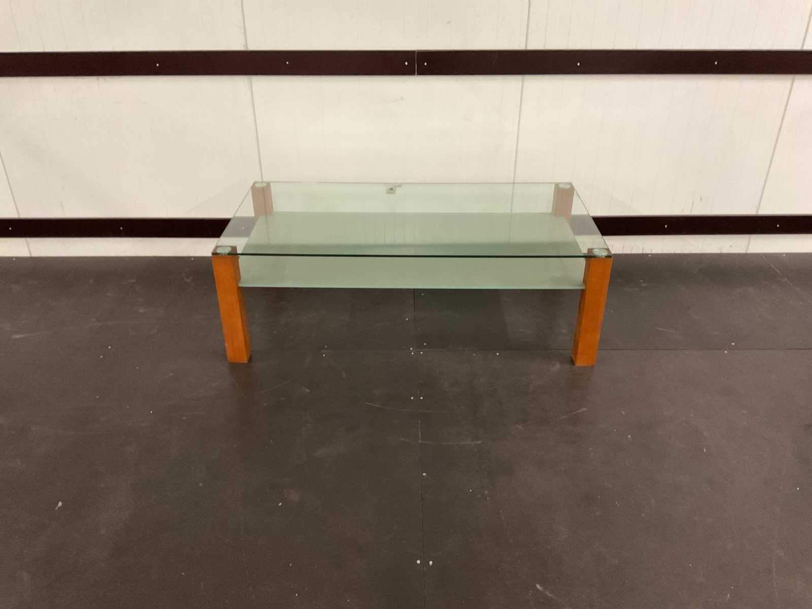 2x lagen met glas plaat; Nee Vorm: Rechthoek Lengte: 135cm Breedte: 70cm Hoogte: 46cm Materiaal: Glas, hout