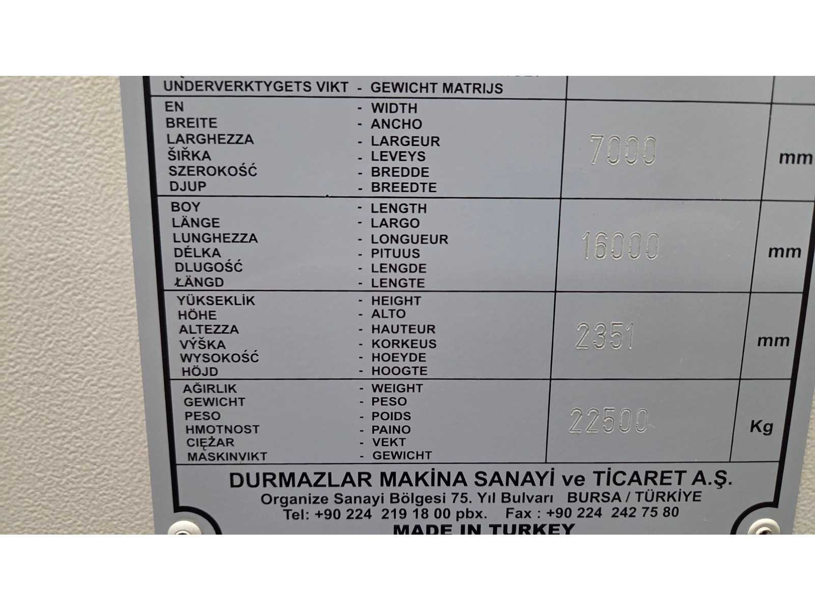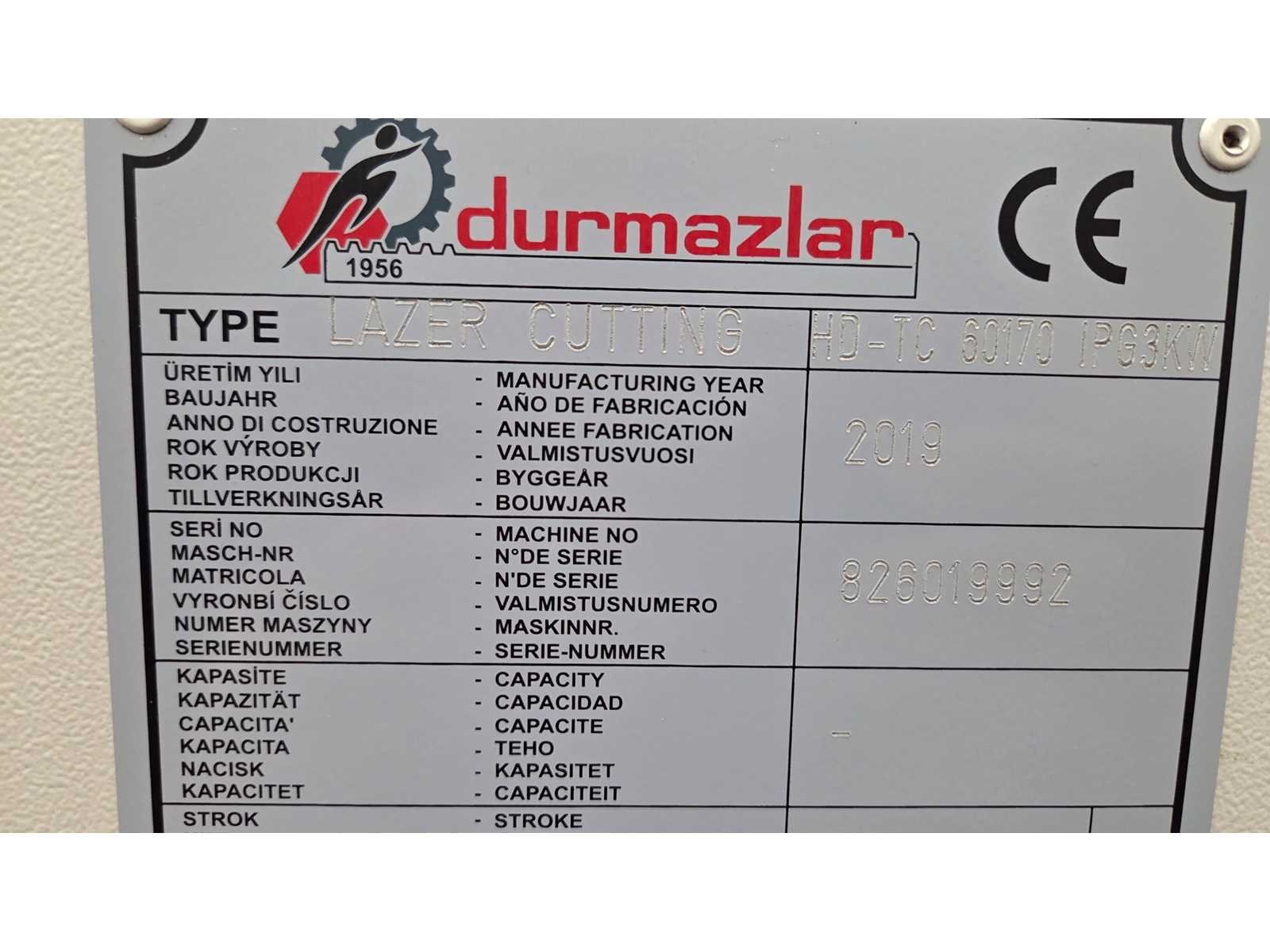 -Weinig snijuren +/- 1500 uur -Uren 24 volt aan +/- 4800 uur -3kw IPG Fiber laserbron -2.5d snijden -tot en met buis rond 170mm vierkante koker 120x120 en rechthoekige koker 150x100 -Minimale maat rond 20mm -Siemens besturing en precitec snijkop -Afzuiginstallatie met filters -Spater guard ( lepel welke 1 meter in buis kan om spatten op te vangen mocht het nodig zijn -Bundel lader aan achterzijde voor serie werk -Ketting lader aan voorzijde voor klein werk. -6.5 meter invoer. -Uitvoer 4.5 meter , verlengd naar 6 meter ( eventueel in te korten naar 4.5 meter) -Voorzien van complete transport hulpmiddelen. -Werkend te zien, machine word nog af en toe gebruikt hoofzakelijk rvs mee gesneden -Levering exclusief nesting software ( eventueel over te nemen via Lantek ) Bekijk een video van een gelijkwaardige machine op: https://youtu.be/_JsrDtC83B8?si=IckmSCr2o27ggc7B Nee Merk: Durma Type: HD-TC60170 Bouwjaar: 2019 Serienummer: 826019992 Laservermogen: 3kW Maximale invoerlengte: 6500mm Maximale uitvoerlengte: 6000mm Minimale doorsnede: 20mm Maximale doorsnede: 170mm Afgelezen urenstand: 1500 Machinegewicht: 22500kg Afmeting l: 16000mm Afmeting b: 7000mm Afmeting h: 2351mm