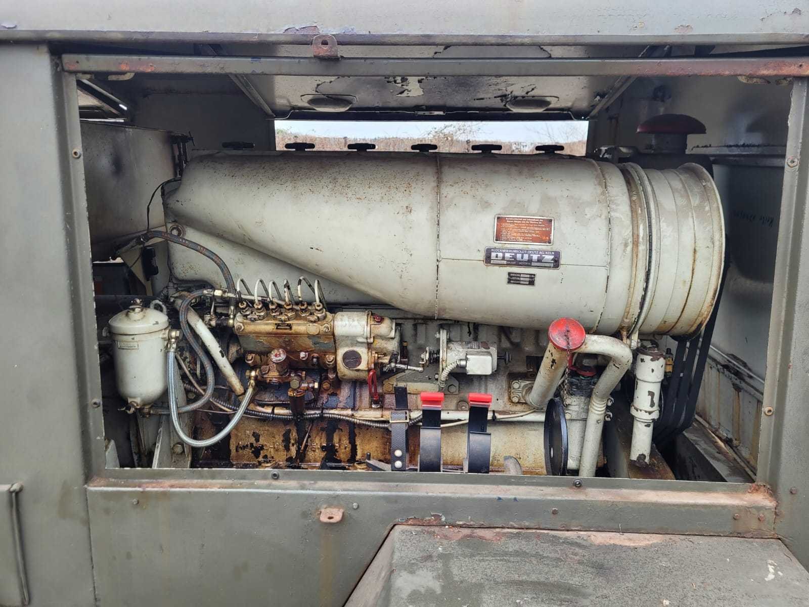 Voorzien van 6-Cil. “Deutz” dieselmotor; luchtgekoeld; 60kva; 1500rpm; “Bauscher” generator; 400V 230V 87Amp; totale lengte inclusief dissel: 5300mm; let op, exclusief losse accu’s uit video: Nee Merk: Bauscher Capaciteit.: 80kVA Type motor: Deutz Aantal cilinders: 6 Luchtgekoeld: true Mobiel: true Afgelezen urenstand: 417 Machinegewicht: 3000kg Totale afmeting L: 3500mm Totale afmeting Breedte: 2000mm Totale afmeting Hoogte: 1900mm