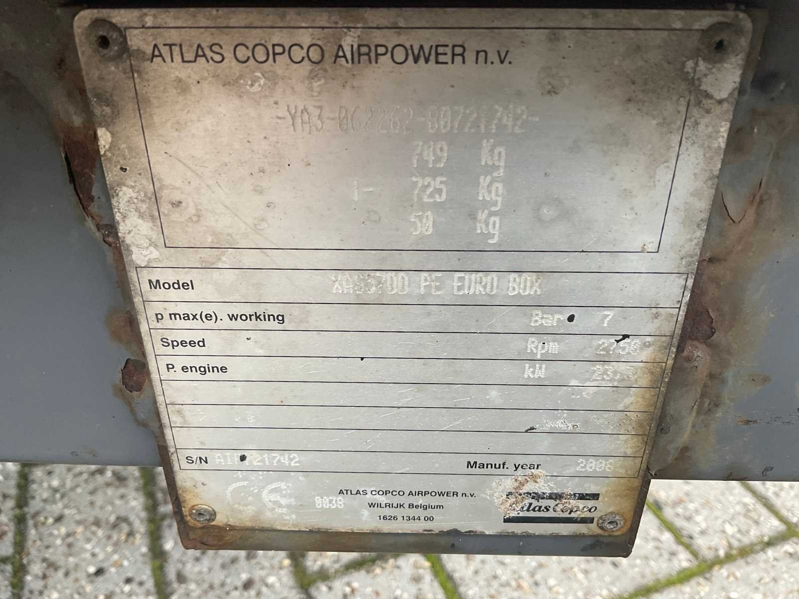 Nee Merk: Atlas copco Type: Xas 57 Bouwjaar: 2008 Mobiel: true Capaciteit.: 7bar Vermogen: 23.3kW Afgelezen urenstand: 2130hr Eigen gewicht: 750kg Totale afmeting L: 2500mm Totale afmeting Breedte: 1300mm Totale afmeting Hoogte: 1300mm