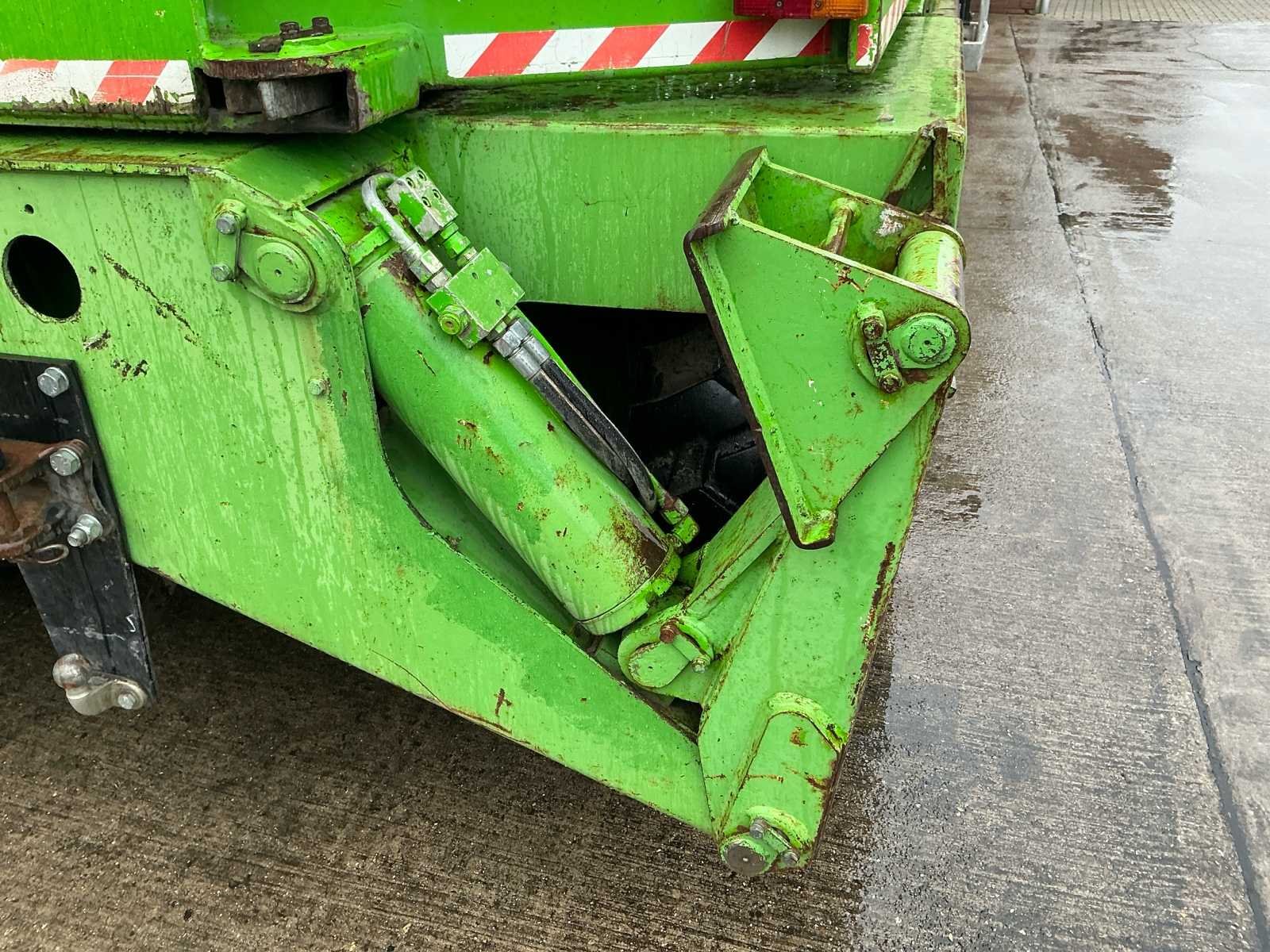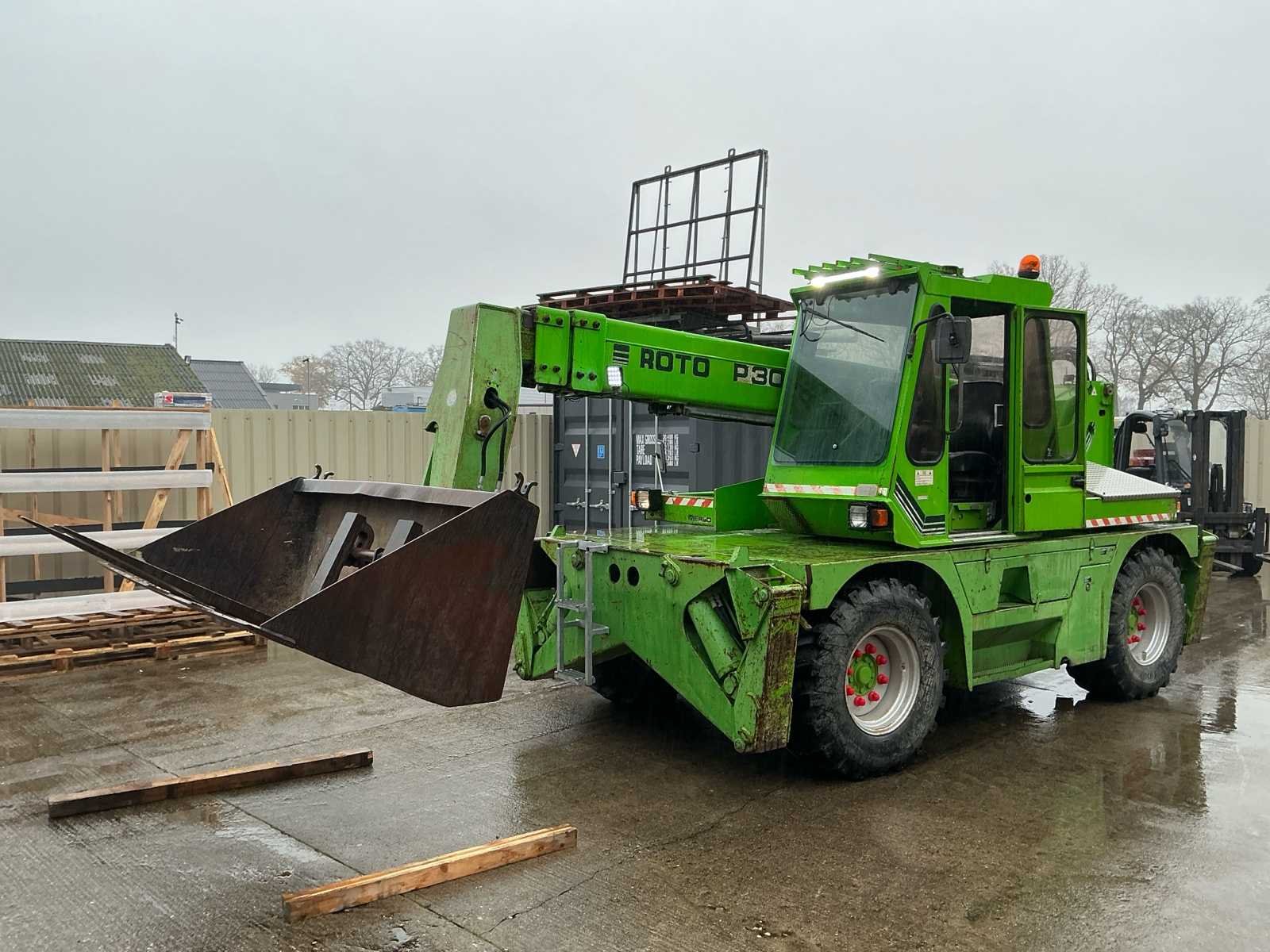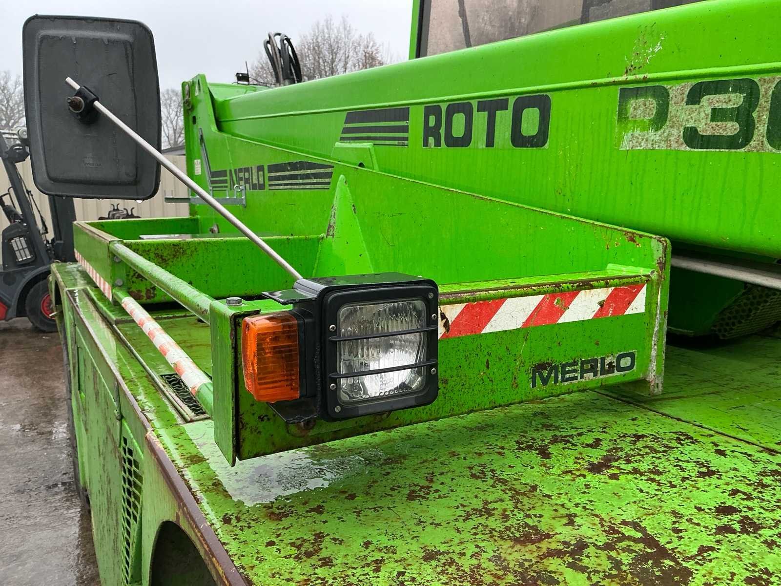 Voorzien van: hydrostaat aandrijving, 4ws, 4wd, 4 afstempelpoten, stabiliteits indicator, motor 4 cilinder Perkins 1004.4T, aanhangwagen koppeling K50, vangmuil, opbergkist met twee, tweespongen en veiligheidsharnas, led werkverlichting, achteruitrij camera, hefhoogte 13meter, hefvermogen 3 ton, inclusief evenaar 2300mm, uitschuifbaar tot 3300mm, jip uitschuifbaar tot max. 3300mm, inschoven 2200mm, pallethaak vorken 960mm, pallet vorken 1200mm, hydraulische snelwissel, manbak, Nederlands kenteken, 7 polige stekker, manbak 2200x1000, uitschuifbaar naar 4000, grondbak 2250mm. Nee Merk: Merlo Type: Roto 30-13 Bouwjaar: 1994 Serienummer: 4103437 Kenteken: TBR30V Motorvermogen (kW): 84kW Hefvermogen: 3000kg Hefhoogte: 13400mm Cabine: true Vierwielaandrijving 4x4: true Luchtbanden: true Afgelezen urenstand: 7162 Eigen gewicht: 10629kg Totale afmeting L: 5500mm Totale afmeting Breedte: 2240mm Totale afmeting Hoogte: 2770mm