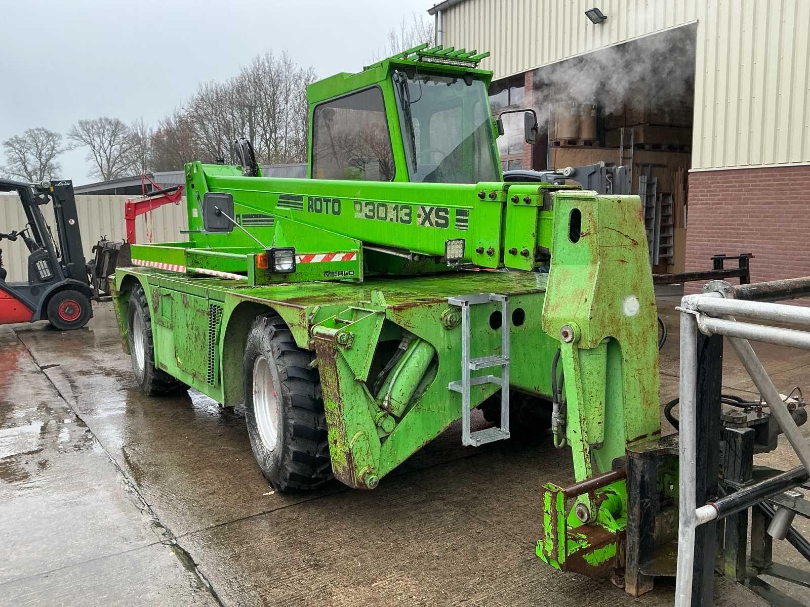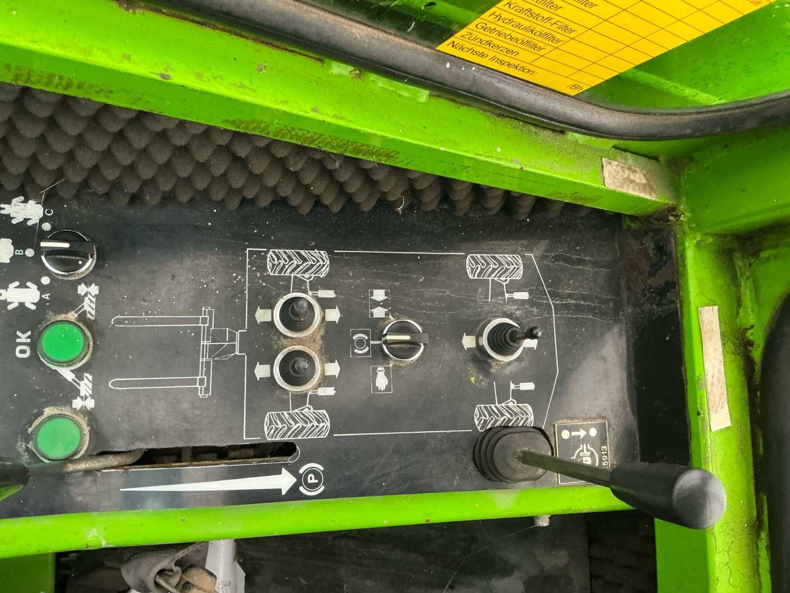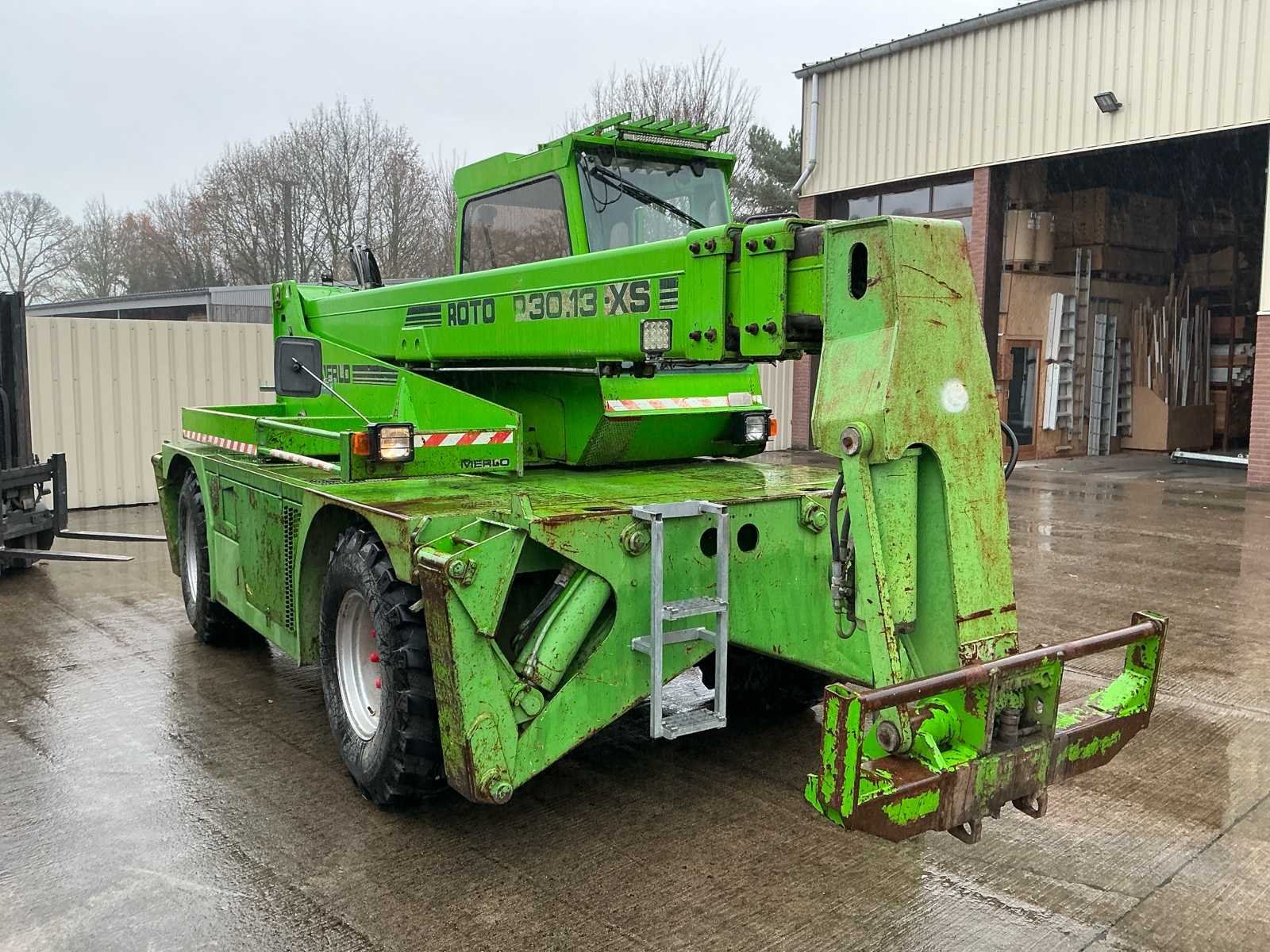 Voorzien van: hydrostaat aandrijving, 4ws, 4wd, 4 afstempelpoten, stabiliteits indicator, motor 4 cilinder Perkins 1004.4T, aanhangwagen koppeling K50, vangmuil, opbergkist met twee, tweespongen en veiligheidsharnas, led werkverlichting, achteruitrij camera, hefhoogte 13meter, hefvermogen 3 ton, inclusief evenaar 2300mm, uitschuifbaar tot 3300mm, jip uitschuifbaar tot max. 3300mm, inschoven 2200mm, pallethaak vorken 960mm, pallet vorken 1200mm, hydraulische snelwissel, manbak, Nederlands kenteken, 7 polige stekker, manbak 2200x1000, uitschuifbaar naar 4000, grondbak 2250mm. Nee Merk: Merlo Type: Roto 30-13 Bouwjaar: 1994 Serienummer: 4103437 Kenteken: TBR30V Motorvermogen (kW): 84kW Hefvermogen: 3000kg Hefhoogte: 13400mm Cabine: true Vierwielaandrijving 4x4: true Luchtbanden: true Afgelezen urenstand: 7162 Eigen gewicht: 10629kg Totale afmeting L: 5500mm Totale afmeting Breedte: 2240mm Totale afmeting Hoogte: 2770mm