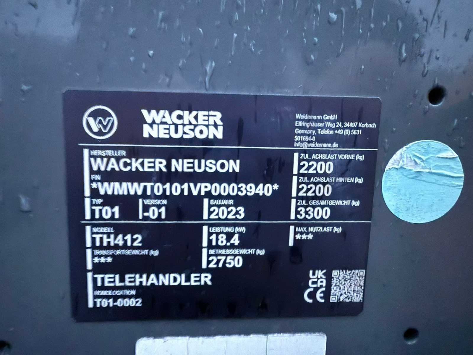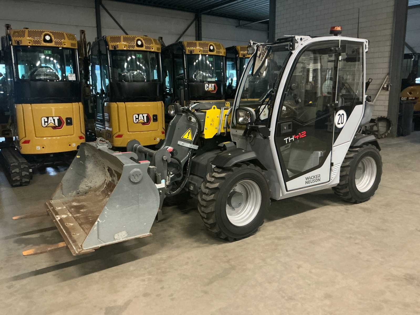 Laadvermogen 2200 kg. Voorzien van vorkenbord lepels 90cm en graafbak 130cm breed. No Merk: Wacker Neuson Type: TH412 Bouwjaar: 2023 Serienummer: WMWT0101VP0003940 Merk motor: Yanmar Motorvermogen (kW): 18.4kW Aantal cilinders: 3 Brandstof: Diesel Graafbak afm. b: 1300mm Bandenmaat: 10-16,5 (270/65-16,5) Cabine: true Afgelezen urenstand: 120 Eigen gewicht: 2750kg Totale afmeting L: 3300mm Totale afmeting Breedte: 1500mm Totale afmeting Hoogte: 1950mm