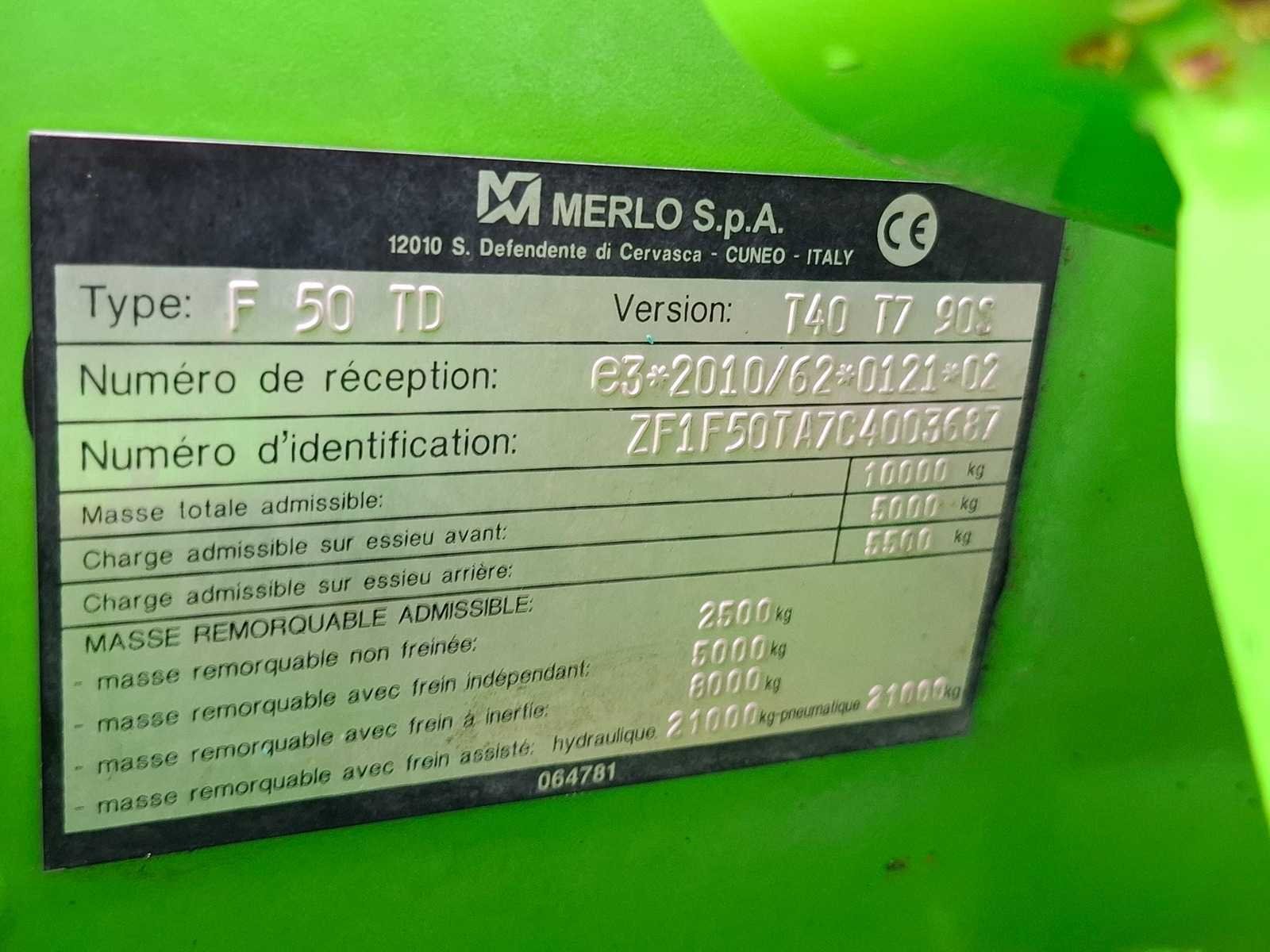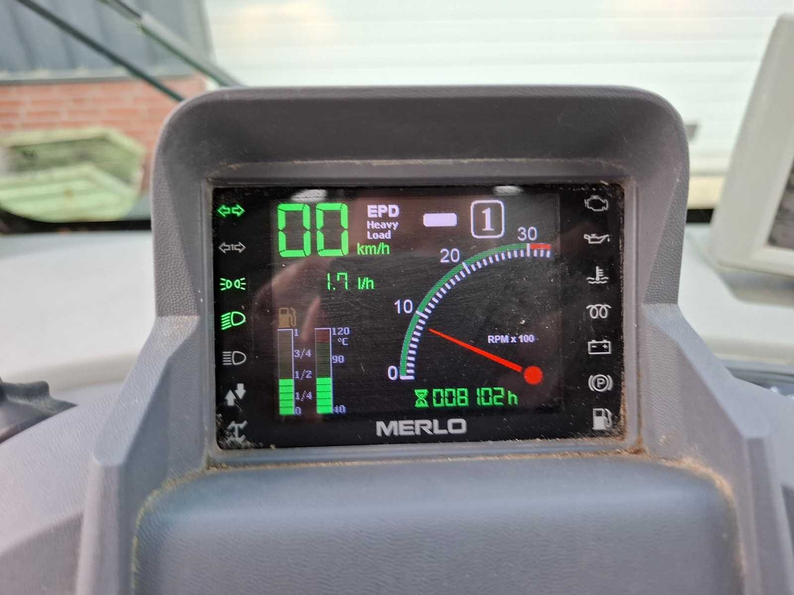Maximale mastlengte: 3,7m, 4 cilinders, Nee Merk: Merlot Type: TF38.7 Bouwjaar: 2015 Serienummer: ZF1F50TA7C4003687 Motorvermogen (kW): 90kW Hefvermogen: 3800kg Hefhoogte: 71000mm Cabine: true Vierwielaandrijving 4x4: true Luchtbanden: true Afgelezen urenstand: 8102 Eigen gewicht: 7450kg Totale afmeting L: 4490mm Totale afmeting Breedte: 2550mm Totale afmeting Hoogte: 2470mm