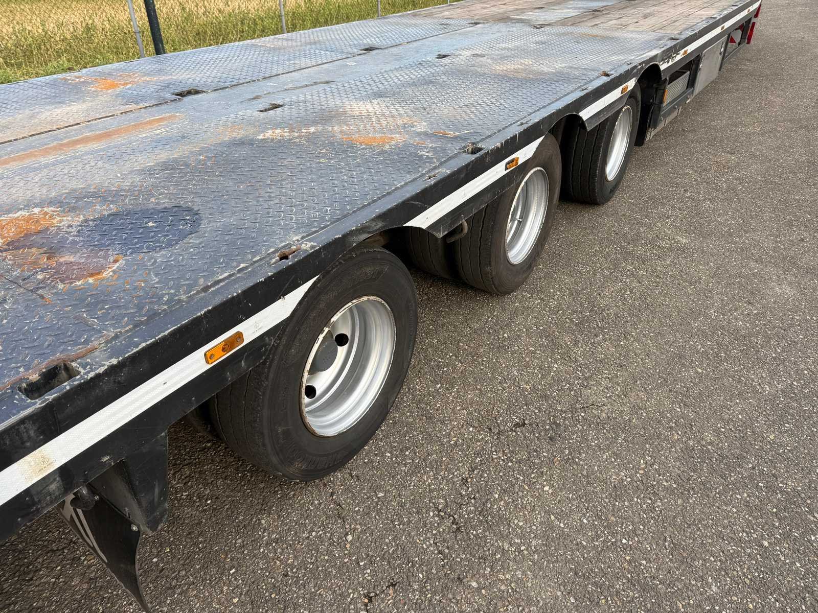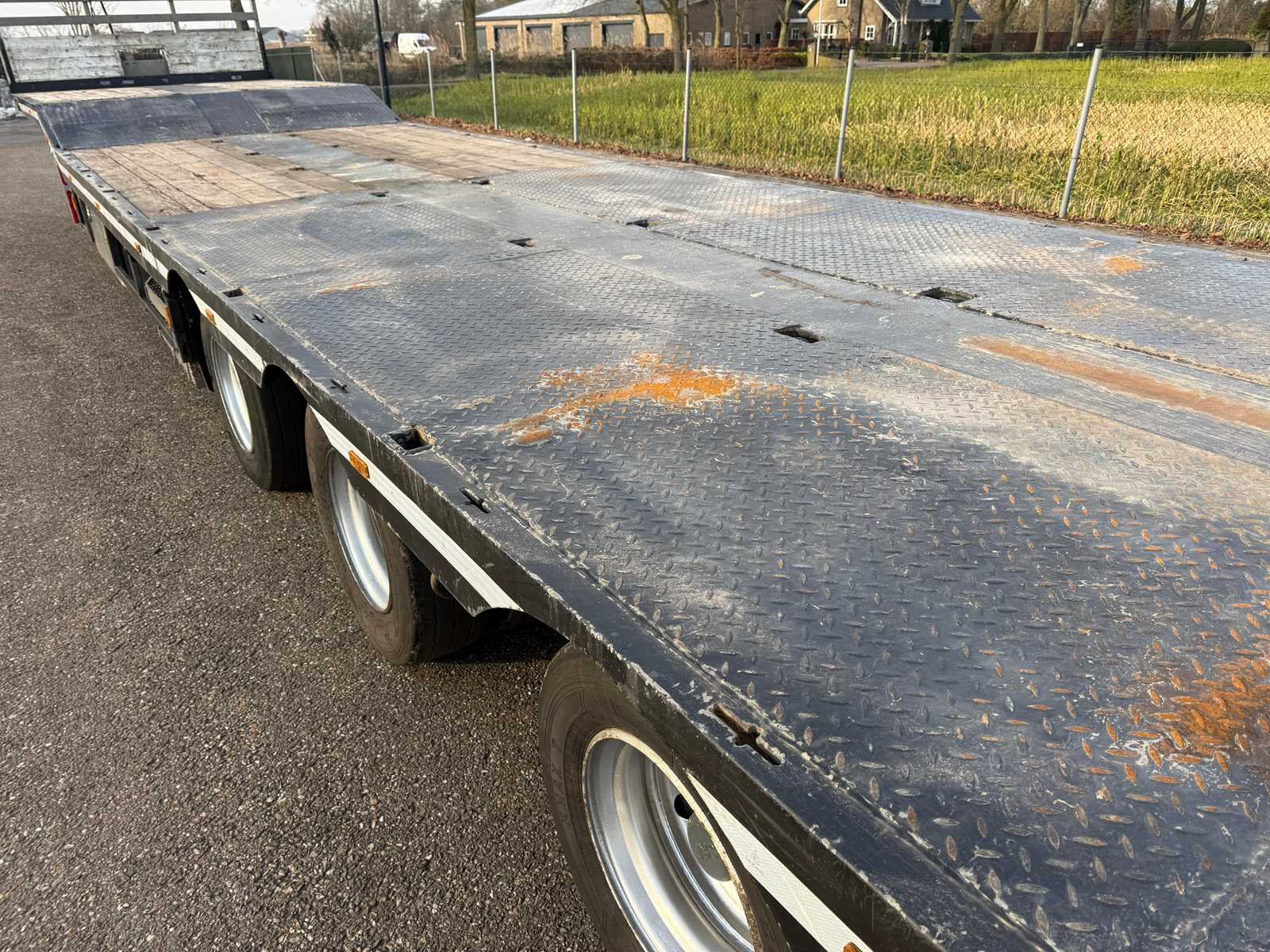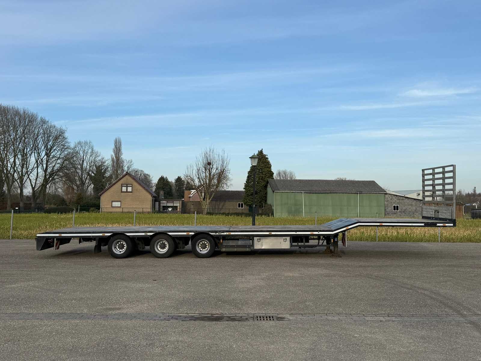 Voorzien van: 3-assen, Lier op voorzijde, 2x RVS opbergkist zijkant, luchtvering, sjorpunten op laadplatform, werkverlichting, hoog kopbord (185cm), opbergruimte voor reservewiel Laadnek: 2200mm (800mm schuinverschil) Laaddek: 10600mm Nee Merk: nooteboom Kenteken: OD-51-DV Bouwjaar: 1993 Chassisnummer: P020069 Laadvermogen: 31900kg Aantal assen: 3 Kleur: Grijs Datum eerste toelating: 1993-07-01 Datum eerste toelating (NL): 1993-07-01 APK vervaldatum: 2027-01-20 Lengte: 13900 Breedte: 2550 Hoogte: 3050