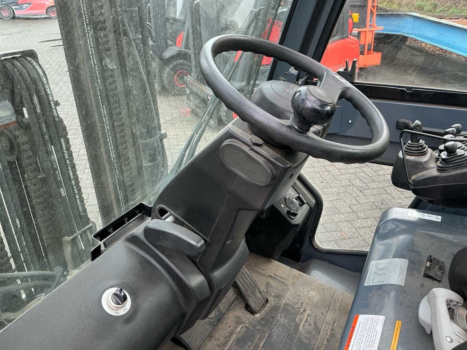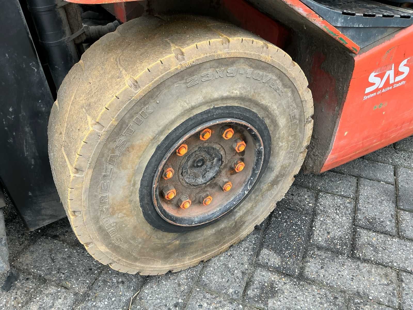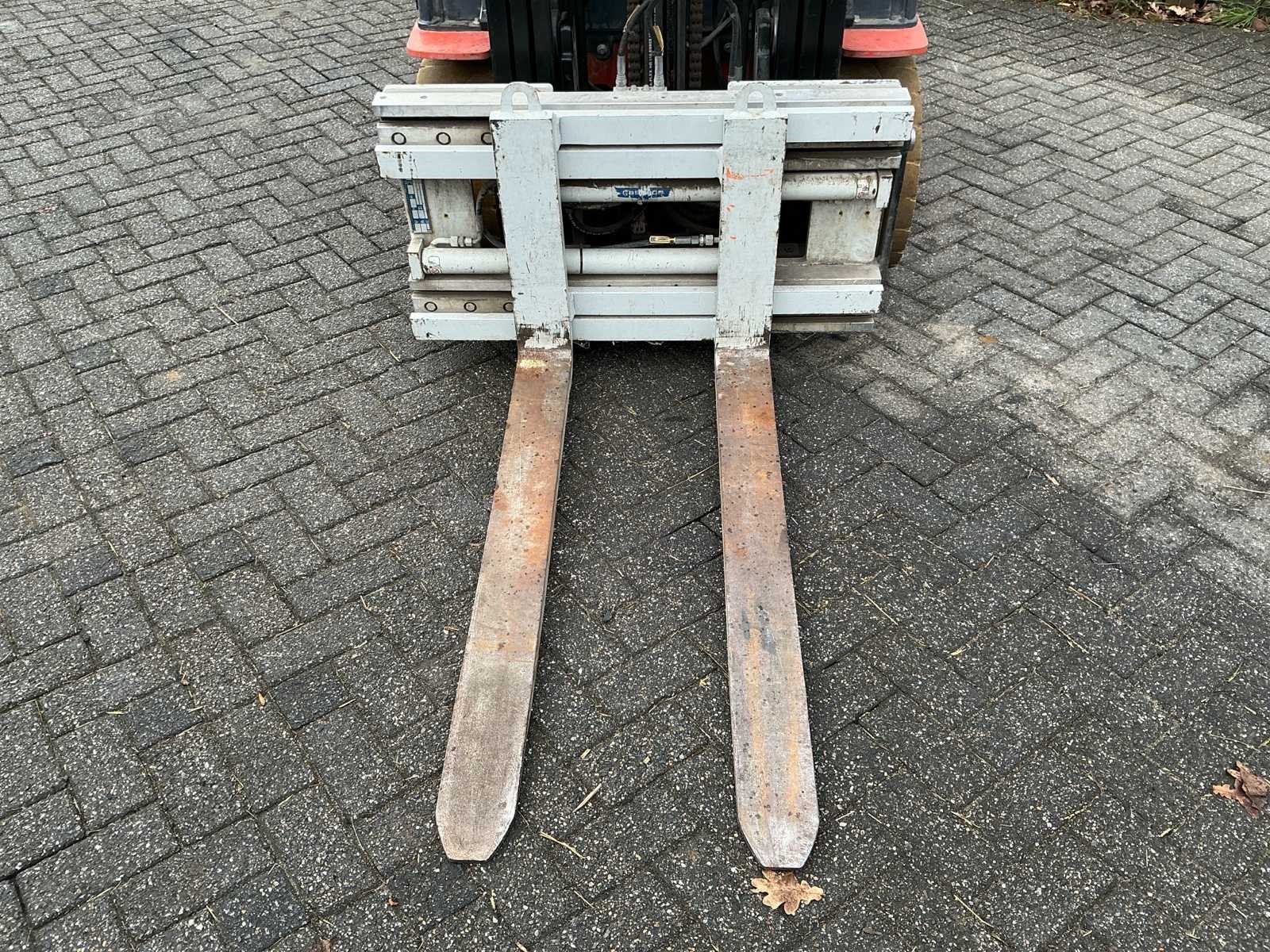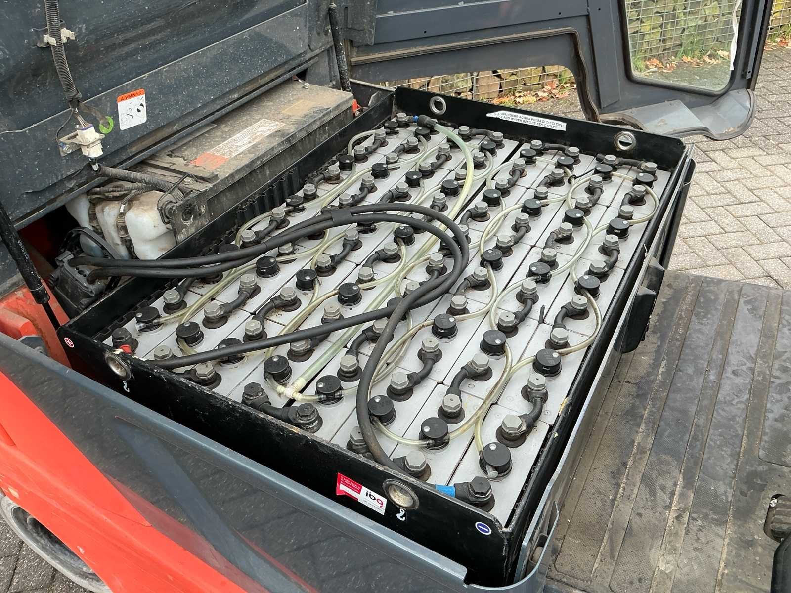Voorzien van: Grammer mechanisch geveerde stoel, mini-lever bediening op armleuning, verwarmde achterruit, verwarming, schuiframen, opklapbare achterruit, vol rubber non-marking banden, Cascade vorkenbord, hydraulisch verstelbare lepels, Max. 1700mm h.o.h. Lepels, side-shift,trekhaak, verlichting, voltage 80V, tractiemotor 20kW, hijsmotor 25.5kW, No Merk: Toyota Type: 8FBMKT25 Bouwjaar: 2017 Serienummer: 8FBMKT25-12836 Brandstof: Elektrisch Mast: Triplex Soort band: Volrubber Aantal wielen: 4 Afgelezen urenstand: 9478 Side-shift: true Hydraulisch verstelbare lepels: true Triple mast: true Eigen gewicht: 5500kg Hefvermogen: 2500kg Lepellengte: 1200mm Vol rubber banden: true Minimale doorrijhoogte: 1450mm Totale afmeting L: 3700mm Totale afmeting Breedte: 1200mm Totale afmeting Hoogte: 2450mm