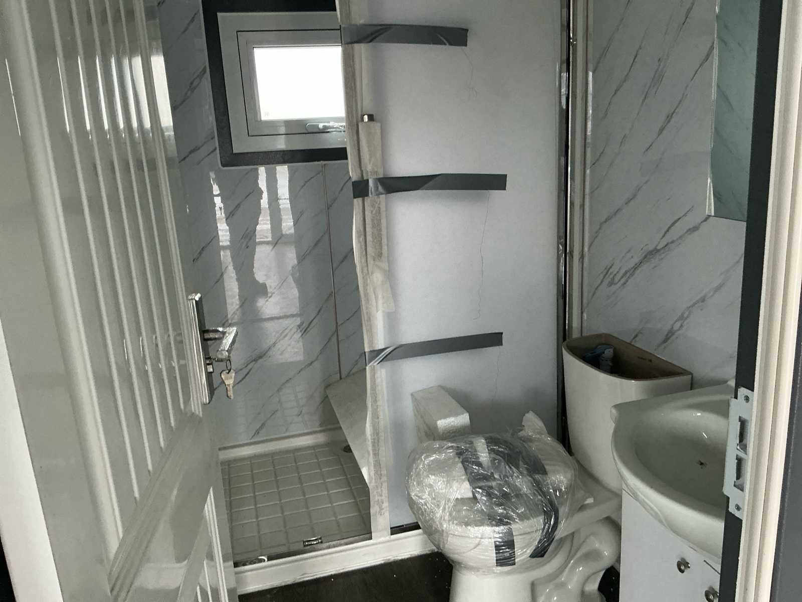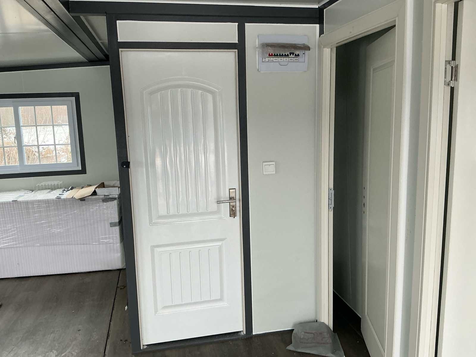 Voorzien van; Deuren met sloten; Binnen muur; Badkamer: Uitklapbaar. Let op: Aan 1 binnenmuur zit schade Zie foto's Nee Merk: Woon unit / Tiny house Kleur: Hout