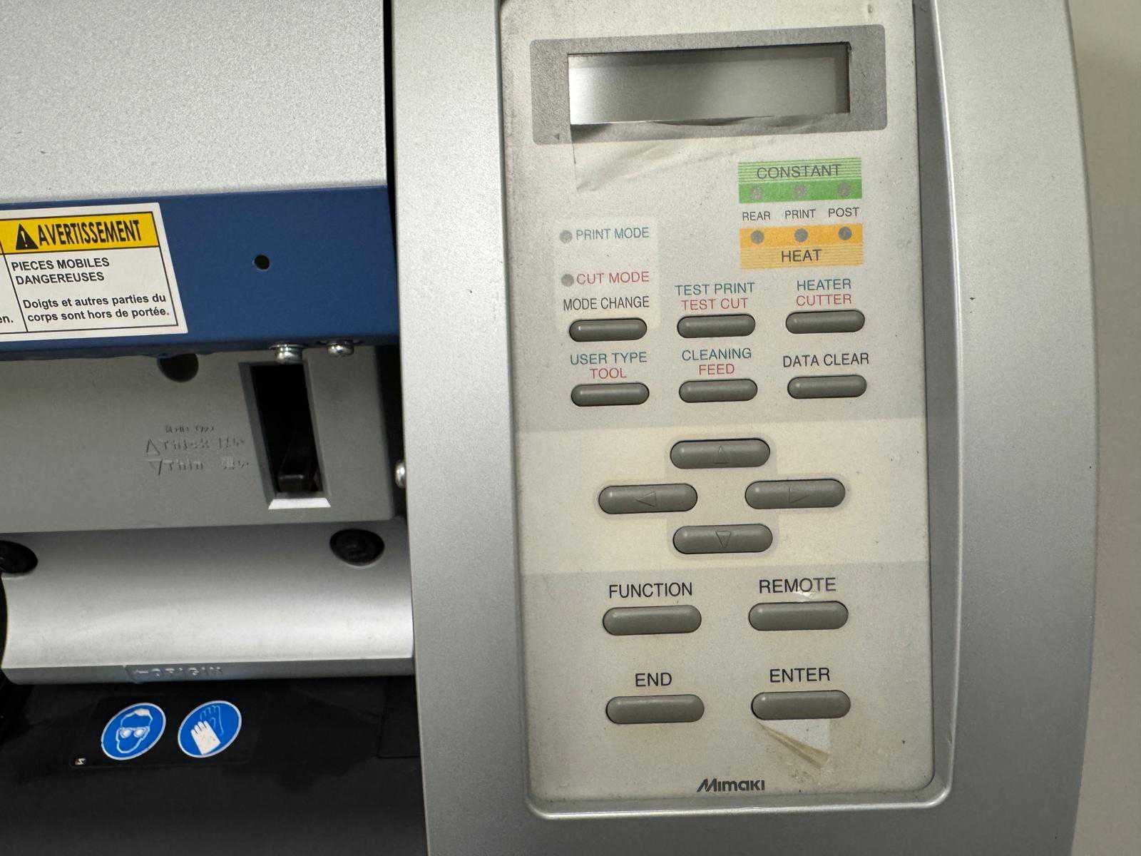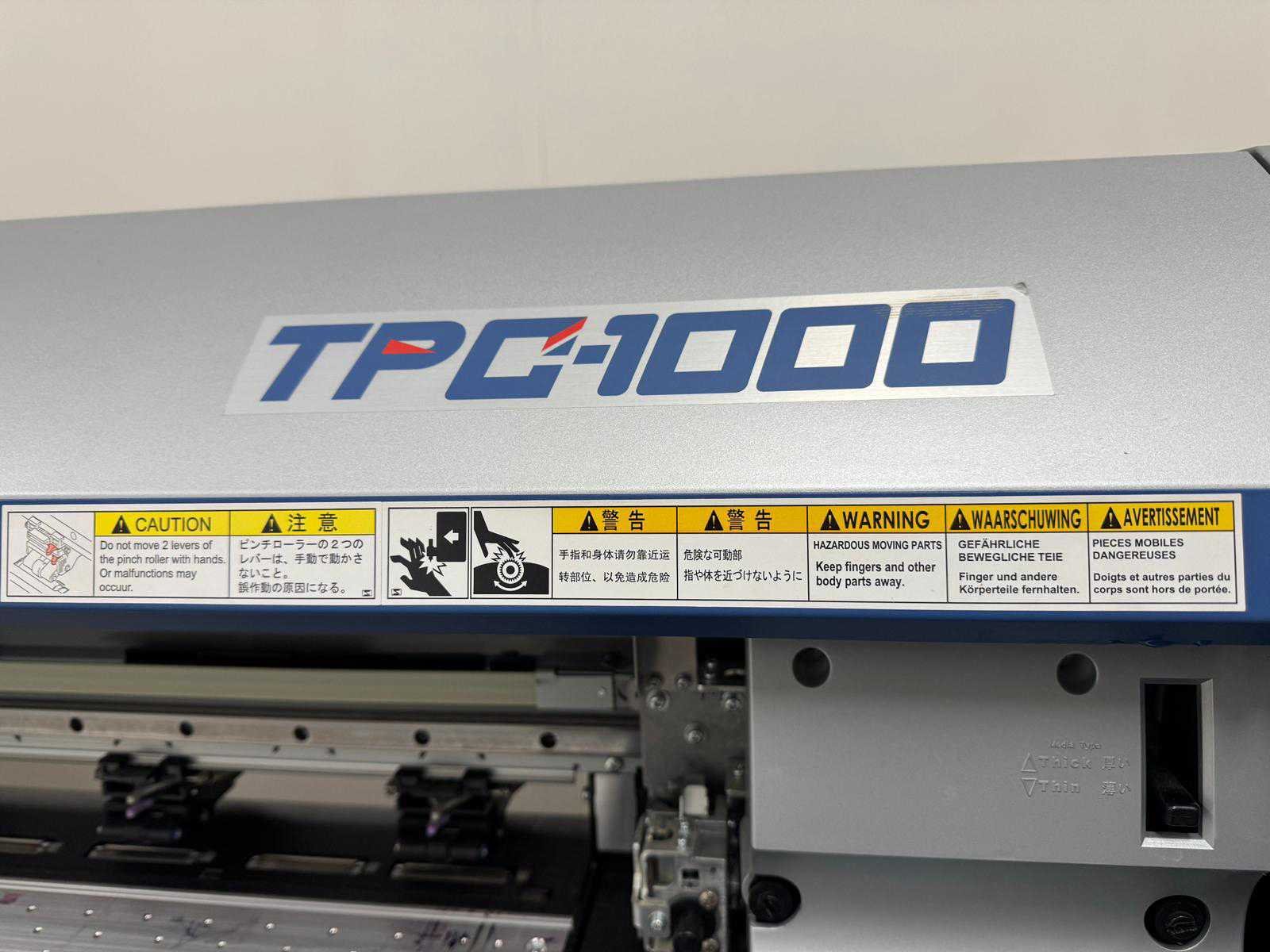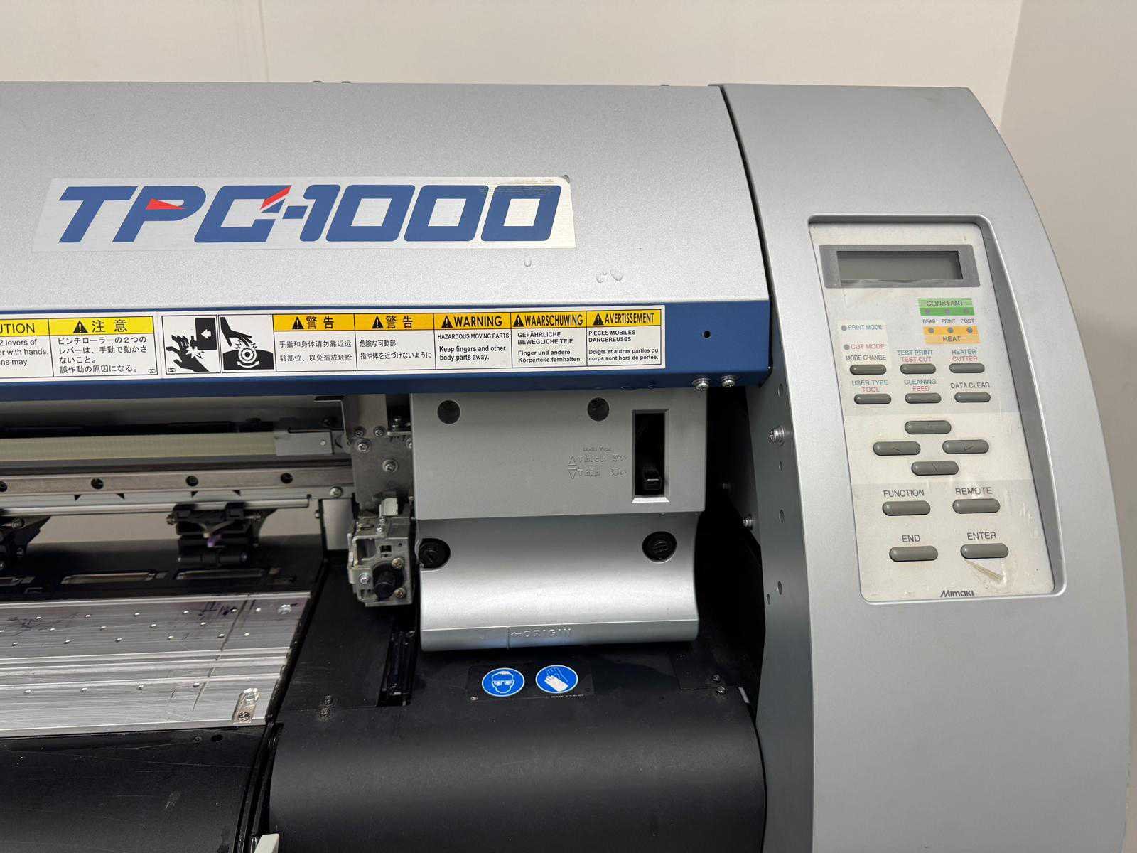 Professionele grootformaat printer en snijplotter, geschikt voor signmaking en grafische toepassingen. Robuuste industriële constructie met nauwkeurig transportsysteem en geïntegreerd bedieningspaneel. Geleverd inclusief metalen onderstel met wielen. Nee Merk: Mimaki Type: TPC-1000 Resolutie (nr): 1.000dpi Max. papier afm. b: 1.000mm Digitale besturing: true Aansluiting: 230V Machinegewicht: 90kg Totale afmeting L: 1.600mm Totale afmeting Breedte: 700mm Totale afmeting Hoogte: 1.050mm