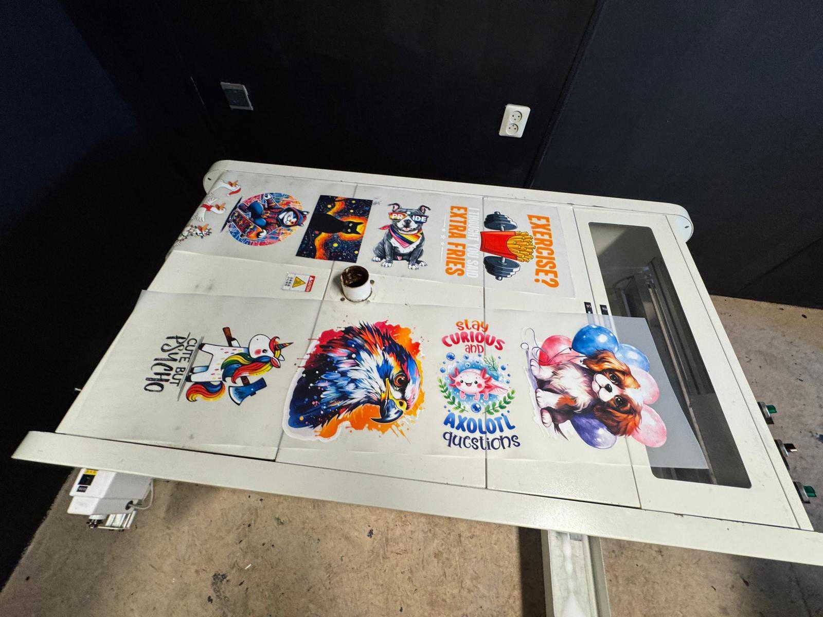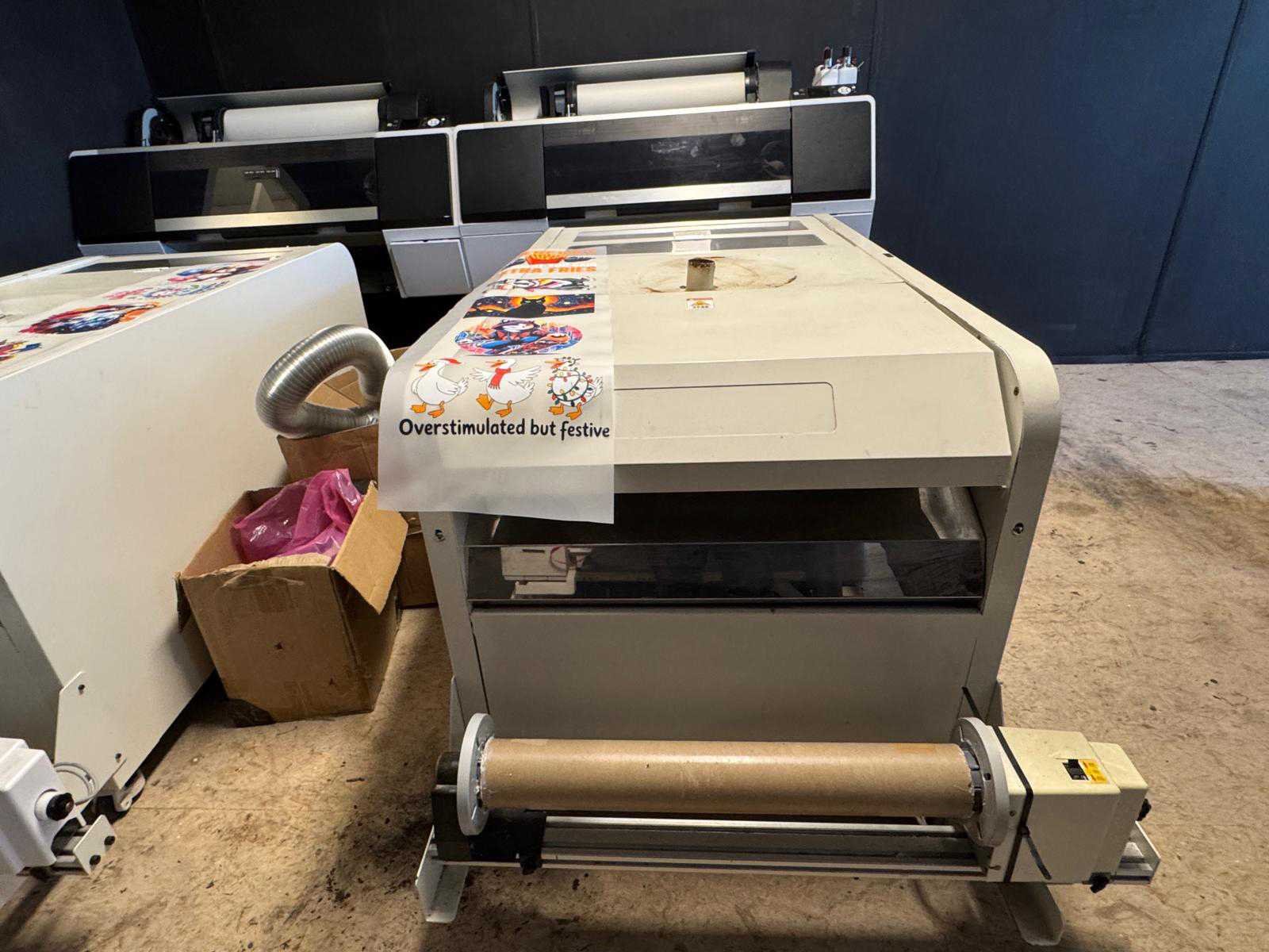 Set van twee professionele DTF-printers, gebaseerd op de Epson SureColor P6000, inclusief twee DTF poeder shakers/drogers. Geschikt voor Direct-to-Film textielbedrukking in een productieomgeving. Inhoud van de set • DTF-printer HUAFEI HFTX-H6000C – printbreedte ca. 60 cm • DTF-printer HUAFEI HFTX-H2 – printbreedte ca. 60 cm • 2× DTF poeder shaker / droger – werkbreedte ca. 60 cm • Accessoires, software en een grote hoeveelheid inkt • Toebehoren zoals zichtbaar op de foto’s Beide printers printen tot ca. 60 cm breedte. De twee shakers zijn geschikt voor een werkbreedte tot ca. 60 cm, passend bij de printers. Nee Merk: HUAFEI Type: Proffesionele DTF-printers+2 poedershakers en drogers Digitale besturing: true Aansluiting: 230V Totale afmeting L: 1100mm Totale afmeting Breedte: 670mm Totale afmeting Hoogte: 1200mm