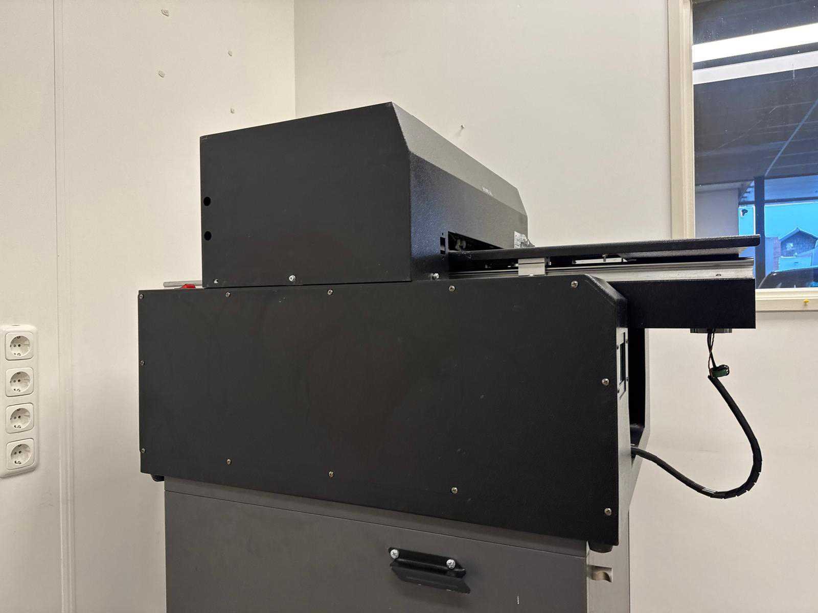 Professionele A3 UV flatbed printer, geschikt voor UV DTF-toepassingen en voor direct printen op vlakke en harde materialen zoals kunststof, hout, metaal, glas en vergelijkbare ondergronden. De printer kan tevens worden ingezet voor cilindrische objecten zoals flessen, in combinatie met het meegeleverde rolsysteem. De machine heeft in het verleden gefunctioneerd, maar door stilstand na sluiting van het bedrijf is de printer niet recent getest. De huidige werking is onbekend; afhankelijk van gebruik, stilstand en toepassing kan onderhoud, afstelling of technische controle aangewezen zijn. Meegeleverd • UV printer DOM SE DS-A3UV-05 • Ingebouwde printtafel (A3 formaat) • Accessoires en onderdelen zoals zichtbaar op de foto’s • UV-inkten en verbruiksartikelen • Rol- en aandrijfsysteem voor het bedrukken van flessen en cilindrische objecten • Diverse onderdelen en accessoires voor UV DTF-toepassingen Nee Merk: DOM SE A3 Type: DS-A3UV-05 Aansluiting: 230V Machinegewicht: 100kg Totale afmeting L: 900mm Totale afmeting Breedte: 500mm Totale afmeting Hoogte: 550mm