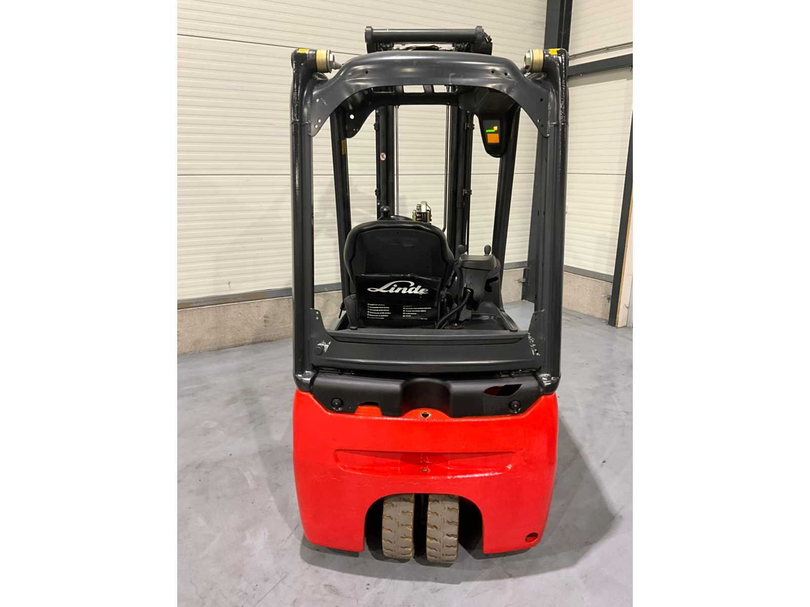 Extra opties : Non-marking banden , joy stick , elektrische handrem , accu uit 2019 Nee Merk: Linde Type: E16-02 Serienummer: H2X386F06667 Mast: Triple Soort band: Volrubber banden Aantal wielen: 3 Afgelezen urenstand: 3915 Free-lift: true Side-shift: true Triple mast: true Eigen gewicht: 3369kg Hefvermogen: 1600kg Hefhoogte: 5220mm Vol rubber banden: true Totale afmeting L: 3160mm Totale afmeting Breedte: 1040mm Totale afmeting Hoogte: 2320mm