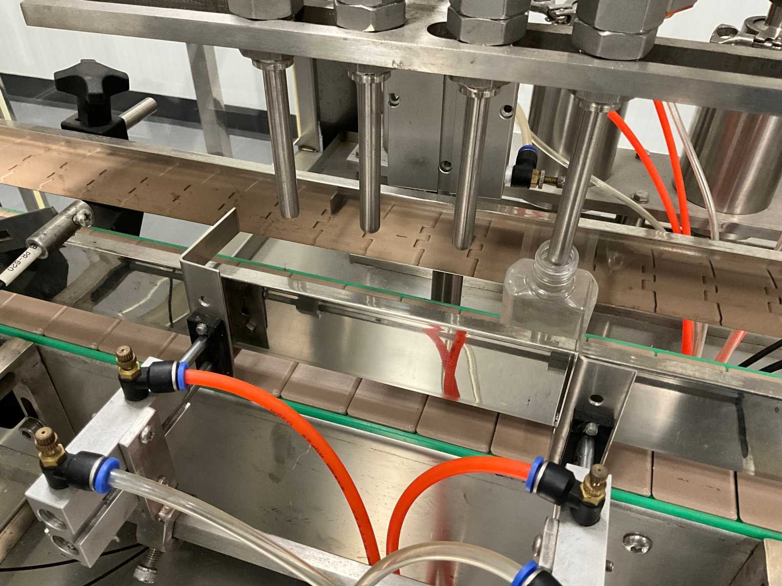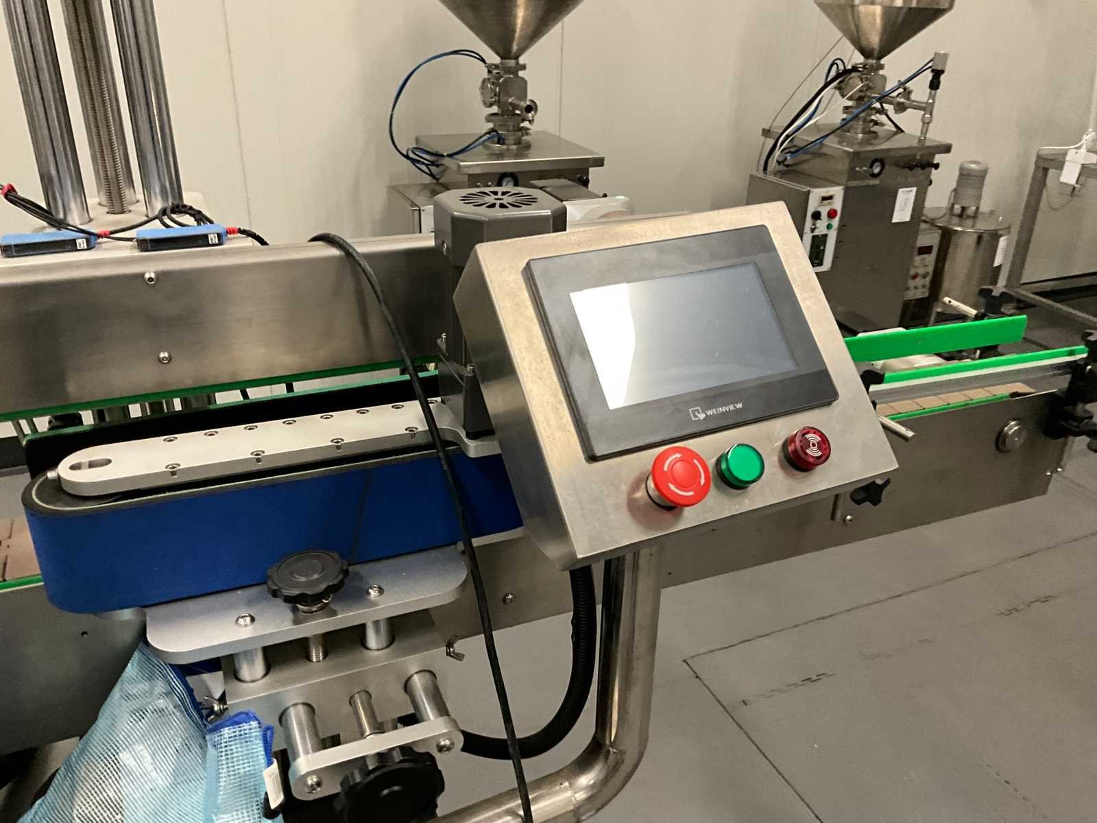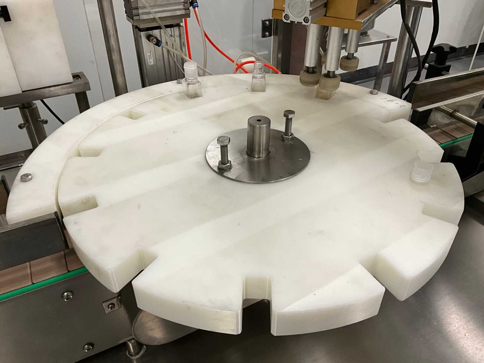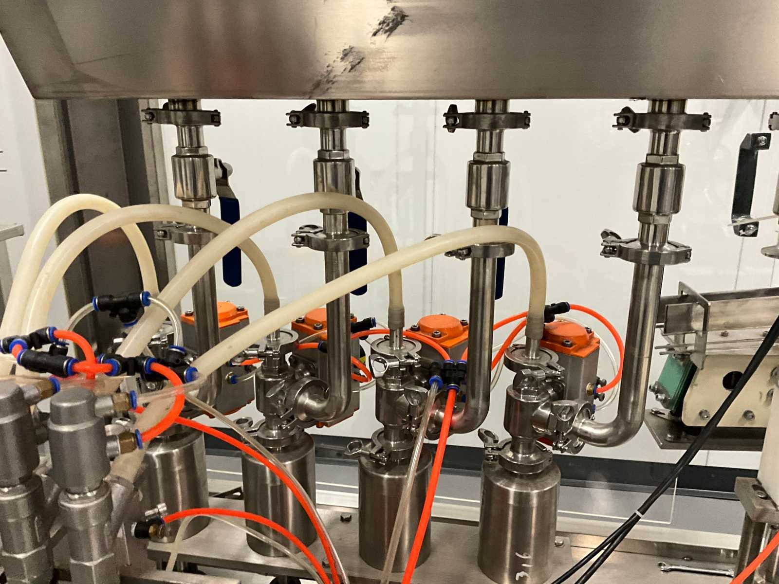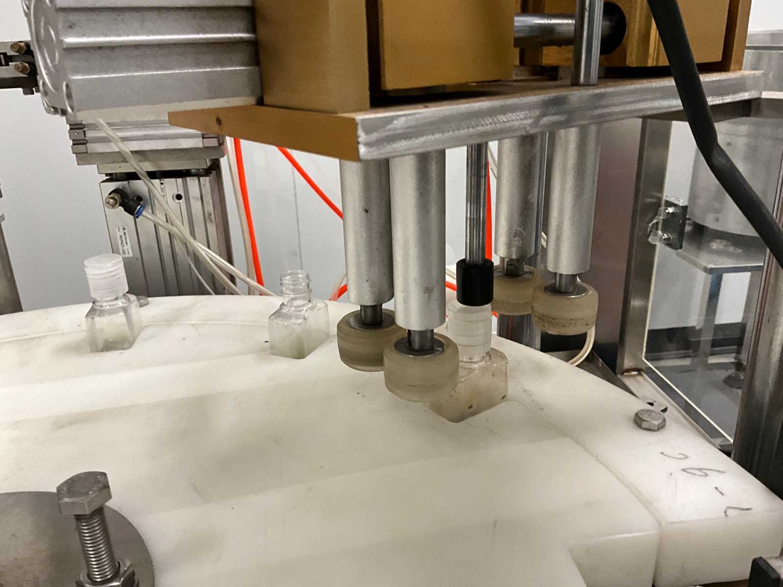 Voorzien van doppen invoer (infeed), Automatische 4-kops piston afvulmachine, Doorlopende schakel transportband, carrousel Sluit-/positioneerstation, Uitvoertransportband, Volledige veiligheidsomkasting (plexiglas), PLC-besturing + HMI (Siemens / Weintek), RVS behuizing, Automatische etiketteermachine, rolbreedte verstelling, inclusief diverse spare parts, carrousel delen etc Nee