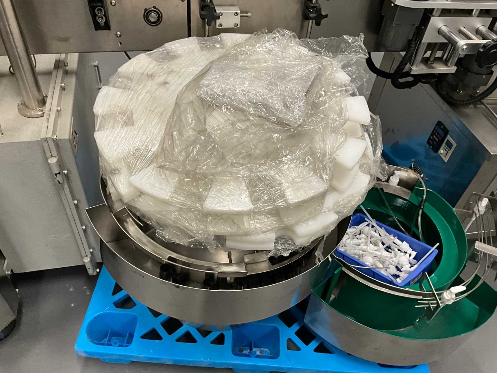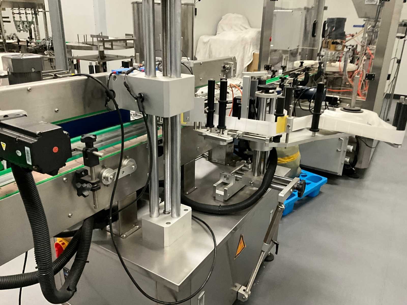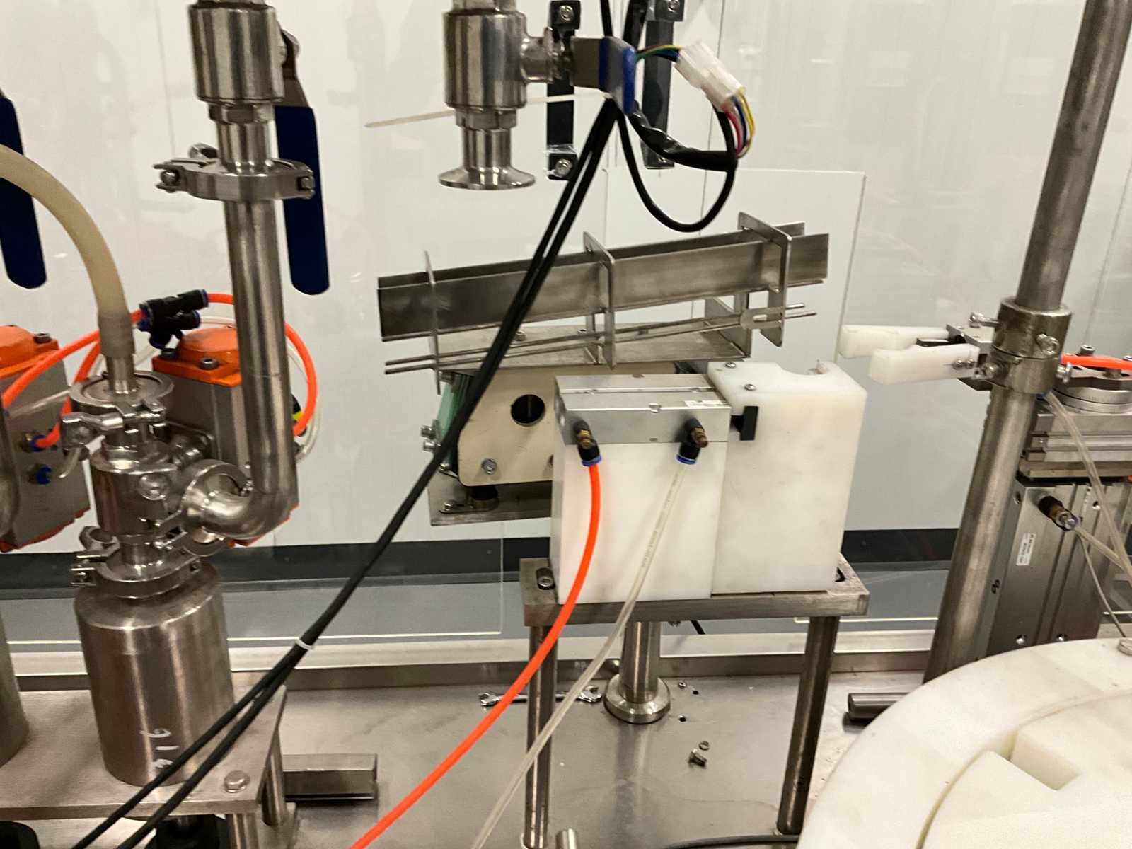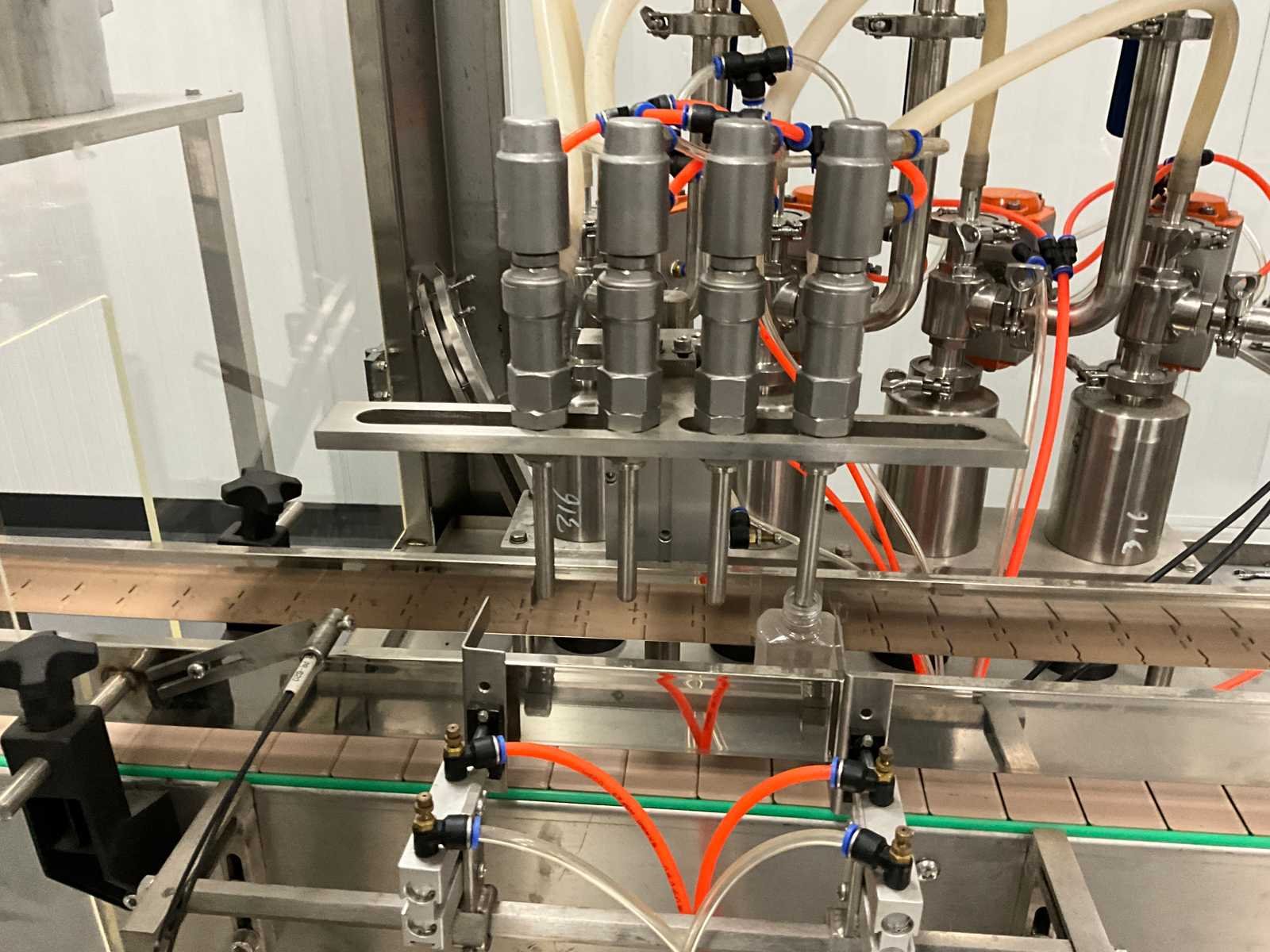 Voorzien van doppen invoer (infeed), Automatische 4-kops piston afvulmachine, Doorlopende schakel transportband, carrousel Sluit-/positioneerstation, Uitvoertransportband, Volledige veiligheidsomkasting (plexiglas), PLC-besturing + HMI (Siemens / Weintek), RVS behuizing, Automatische etiketteermachine, rolbreedte verstelling, inclusief diverse spare parts, carrousel delen etc Nee