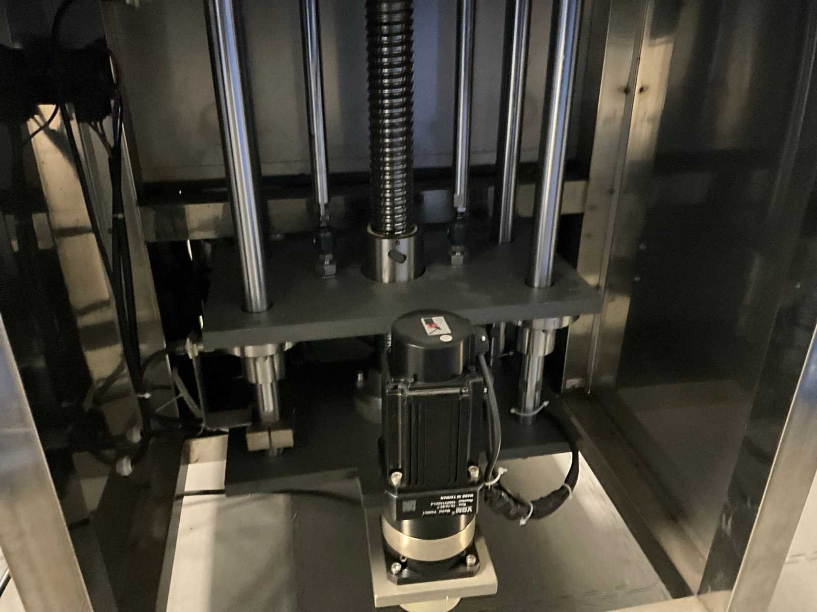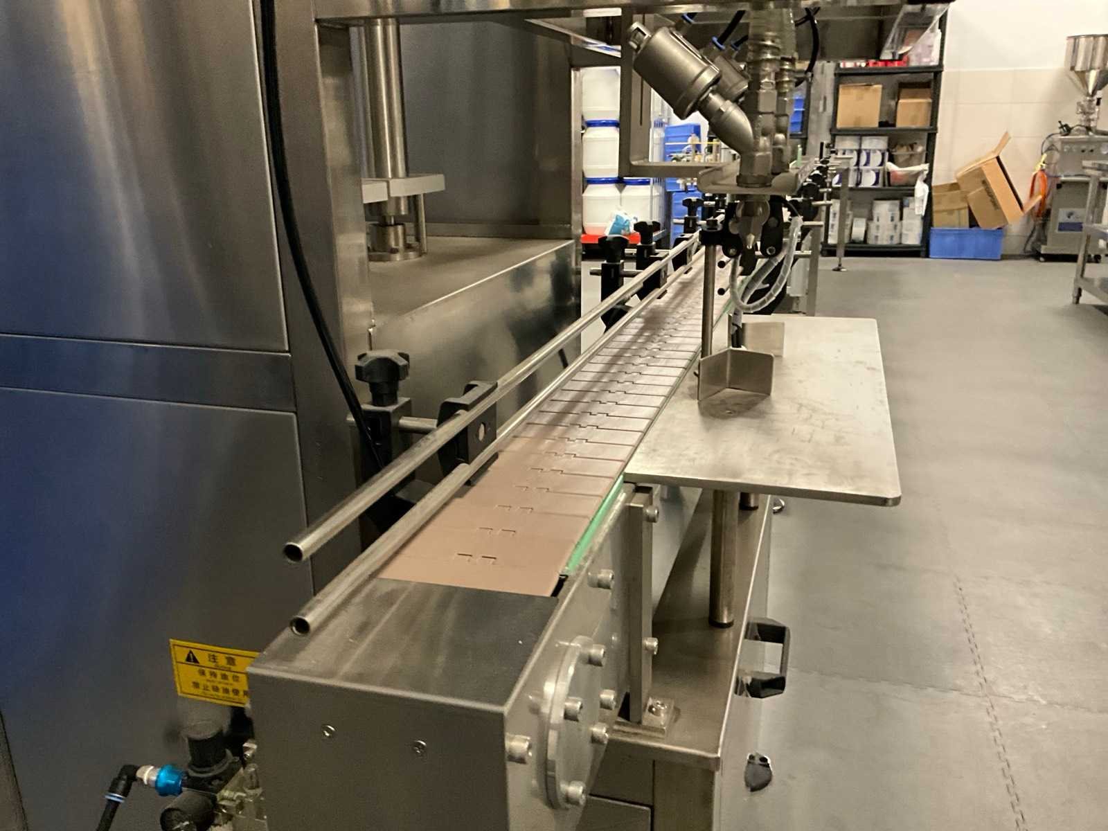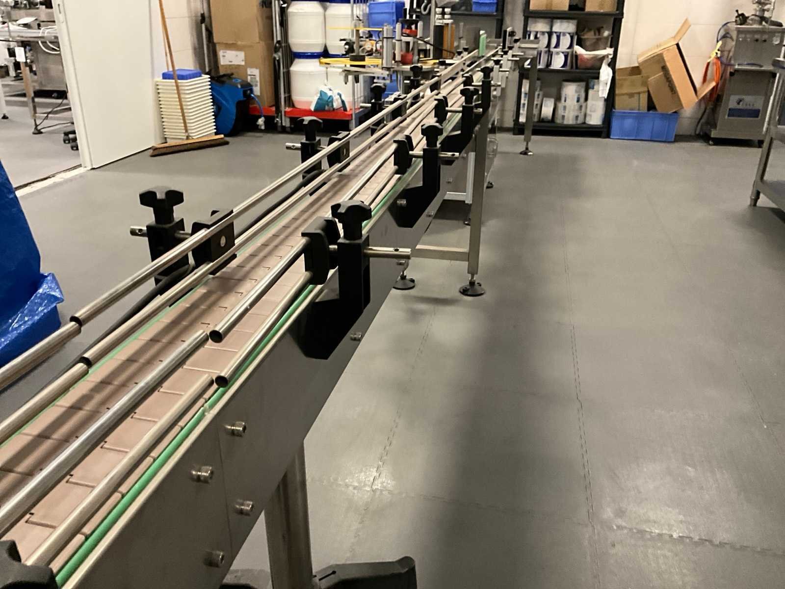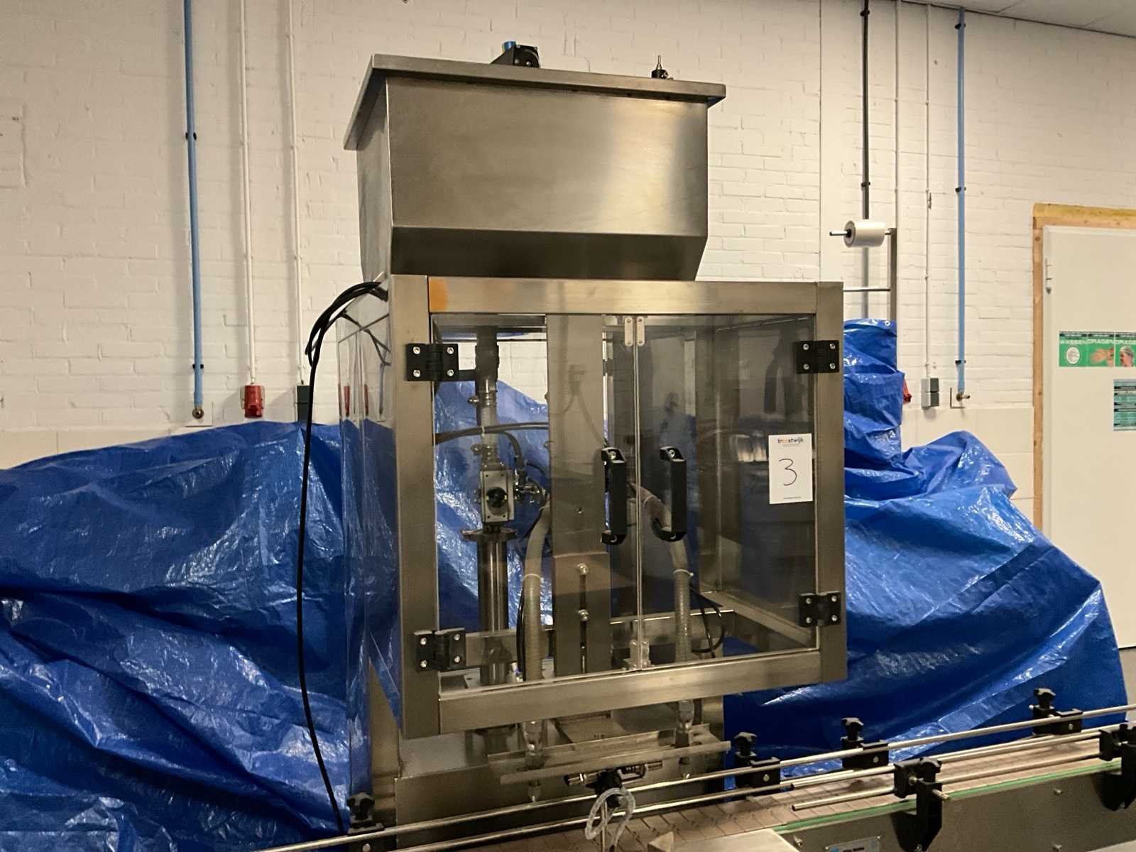 Pneumatisch en elektrisch gestuurde machine, voorzien van 2x pompunit met vulkop, 2 pneumatische doseerkleppen, voorraad tank, pneumatische afsluitbare toevoerklep, elektrisch aangedreven schakel flessen transportband, verstelbare geleiders, band lengte 4000 mm, Touchwin scherm, elektrische besturing, 400V etiketteermachine met Siemens aansturing, zij doorvoerbanden, schakelband, flessen plateau Nee Merk: MIC Aantal koppen: 2 Aansluiting: 230V Totale afmeting L: 6700mm Totale afmeting Hoogte: 2400mm