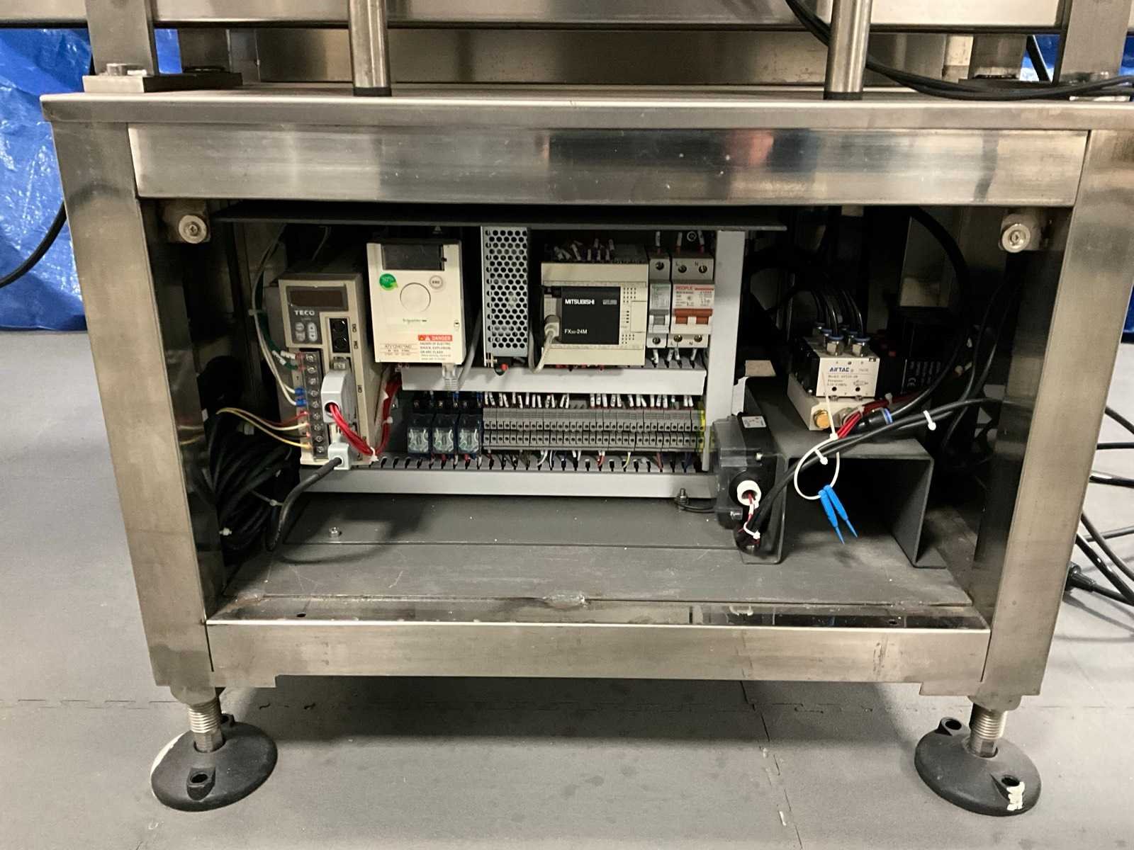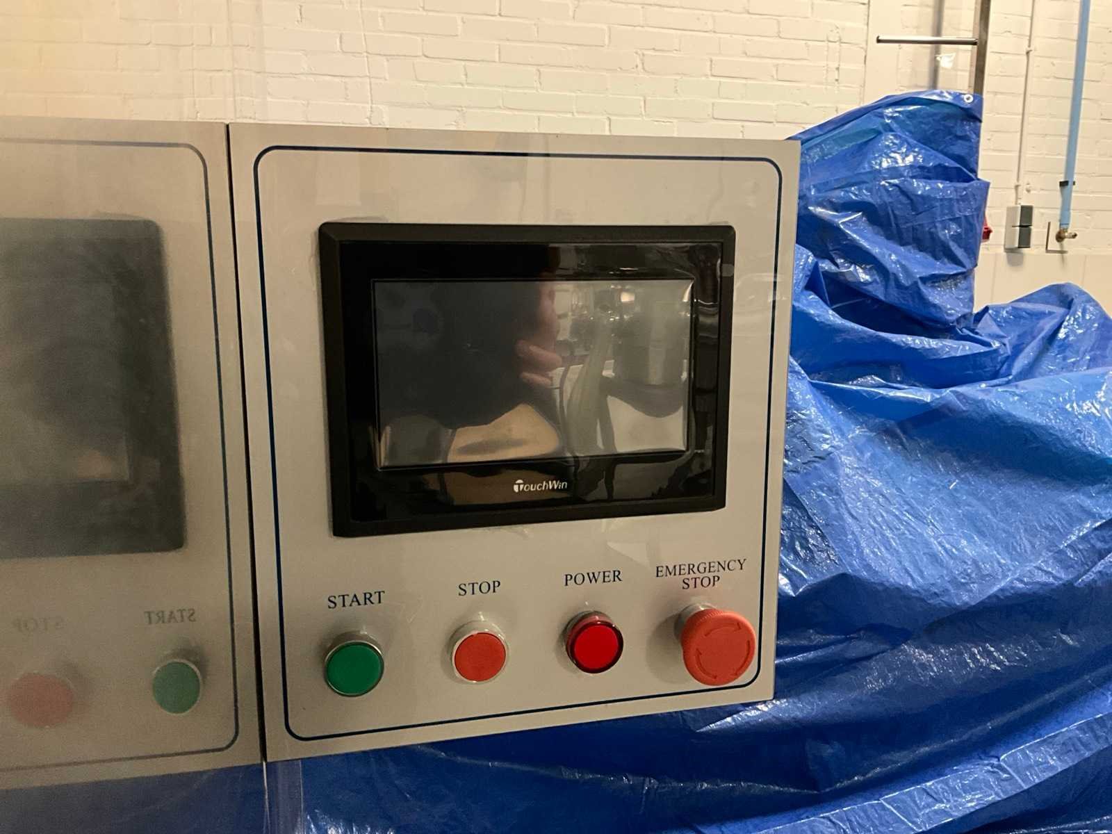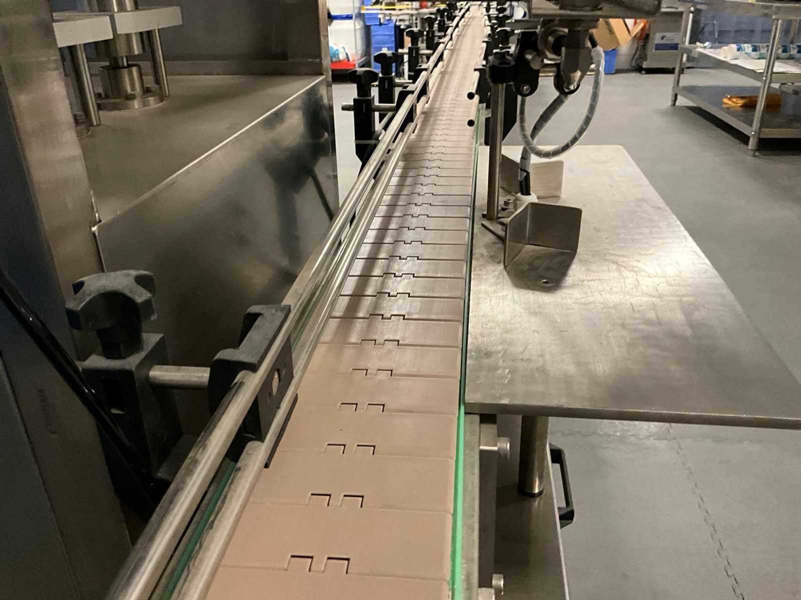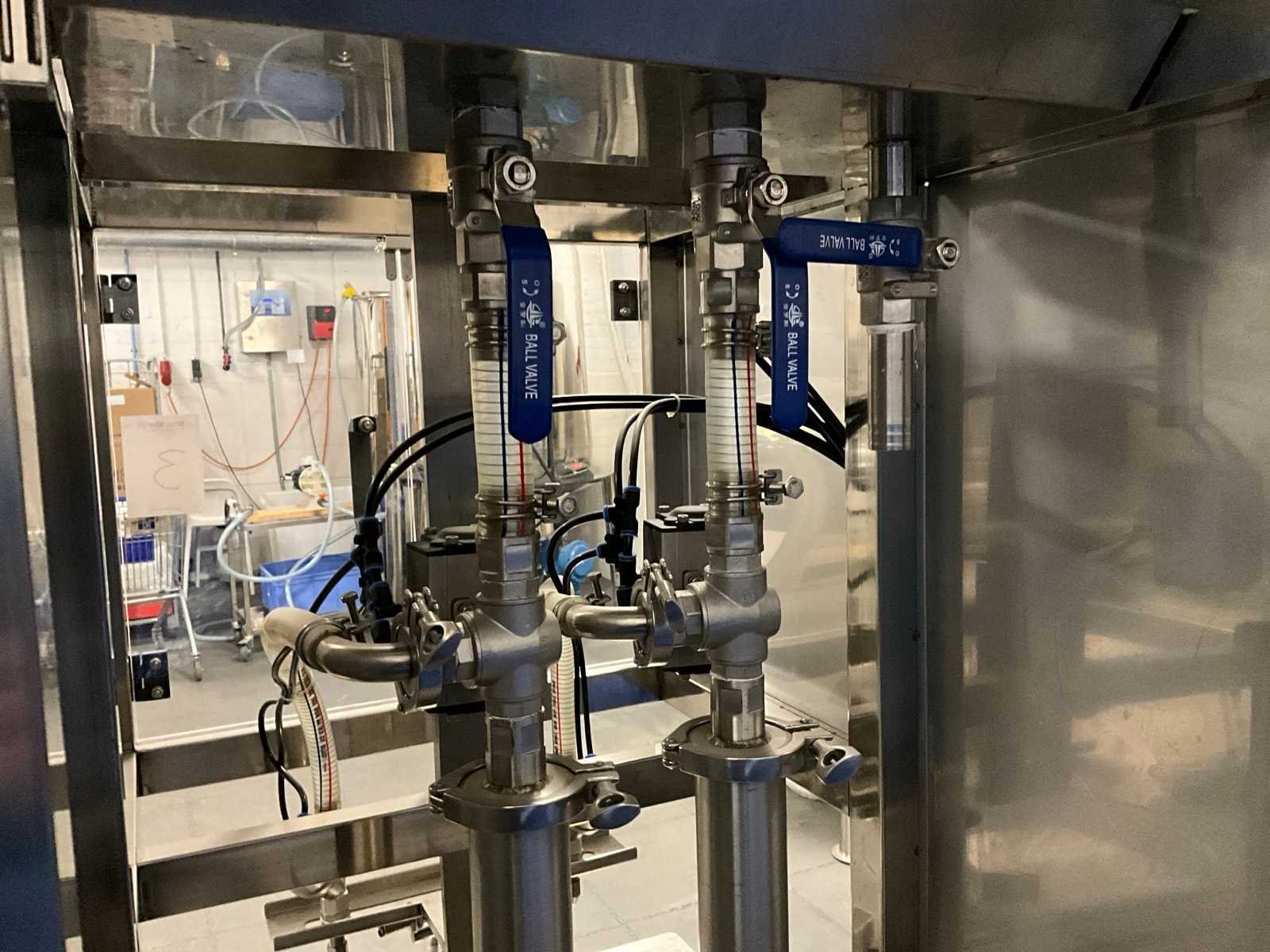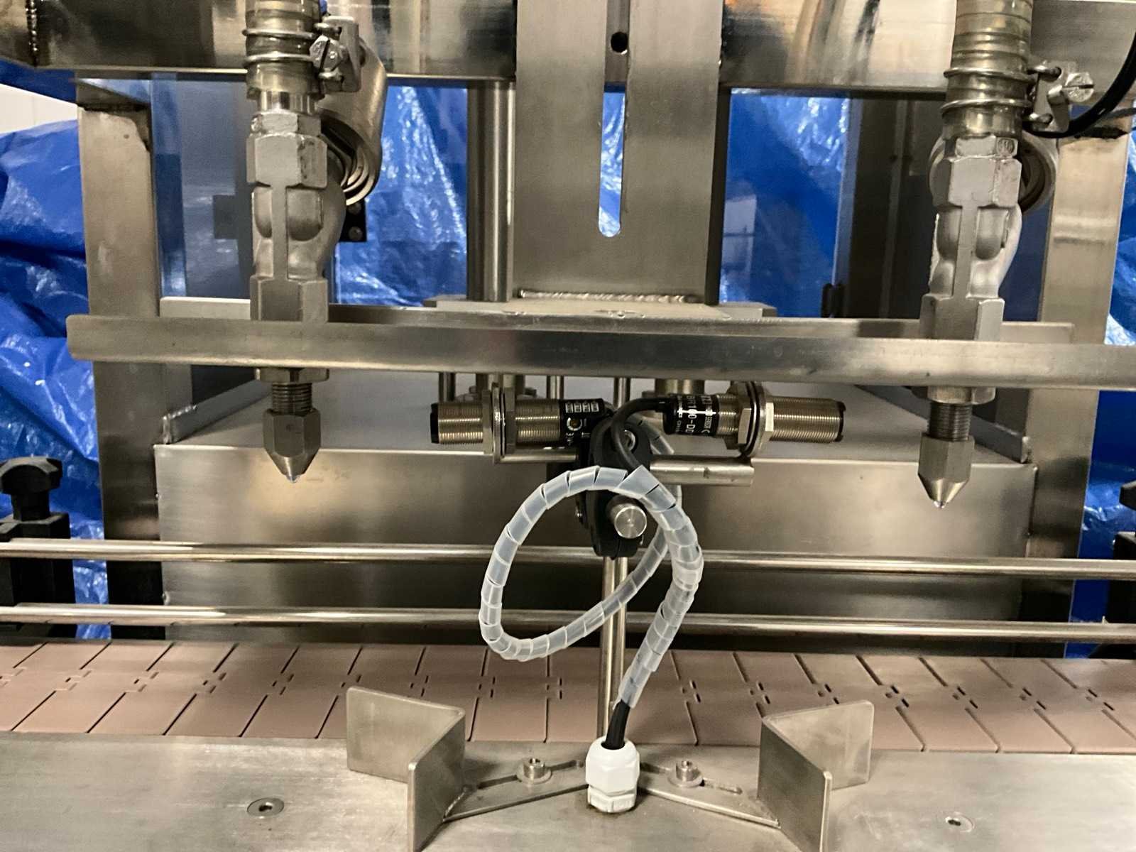 Pneumatisch en elektrisch gestuurde machine, voorzien van 2x pompunit met vulkop, 2 pneumatische doseerkleppen, voorraad tank, pneumatische afsluitbare toevoerklep, elektrisch aangedreven schakel flessen transportband, verstelbare geleiders, band lengte 4000 mm, Touchwin scherm, elektrische besturing, 400V etiketteermachine met Siemens aansturing, zij doorvoerbanden, schakelband, flessen plateau Nee Merk: MIC Aantal koppen: 2 Aansluiting: 230V Totale afmeting L: 6700mm Totale afmeting Hoogte: 2400mm