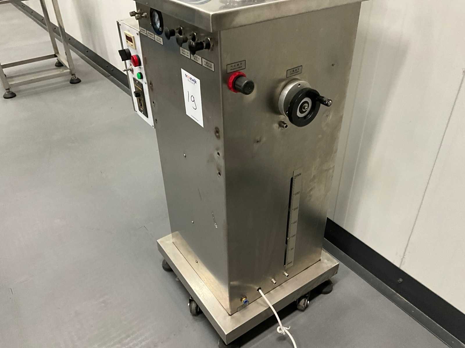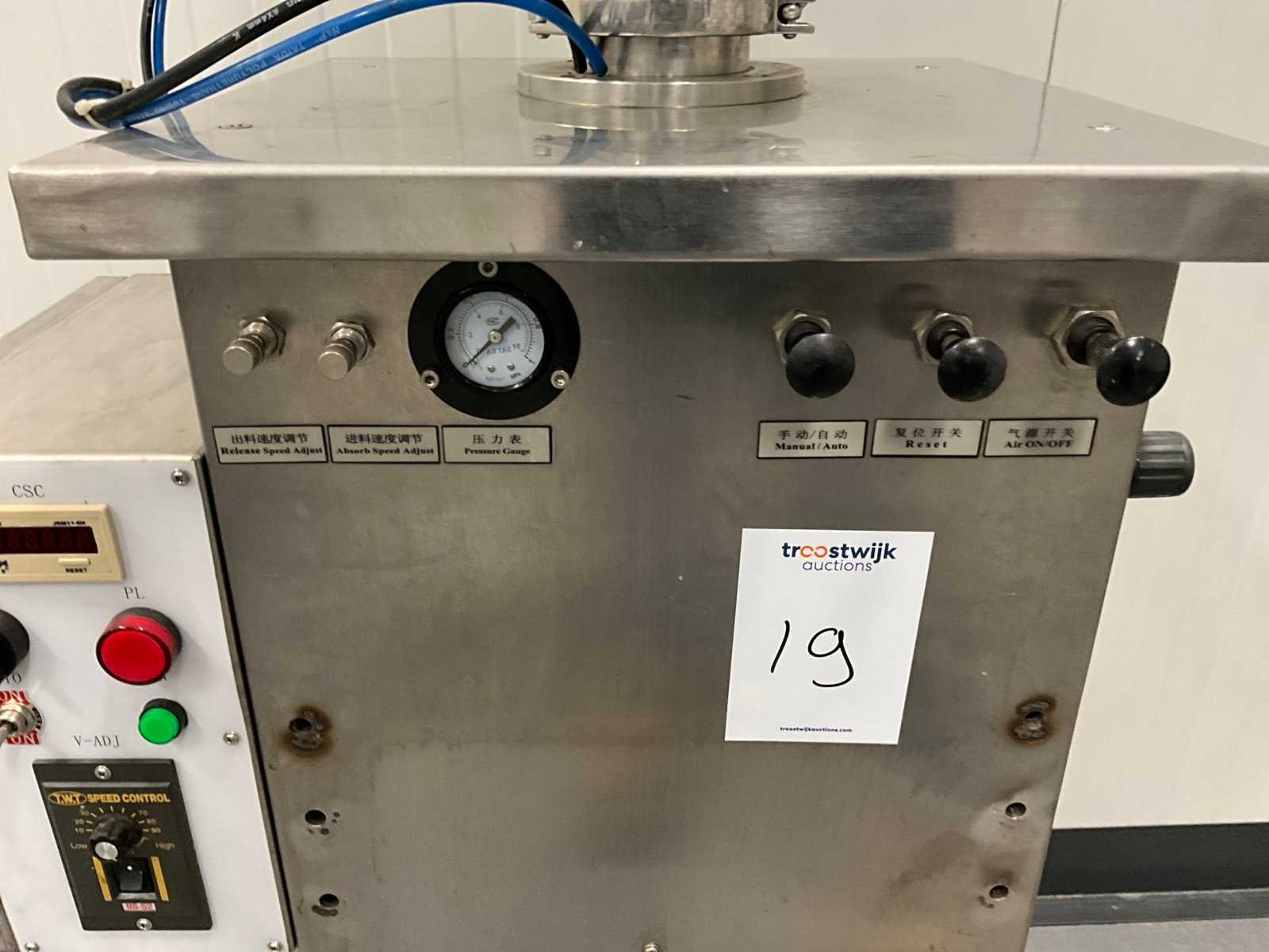 Pneumatisch en elektrisch aangestuurd voorzien van voetbediening, hopper, portie grote verstelbaar, Tri-clamp aansluiting, Let op! kop niet aanwezig Nee Verrijdbaar: true Totale afmeting L: 530mm Totale afmeting Hoogte: 1600mm