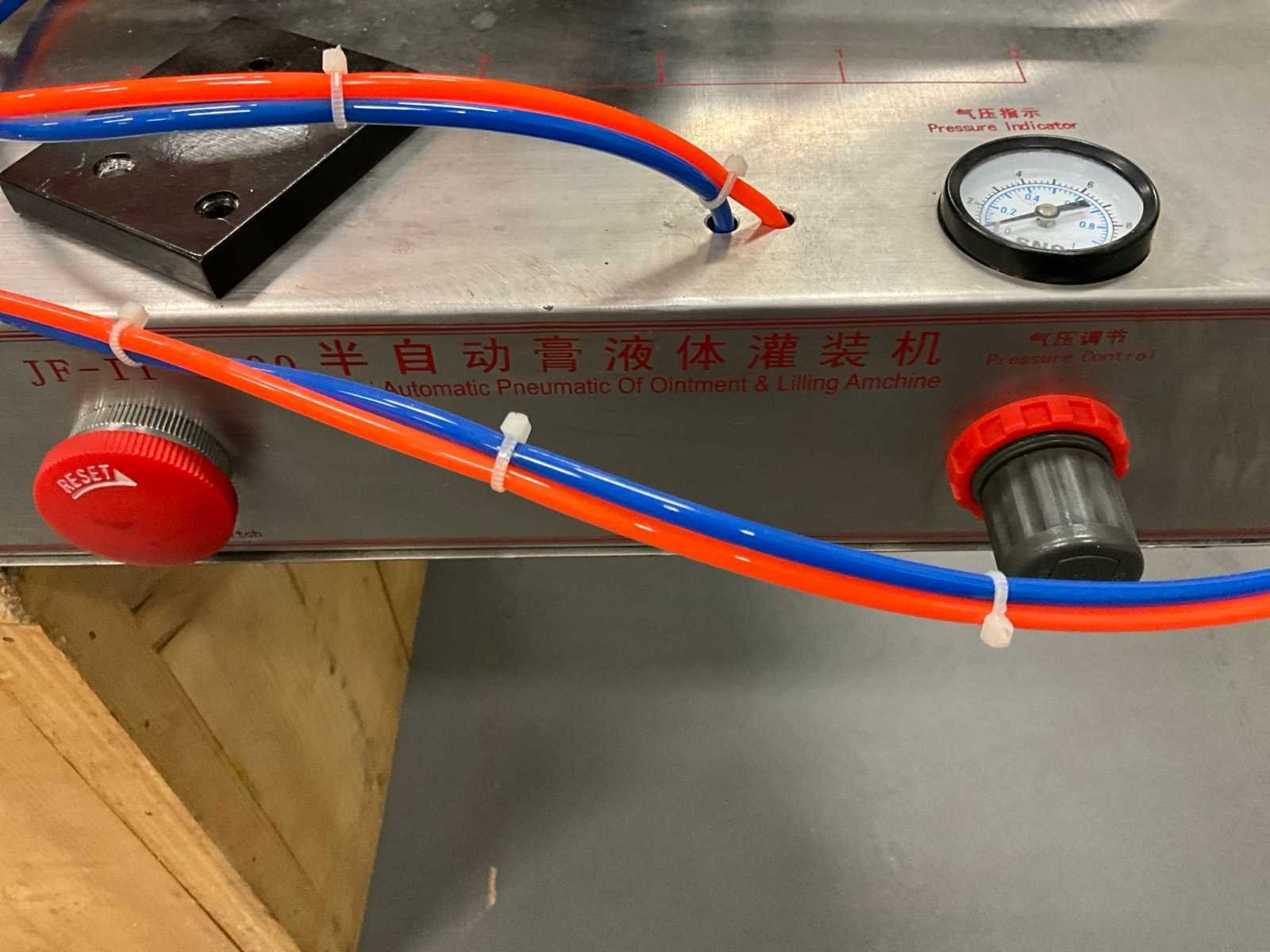 Pneumatische en elektrische aangestuurde machine, Tri-clamp aansluiting, voorzien van slang en diverse Nee Type: JF-II-5000 Aantal koppen: 2 Aansluiting: 230V
