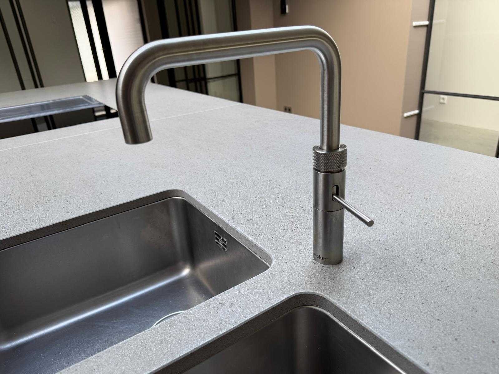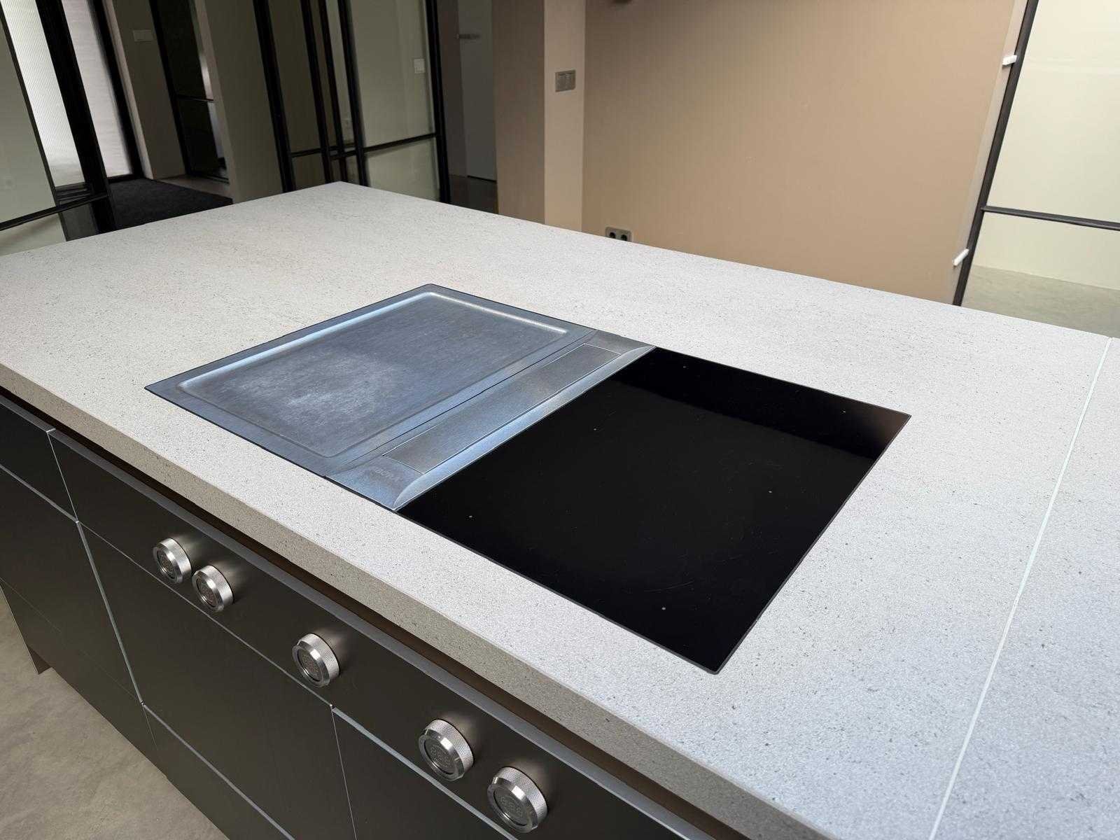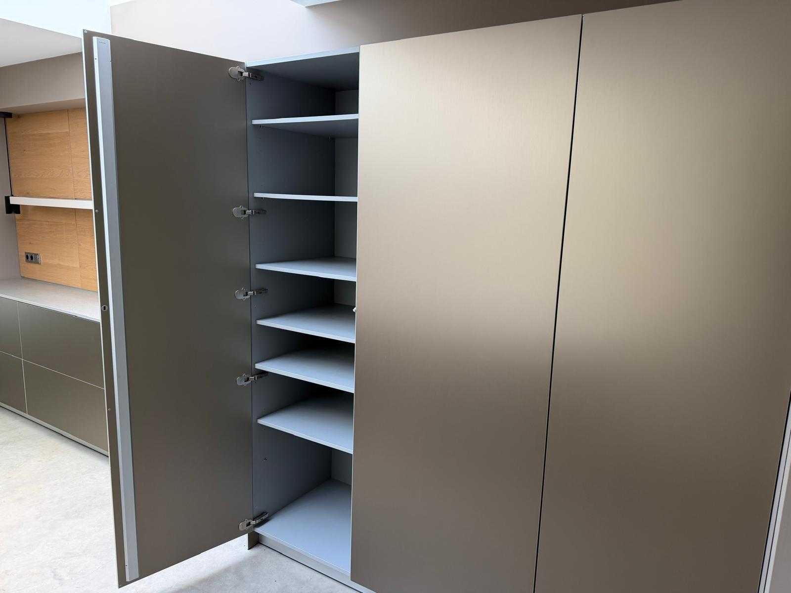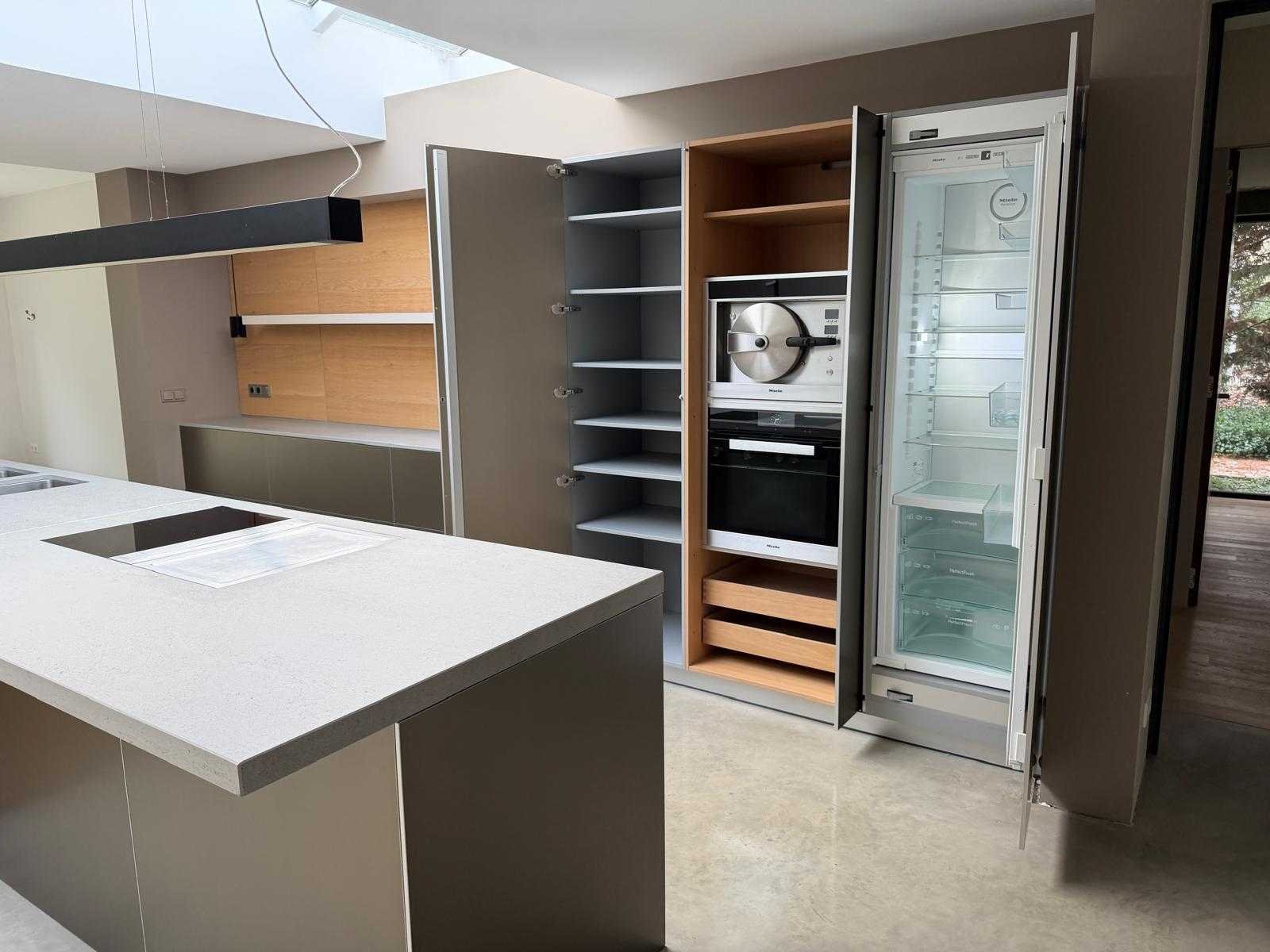 Met Jansen en De Bont hanglamp; let op, blad is licht beschadig, valt na montage te repareren; reeds gedemonteerd en ingepakt op pallets. (afstapelen, omruilen of statiegeld per pallet); pallets zijn niet inbegrepen; statiegeld betalen bij afhalen, of pallets afstapelen; werkblad niet ingepakt op pallets (26-BRUCH-03515) Nee Merk: Bulthaup Model: B3 Type keukenopstelling: Eiland Lengte: 511cm Breedte: 80cm Hoogte: 208cm Aanrechtblad: Dekton Strato Magnetron: Hogedruk stoomoven Miele DGD4635CS Fornuis: Bora profesional met recirculatie Koelkast: Miele K37272iD Softclose: true Oven: Miele H6860BP Vaatwasser: Miele G6570SCVI Lengte kookeiland: 392,4cm Breedte kookeiland: 141,8cm Hoogte kookeiland: 95cm Kleur: Fronten aluminum zandbeige; hoge kasten soft touch lak cashmere; legbord matlak beige; nispanelen structuur eiken fineer; lage kast in structuur eiken fineer