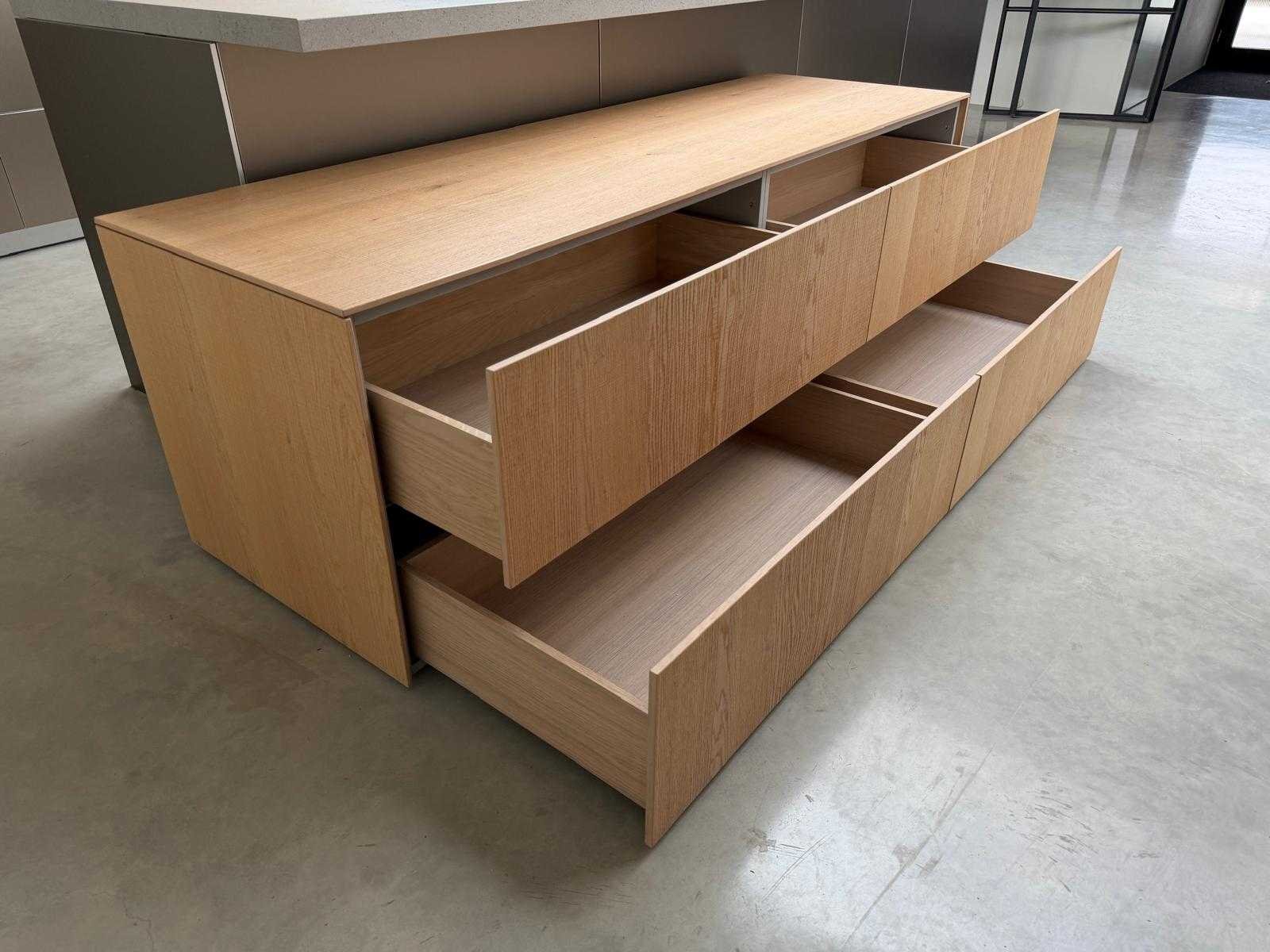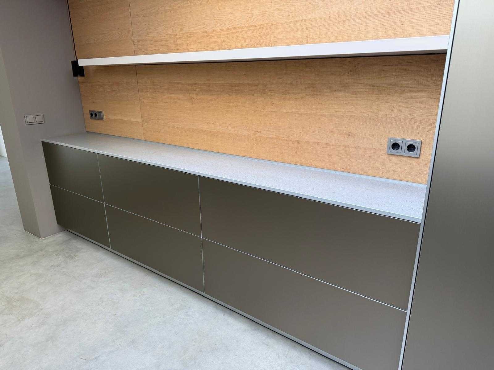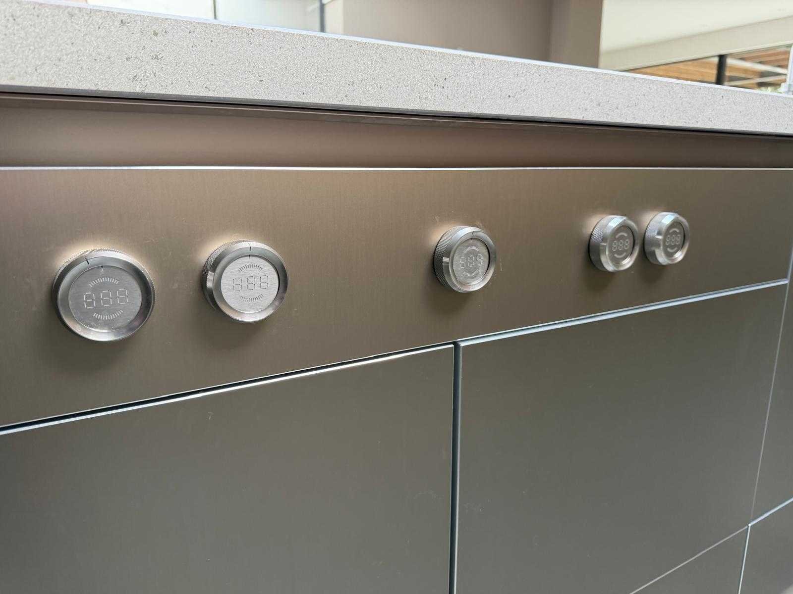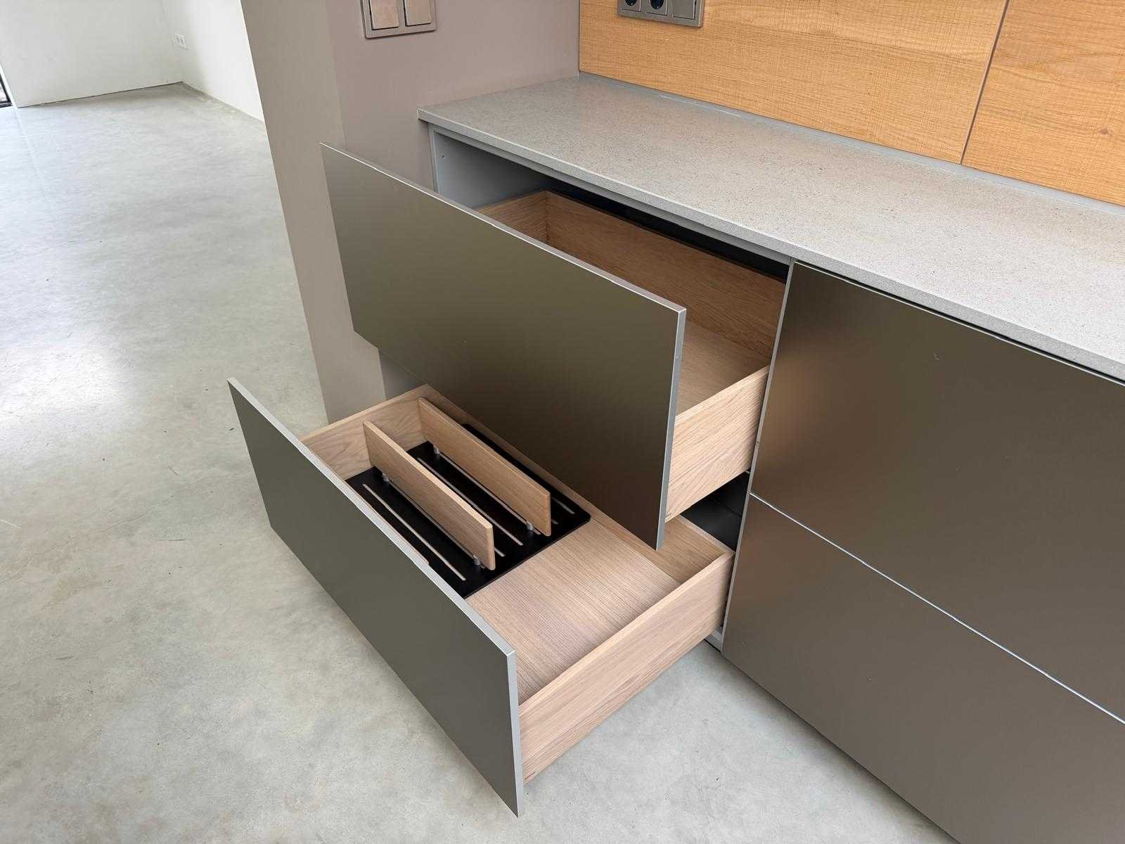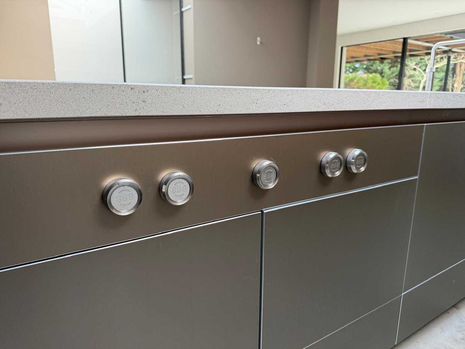 Met Jansen en De Bont hanglamp; let op, blad is licht beschadig, valt na montage te repareren; reeds gedemonteerd en ingepakt op pallets. (afstapelen, omruilen of statiegeld per pallet); pallets zijn niet inbegrepen; statiegeld betalen bij afhalen, of pallets afstapelen; werkblad niet ingepakt op pallets (26-BRUCH-03515) Nee Merk: Bulthaup Model: B3 Type keukenopstelling: Eiland Lengte: 511cm Breedte: 80cm Hoogte: 208cm Aanrechtblad: Dekton Strato Magnetron: Hogedruk stoomoven Miele DGD4635CS Fornuis: Bora profesional met recirculatie Koelkast: Miele K37272iD Softclose: true Oven: Miele H6860BP Vaatwasser: Miele G6570SCVI Lengte kookeiland: 392,4cm Breedte kookeiland: 141,8cm Hoogte kookeiland: 95cm Kleur: Fronten aluminum zandbeige; hoge kasten soft touch lak cashmere; legbord matlak beige; nispanelen structuur eiken fineer; lage kast in structuur eiken fineer