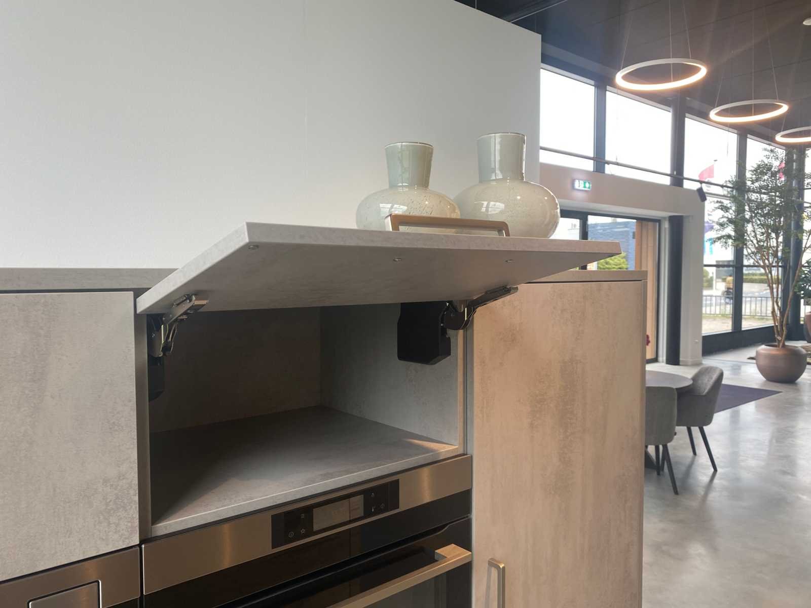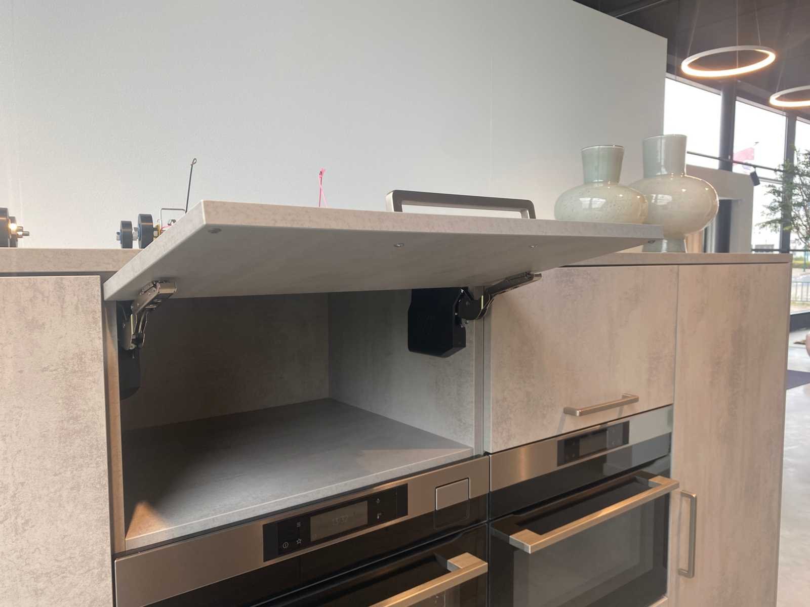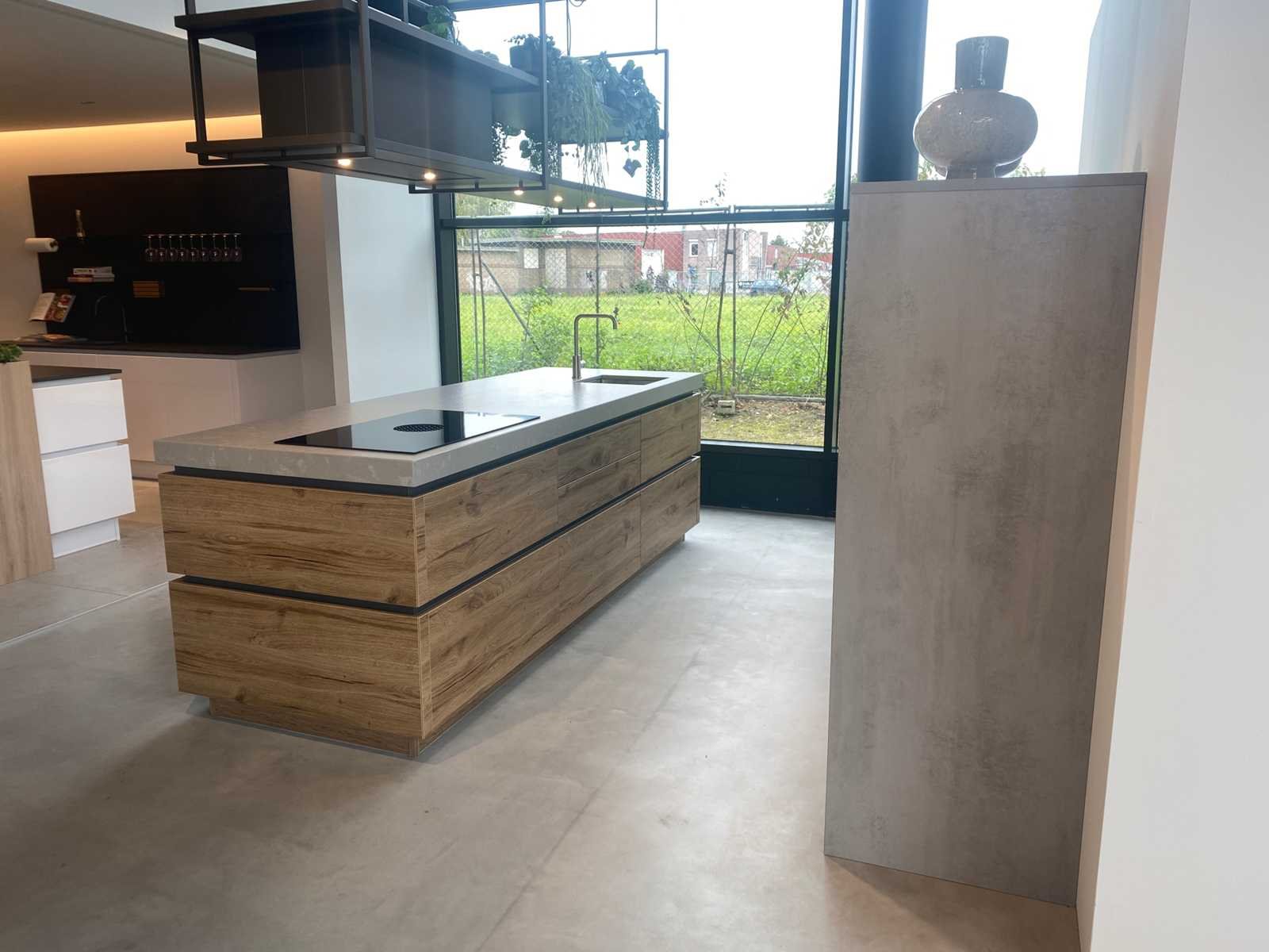 Reeds gedemonteerd en ingepakt op pallets. (afstapelen, omruilen of statiegeld per pallet); pallets zijn niet inbegrepen; statiegeld betalen bij afhalen, of pallets afstapelen; werkblad niet ingepakt op pallets (25-LWK-02298) Nee Merk: Schmidt Type keukenopstelling: Eiland Lengte: 240cm Breedte: 60cm Hoogte: 180cm Kraan: Reginox Gootsteen: Reginox Aanrechtblad: Noble concrete Magnetron: AEG KMK761080M Fornuis: Bora Pura Koelkast: AEG SKE814D9ZC Softclose: true Oven: AEG KSK792280M Afzuigkap: Wave Design Vaatwasser: Pelgrim GVW230LS Lengte kookeiland: 300cm Breedte kookeiland: 100cm Hoogte kookeiland: 92cm Kleur: Eiken, grijs betonlook