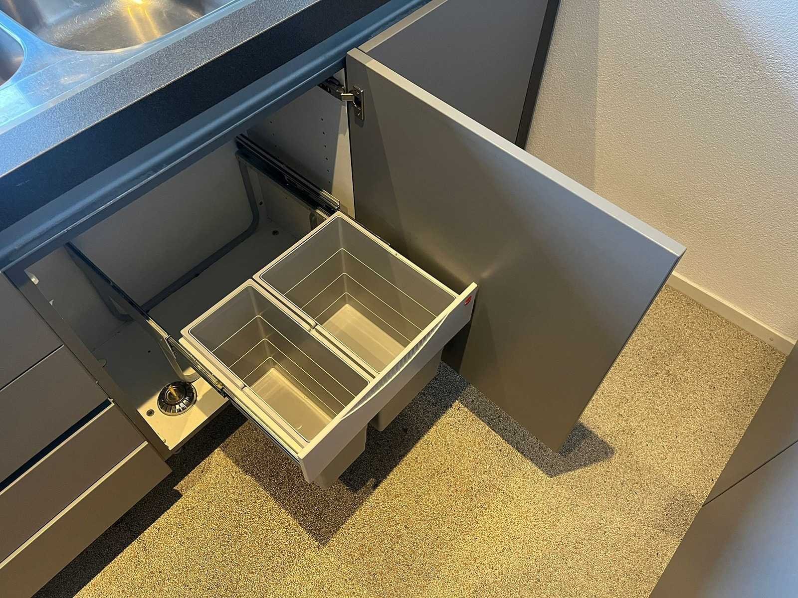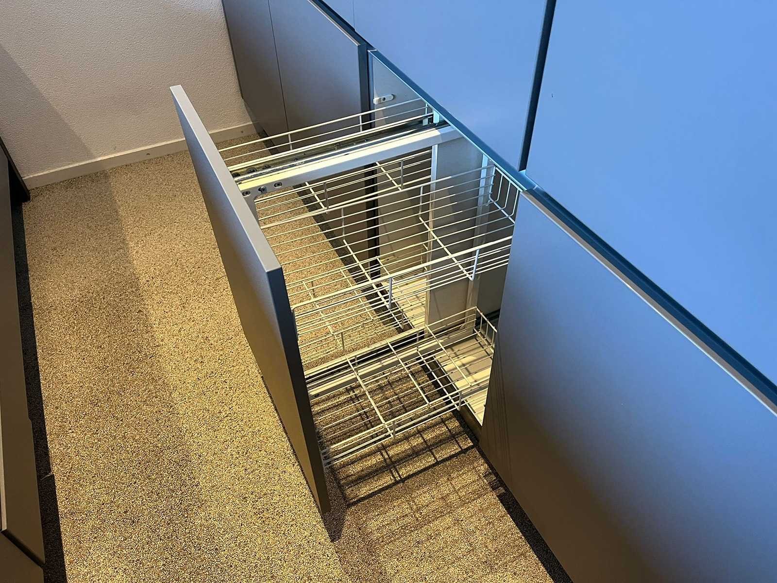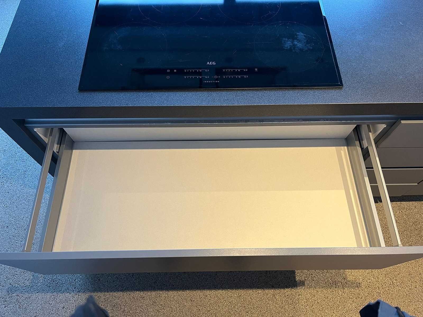 Conditie gebruikt; ingepakt op 4 pallets; afmetingen hoge kasten lxbxh ca. 303x60x235 cm; afmetingen eiland lxb ca. 290x90,5 cm; Reeds gedemonteerd en ingepakt op pallets. (afstapelen, omruilen of statiegeld per pallet); Pallets zijn niet inbegrepen; statiegeld betalen bij afhalen, of pallets afstapelen; werkblad niet ingepakt op pallets Nee Merk: GOPA Type keukenopstelling: Schiereiland Kraan: Grohe Aanrechtblad: Kunststof donkergrijs Fornuis: AEG Koelkast: AEG Softclose: true Oven: AEG Afzuigkap: Novy Vaatwasser: AEG Hoofdkleur: Grijs