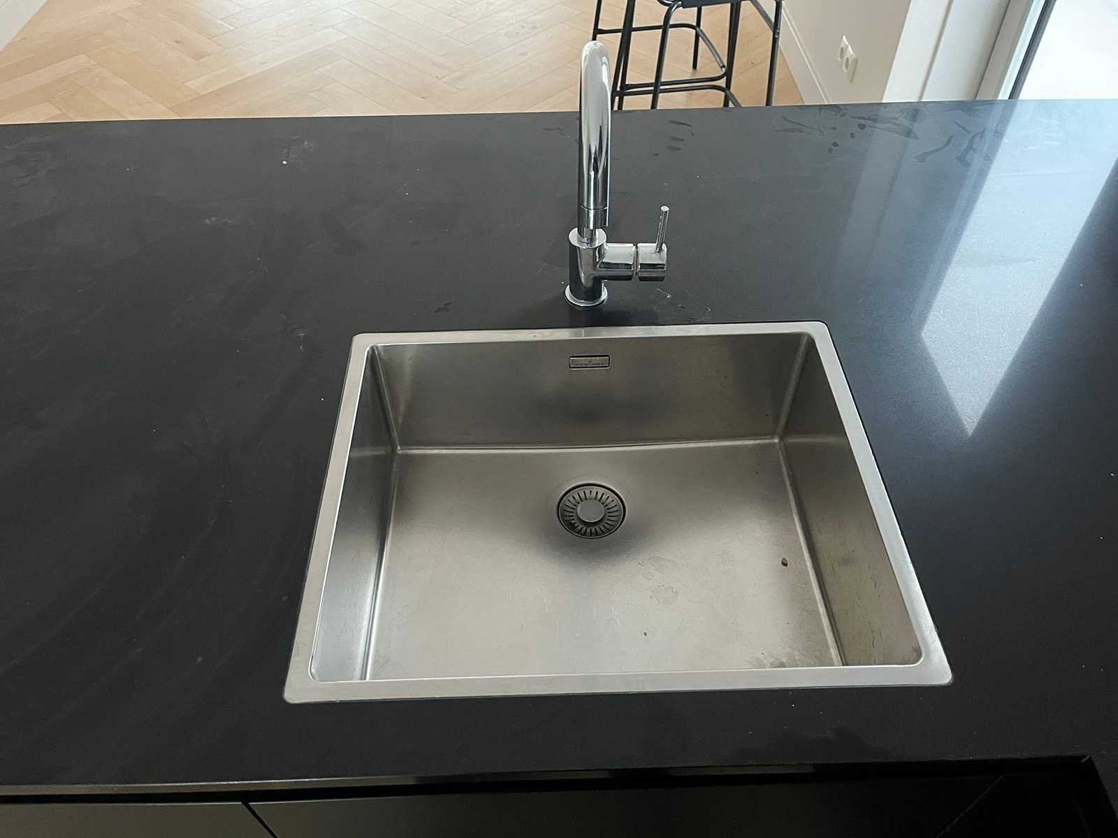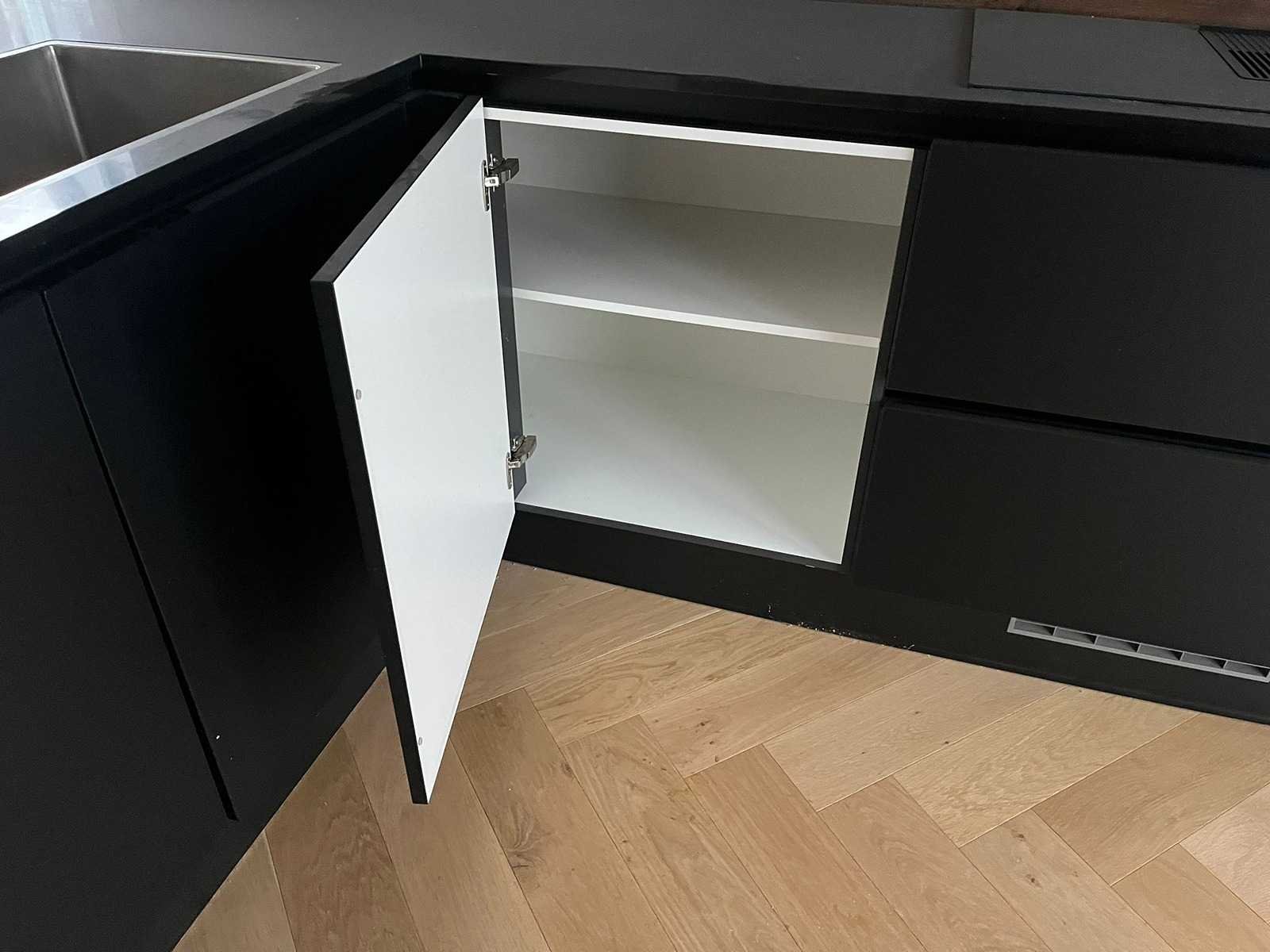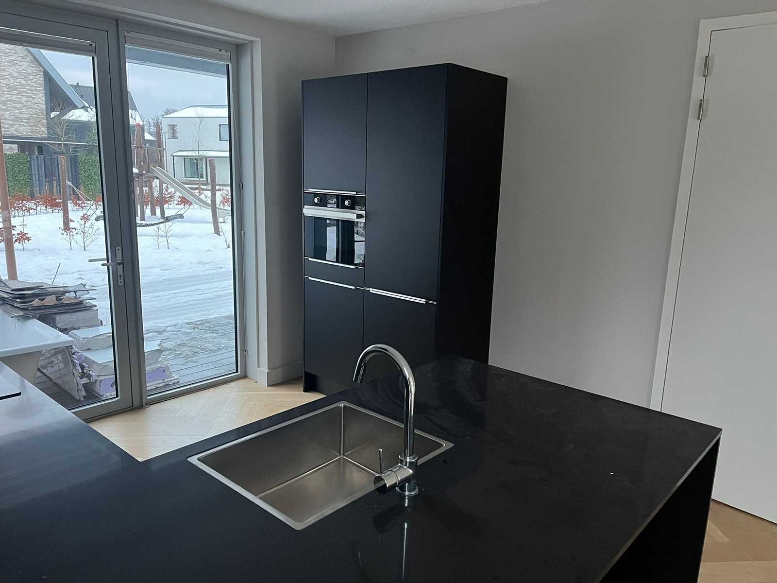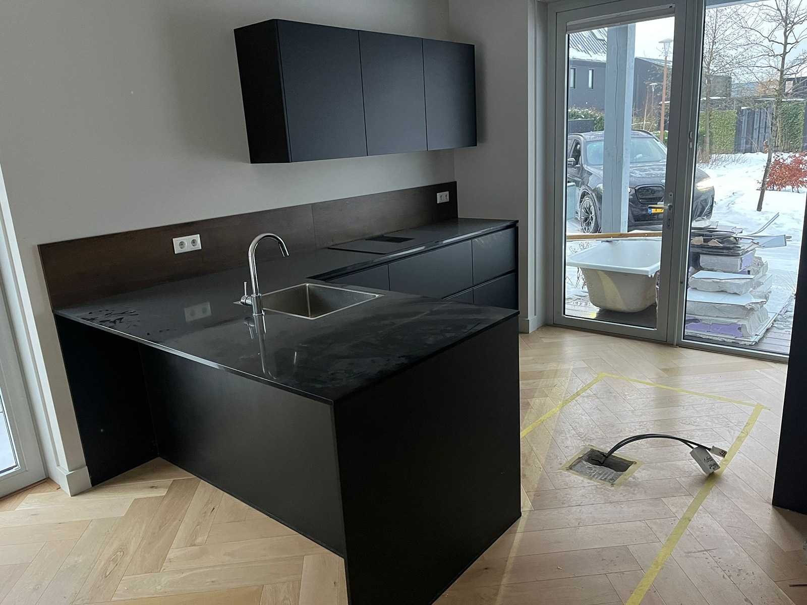 Conditie gebruikt; afmetingen linkerdeel lxb ca. 187x100 cm; afmetingen rechterdeel lxb ca. 320x60 cm; Afmetingen hoge kasten lxbxh ca. 123x60x221 cm; Reeds gedemonteerd en ingepakt op pallets. (afstapelen, omruilen of statiegeld per pallet); Pallets zijn niet inbegrepen; statiegeld betalen bij afhalen, of pallets afstapelen; werkblad niet ingepakt op pallets Nee Type keukenopstelling: Schiereiland Gootsteen: Reginox Aanrechtblad: Steen zwart Magnetron: Bauknecht Fornuis: Bauknecht Koelkast: Bauknecht Vriezer: Bauknecht Softclose: true Afzuigkap: Bauknecht Vaatwasser: Bauknecht Hoofdkleur: Zwart