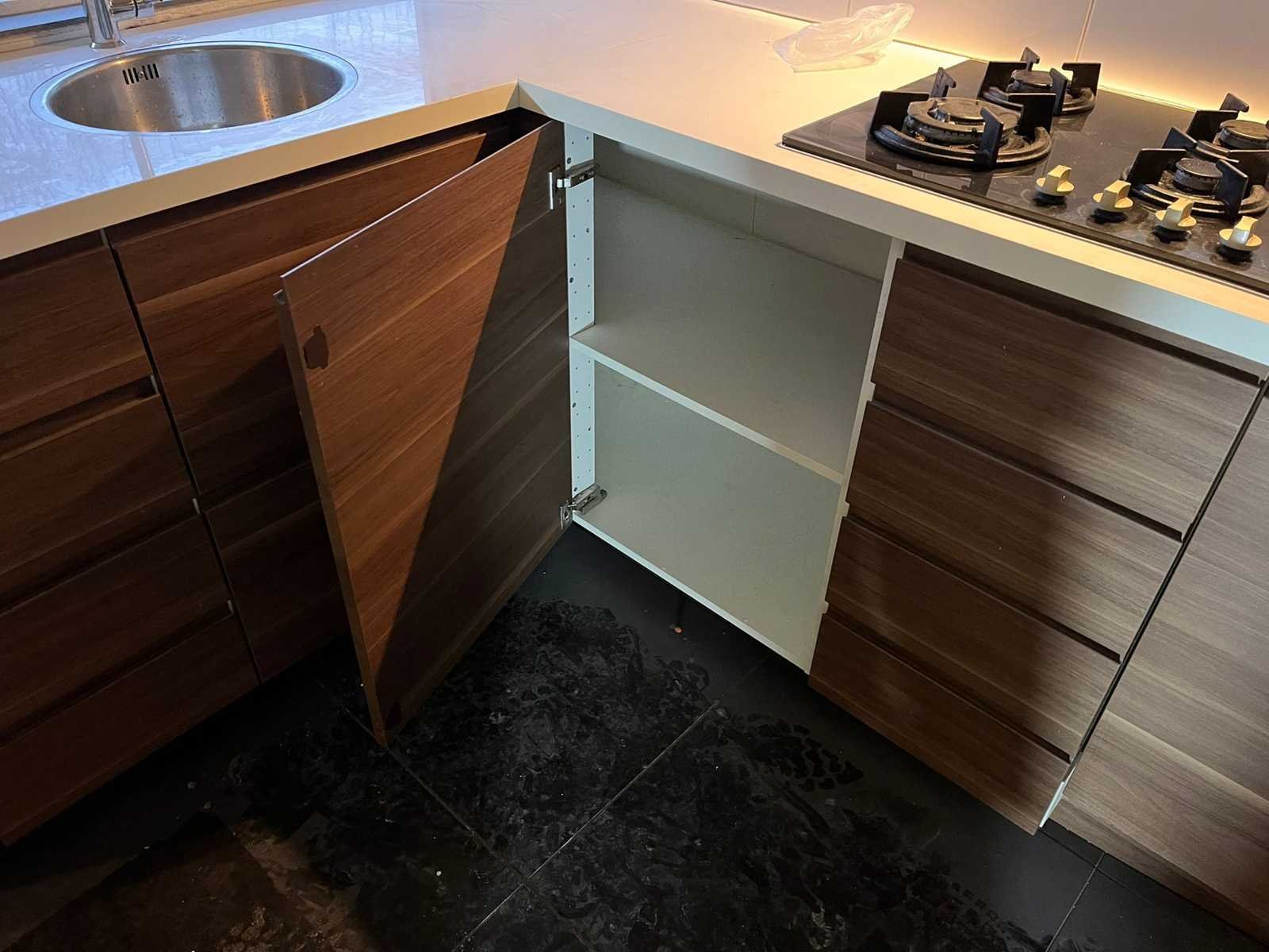 Conditie: gebruikt; afmetingen linkerdeel circa 172x62x90 cm; afmetingen rechterdeel circa 305x60x207 cm; reeds gedemonteerd en ingepakt op pallets. (afstapelen, omruilen of statiegeld per pallet); pallets zijn niet inbegrepen; statiegeld betalen bij afhalen, of pallets afstapelen; werkblad niet ingepakt op pallets (25-2DE-03054) Nee Type keukenopstelling: Hoek Kraan: Ja Gootsteen: Ja Aanrechtblad: Kunststof Fornuis: Exquisit Koelkast: Exquisit Softclose: true Oven: Inbegrepen Afzuigkap: Inbegrepen Vaatwasser: Indesit