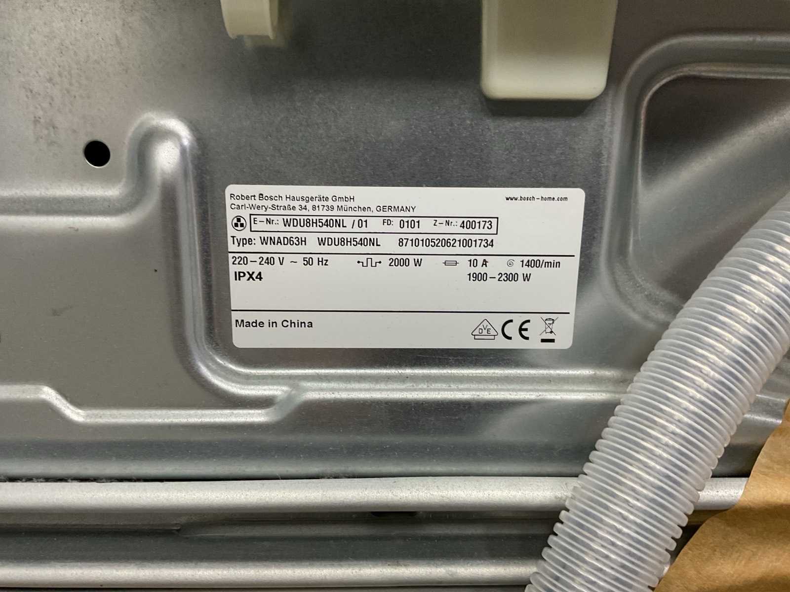 Nee Merk: Bosch Product type: WDU8H540NL Aantal toeren per minuut: 1400rpm Lengte: 63cm Breedte: 60cm Hoogte: 85cm Kleur: Wit