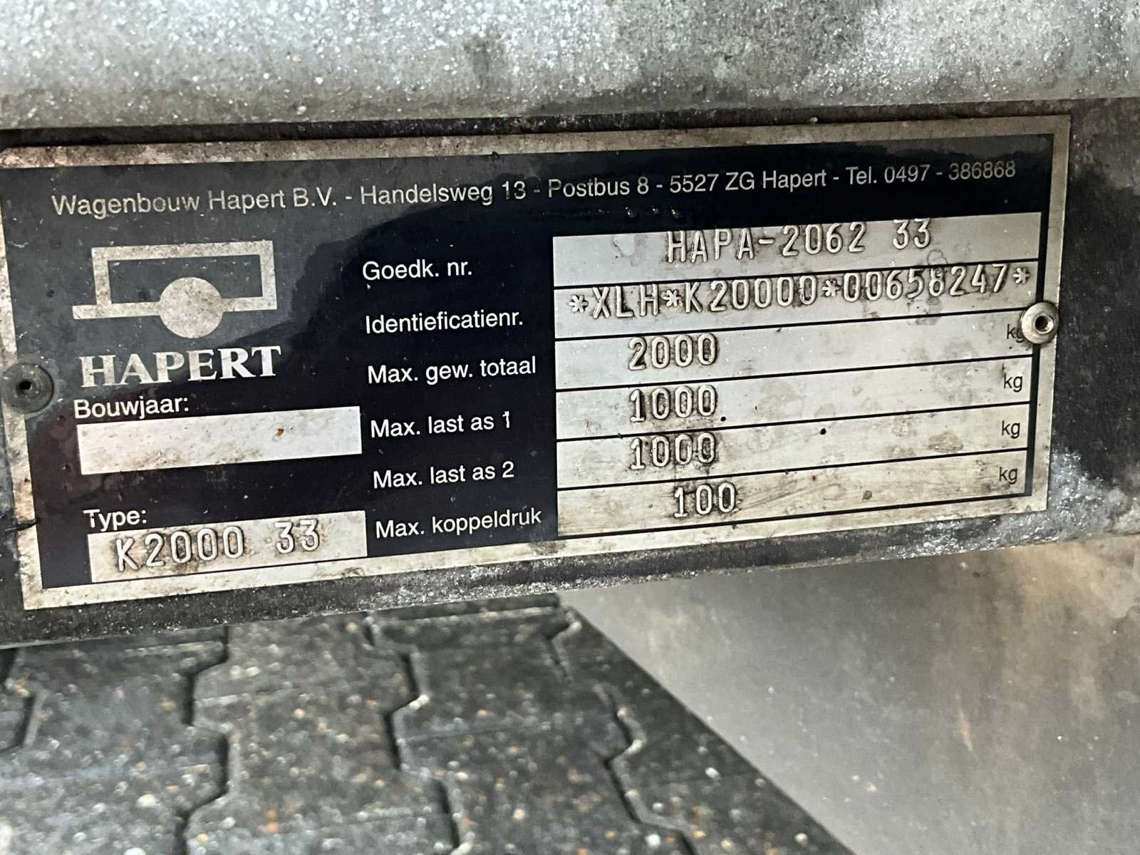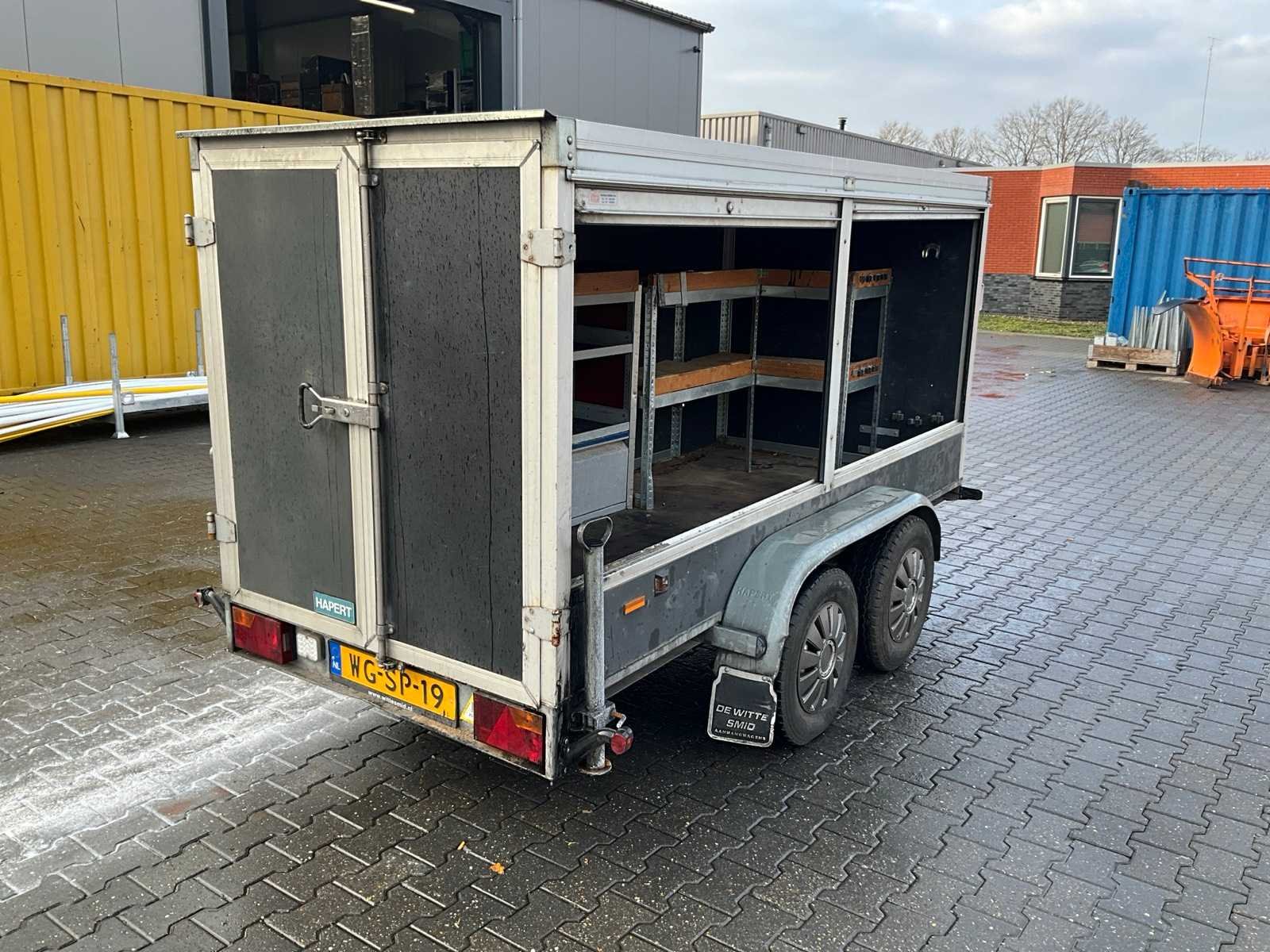 Voorzien van 2 deuren aan de achterzijde, 2 rolluiken aan de linkerkant. Nee Merk: Hapert Type: K2000-33 Bouwjaar: 2002 Chassisnummer: SXLHK20000X00656247* Aantal assen: 2 Laadbak afmeting l: 303cm Laadbak afmeting b: 130cm Ledig gewicht: 505kg Laadvermogen: 695kg Gesloten opbouw: true Datum eerste toelating: 2002-12-04 Datum eerste toelating (NL): 2002-12-04 Kenteken: WG-SP-19 Kentekenpapieren compleet?: true Hoogte: 190cm Lengte: 430cm Breedte: 174cm Nationaliteit documenten: NL Zelf rijdend exporteren: Mogelijk