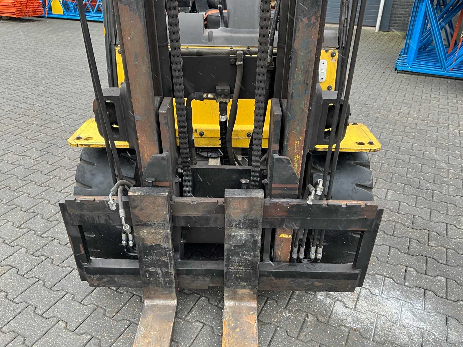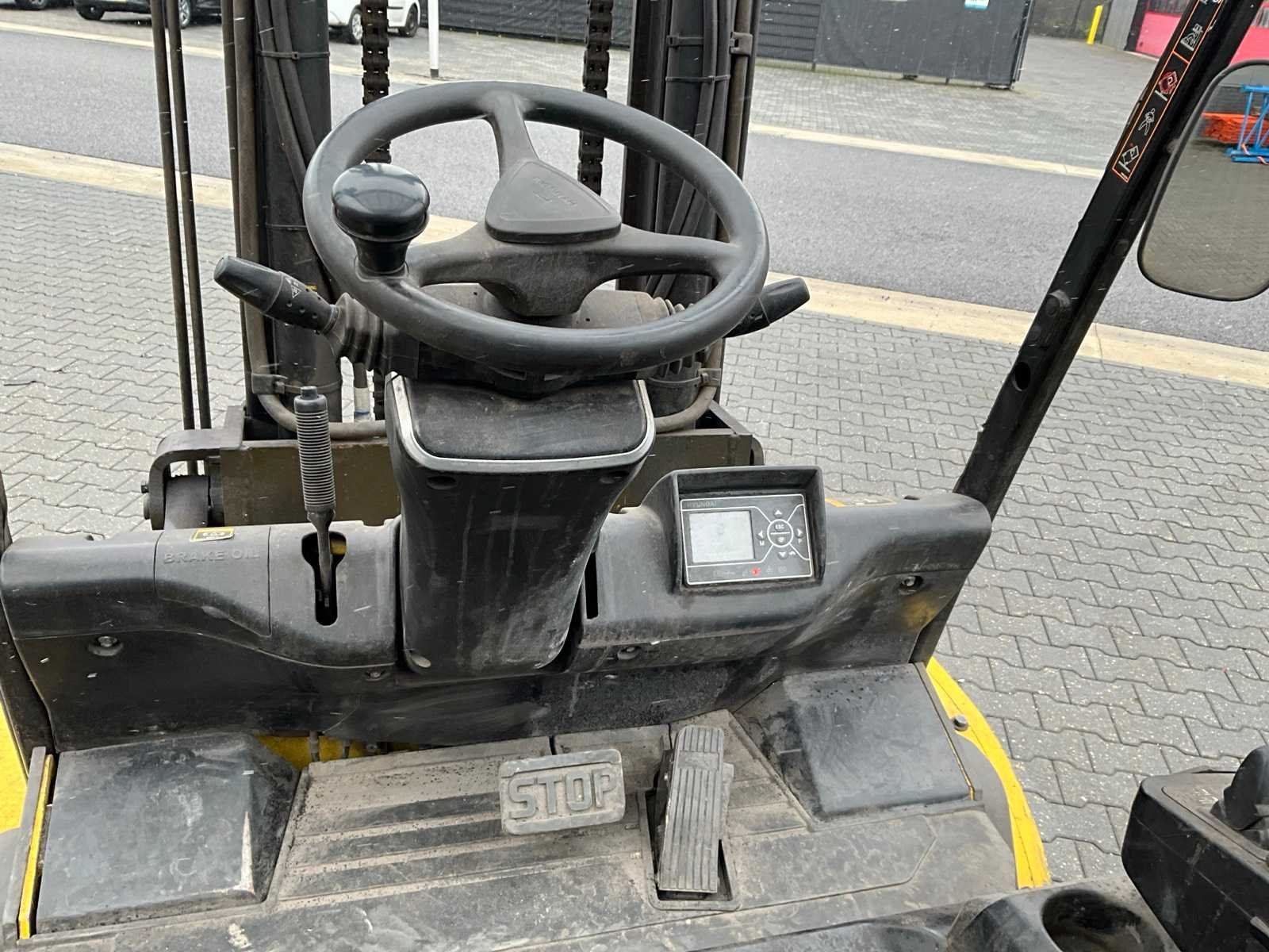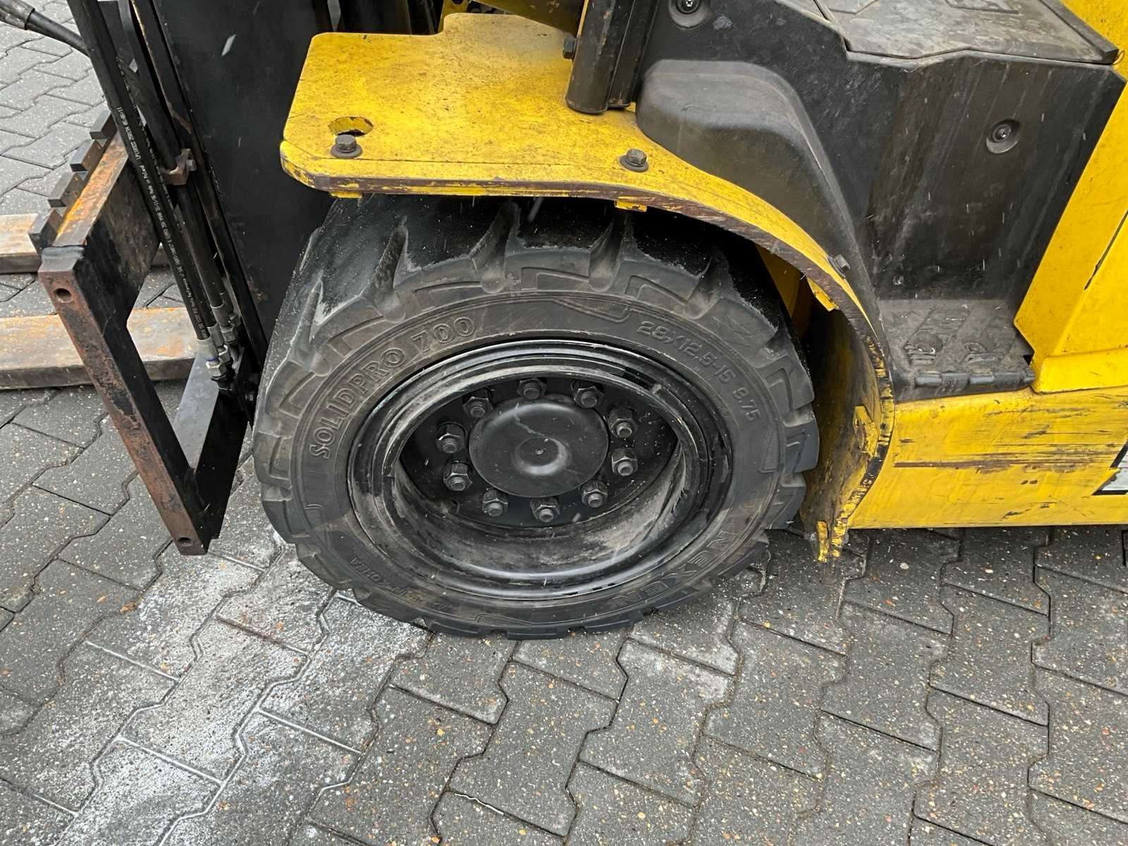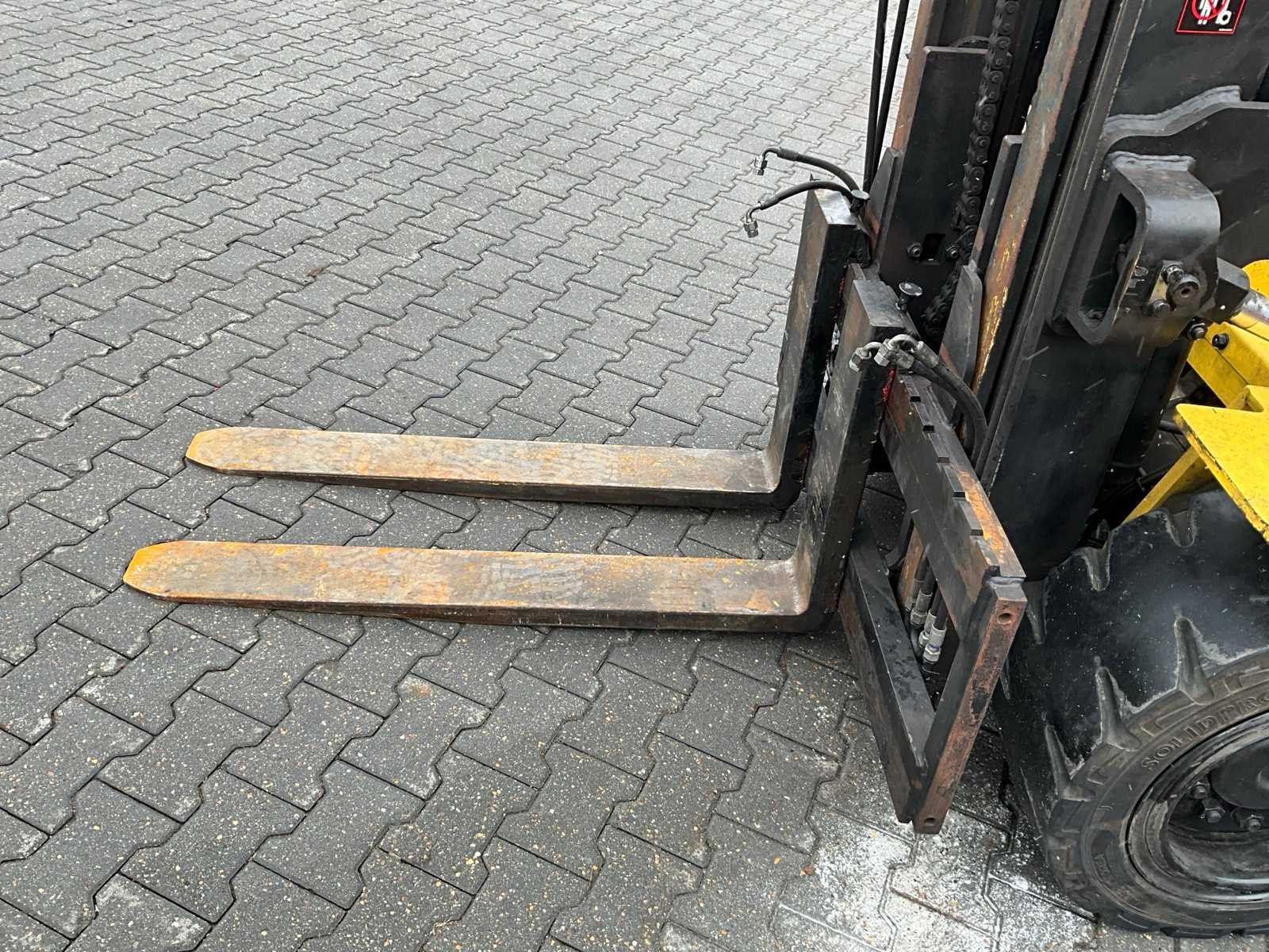 Nee Merk: Hyundai Type: HX50 Bouwjaar: 2015 Serienummer: HB303PF0000091 Aantal wielen: 4 Duplex mast: true Eigen gewicht: 5918kg Hefvermogen: 5000kg Lepellengte: 1215mm Max. hefhoogte: 3620mm Vol rubber banden: true Minimale doorrijhoogte: 2600mm Totale afmeting L: 4300mm Totale afmeting Breedte: 1420mm Totale afmeting Hoogte: 2600mm