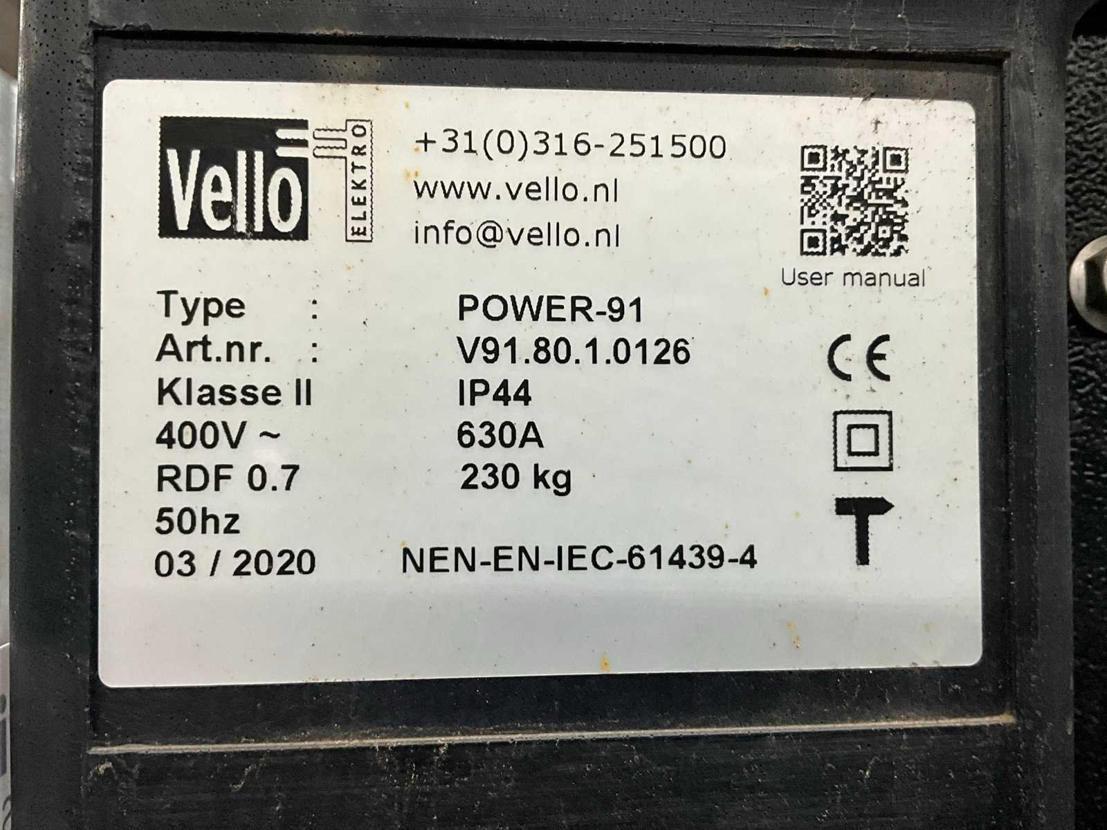 4x aansluiting 125A Nee Merk: Vello Type: Power-91 Bouwjaar: 2020 Aansluiting: 630A Eigen gewicht: 230kg Totale afmeting L: 1060mm Totale afmeting Breedte: 800mm Totale afmeting Hoogte: 2300mm