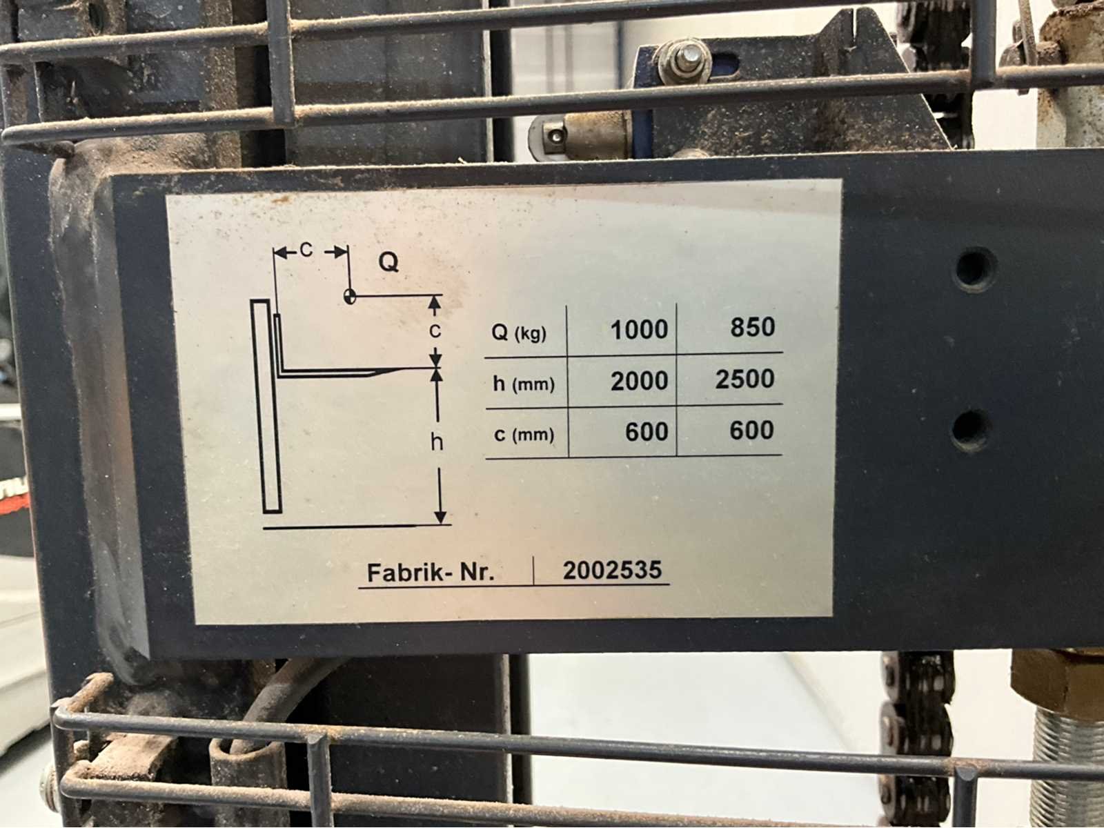 Gekeurd tm januari 2027; acculader Nee Merk: Genkinger Type: EFG-18 Bouwjaar: 2012 Serienummer: 76749 Hefvermogen: 1000kg Hefhoogte: 2470mm Lepellengte: 1150mm Afgelezen urenstand: 634 Eigen gewicht: 760kg Minimale doorrijhoogte: 1740mm Totale afmeting L: 1900mm Totale afmeting Breedte: 800mm Totale afmeting Hoogte: 2470mm Accu lader: true