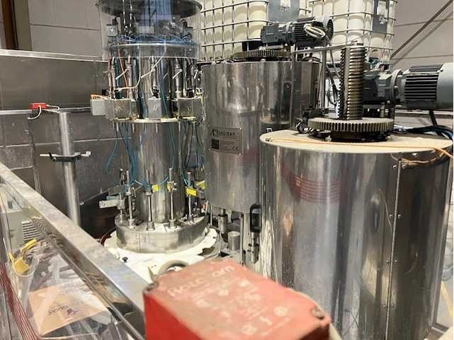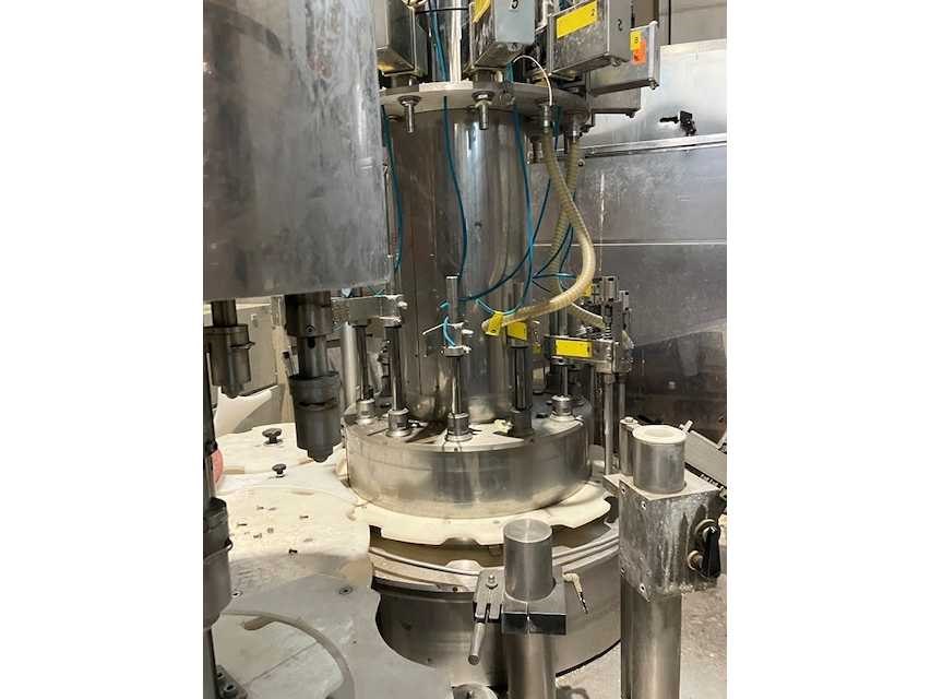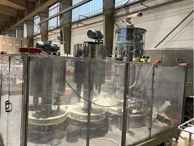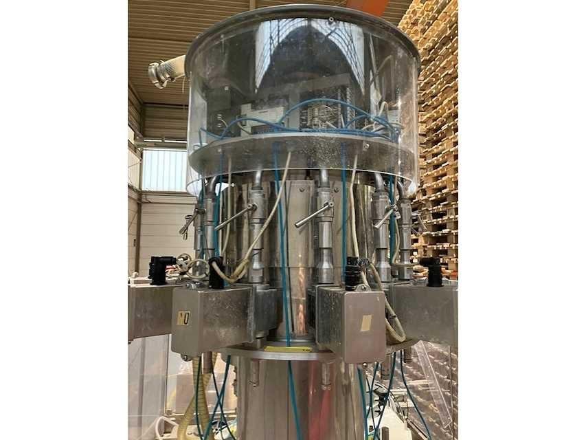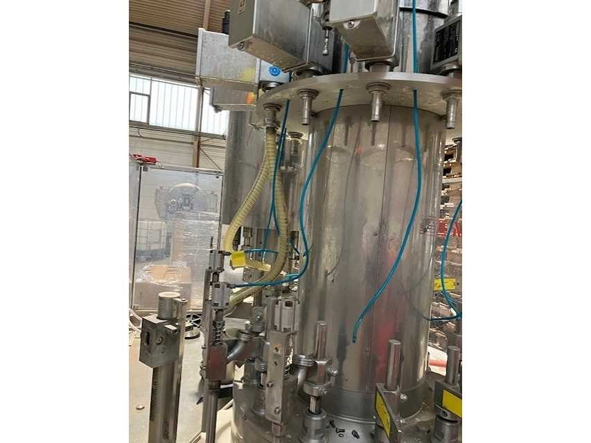 Machine is inclusief automatische doppenaanvoer. Meerdere pasdelen voor diverse typen flessen. Machine is professioneel gedemonteerd. Zonder afvullanzen. Documentatie installatie aanwezig. Nee Merk: Mengibar Type: BR12 IPI/606 Bouwjaar: 2002 Serienummer: 2-01005 Aantal koppen: 12 Aansluiting: 400V Eigen gewicht: 2000kg Totale afmeting L: 3400mm Totale afmeting Breedte: 2150mm Totale afmeting Hoogte: 2900mm Leveringsvoorwaarden: Niet gefundeerd - onverpakt