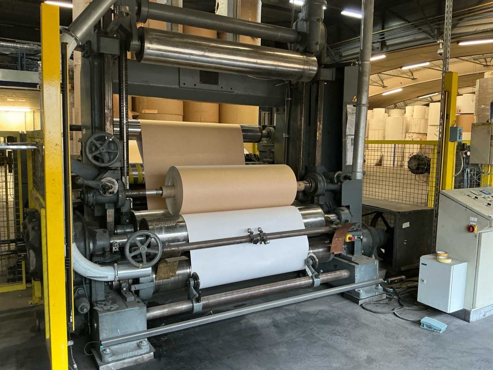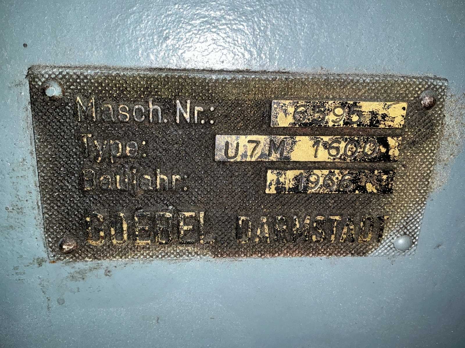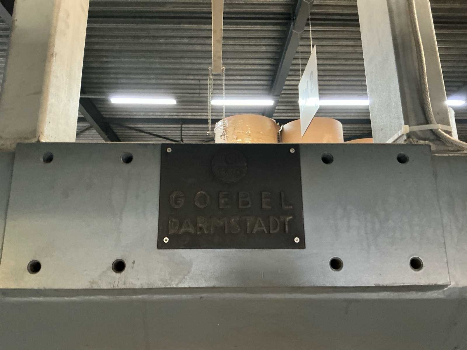 Voorzien van: Lichtscherm, Thor bedieningskast, veiligheid hekken, 3 Ton Hitachi lier incl stalen t profiel balken frame, voetbediening, De Goebel Darmstadt U7M-1600 (bouwjaar 1966) is een zware industriële papierverwerkingsmachine met een werk-/rolbreedte van ca. 1.600 mm, mechanische en hydraulische aandrijving, elektrische motorinstallatie, rollenopname voor grote papierrollen, beveiligde werkzones, een massieve gietstalen constructie, afmetingen van ongeveer 6–7 m lang, 3 m breed en 3–3,6 m hoog. No Merk: Goebel Darmstadt Type: U7M-1600 Bouwjaar: 1966 Serienummer: 6595 Tafel afmeting b: 1600mm Aansluiting: 380V Totale afmeting L: 4000mm Totale afmeting Breedte: 5200mm Totale afmeting Hoogte: 3100mm