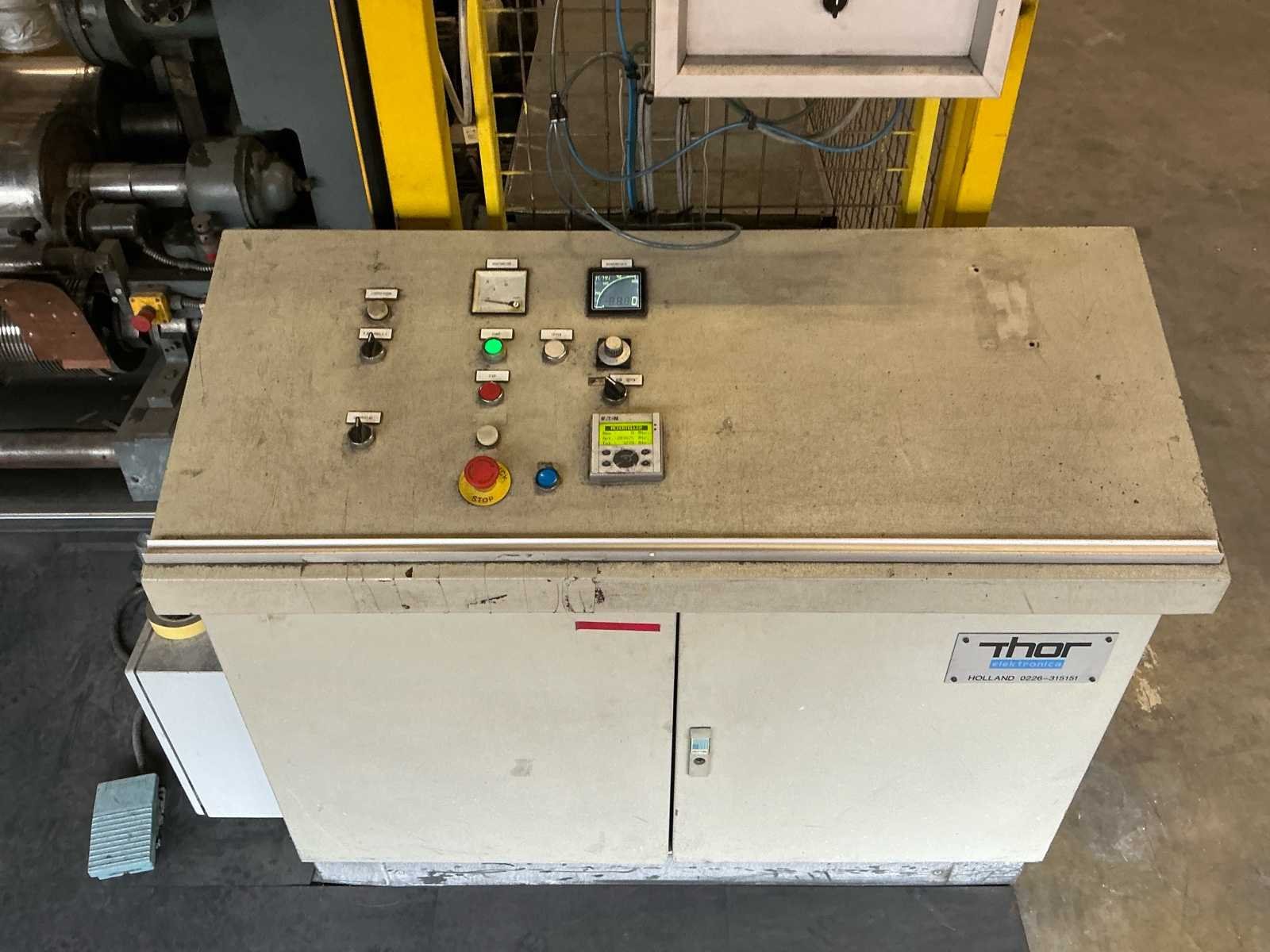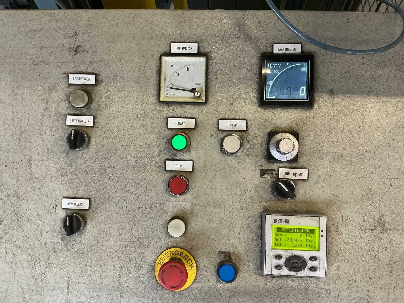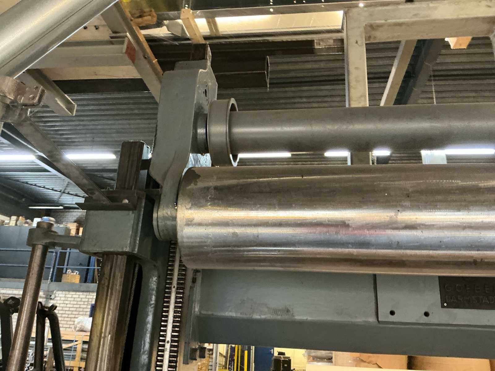 Voorzien van: Lichtscherm, Thor bedieningskast, veiligheid hekken, 3 Ton Hitachi lier incl stalen t profiel balken frame, voetbediening, De Goebel Darmstadt U7M-1600 (bouwjaar 1966) is een zware industriële papierverwerkingsmachine met een werk-/rolbreedte van ca. 1.600 mm, mechanische en hydraulische aandrijving, elektrische motorinstallatie, rollenopname voor grote papierrollen, beveiligde werkzones, een massieve gietstalen constructie, afmetingen van ongeveer 6–7 m lang, 3 m breed en 3–3,6 m hoog. No Merk: Goebel Darmstadt Type: U7M-1600 Bouwjaar: 1966 Serienummer: 6595 Tafel afmeting b: 1600mm Aansluiting: 380V Totale afmeting L: 4000mm Totale afmeting Breedte: 5200mm Totale afmeting Hoogte: 3100mm
