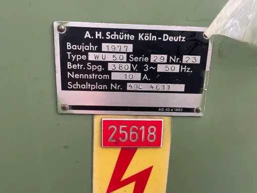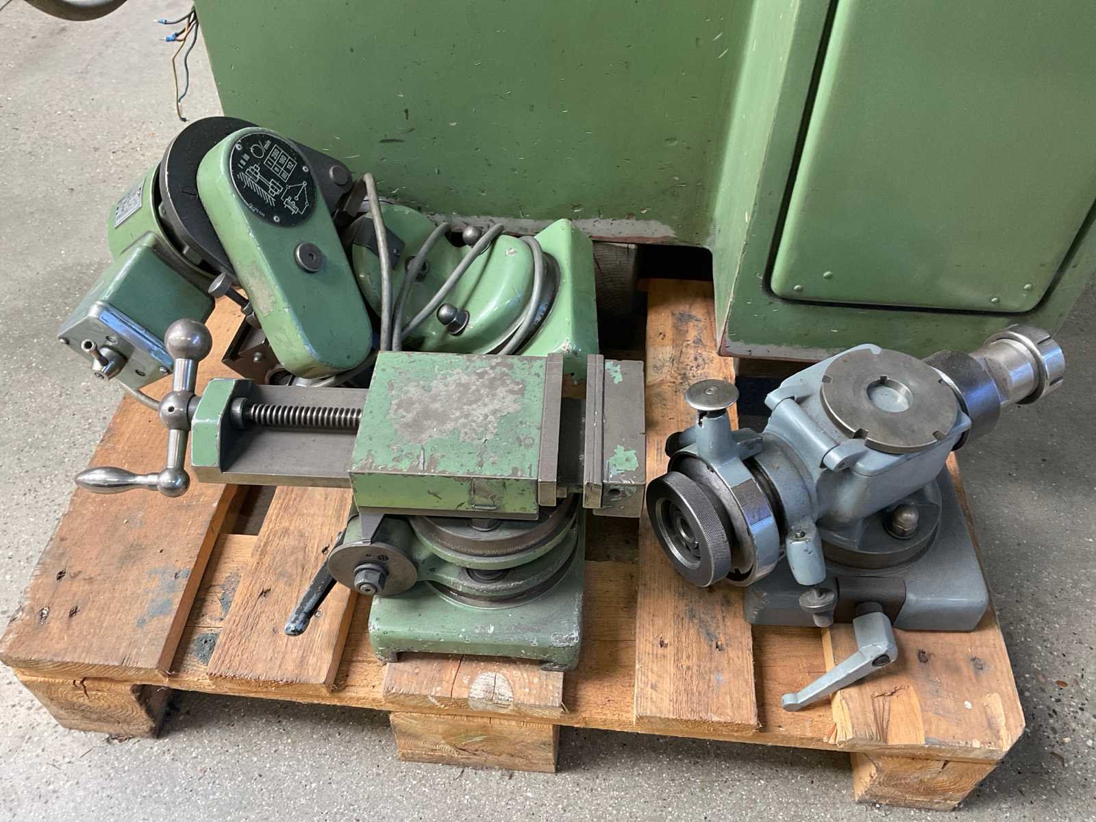 Voorzien van: verdeelschijven (18, 20, 24, 32 en 36), 4x slijpsteen opname, 2x beschermkap, set centers, Nee Merk: Schütte Type: WU 50 Bouwjaar: 1977 Serienummer: 23 Afmeting l: 1400mm Afmeting b: 1330mm Afmeting h: 1650mm