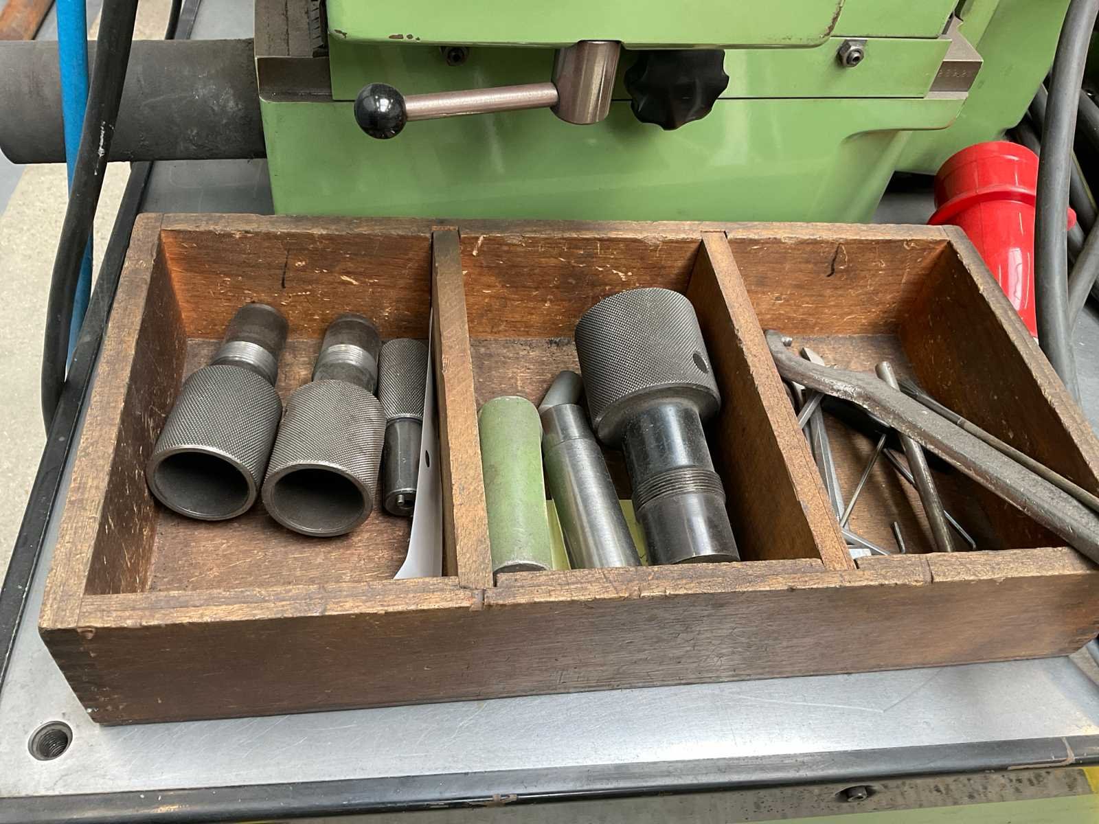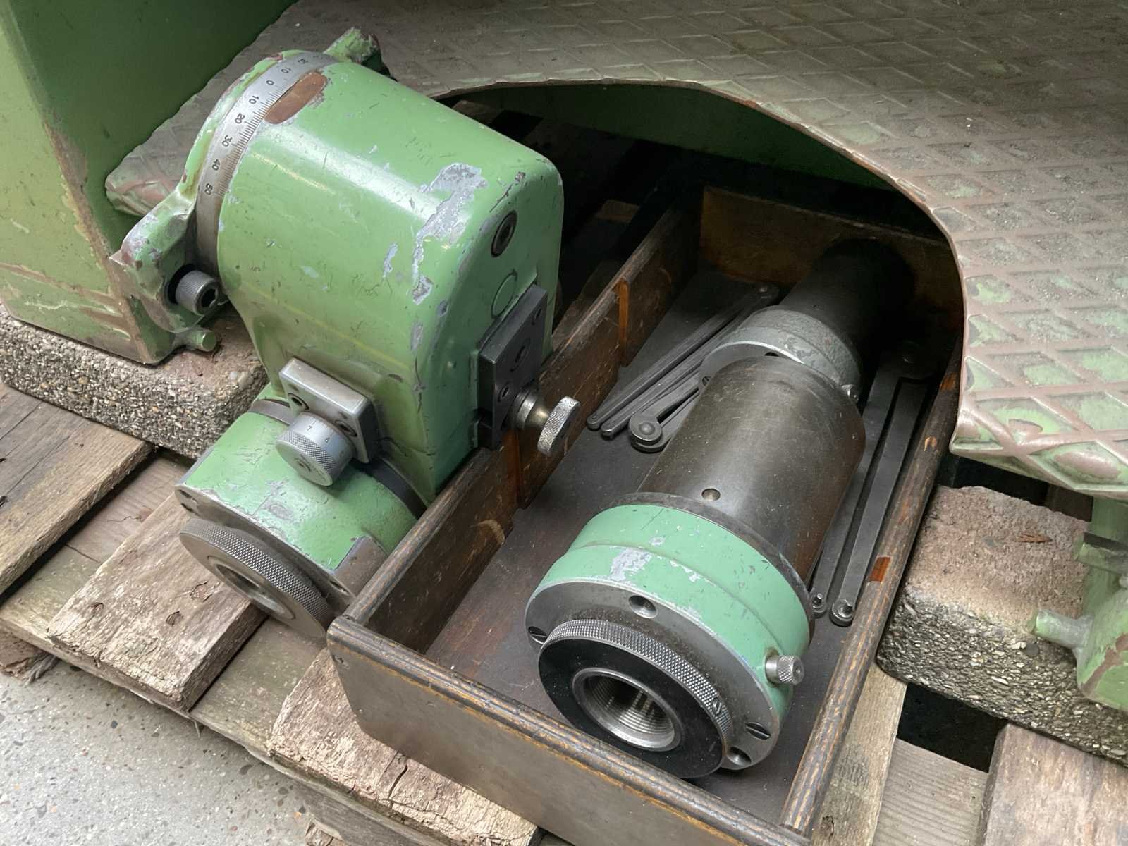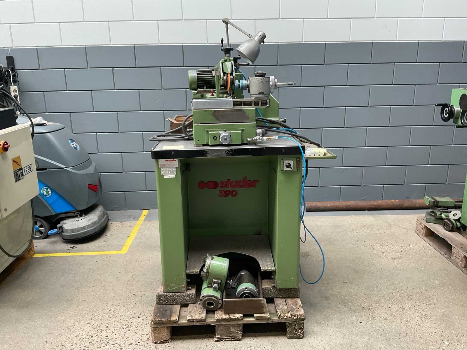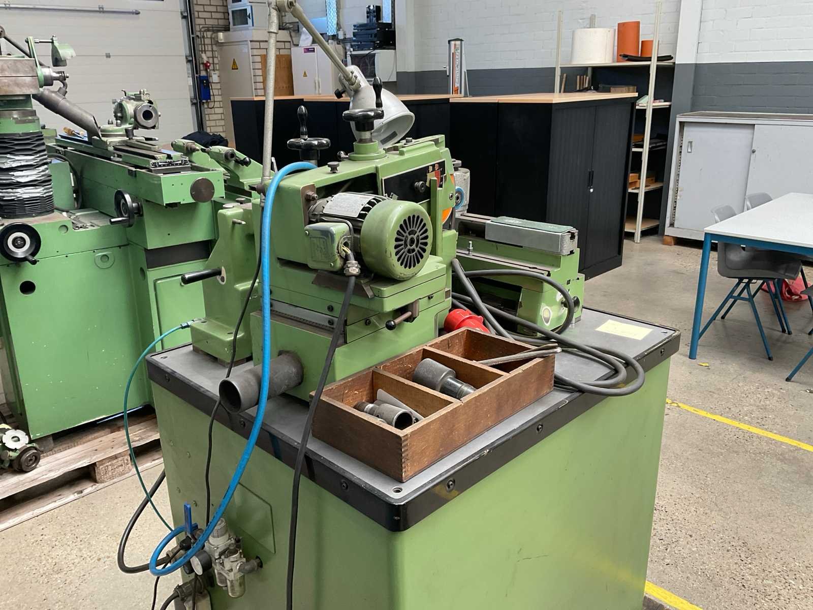 Voorzien van: kast met sjablonen, hulpstukken om tussen de centers te slijpen, 7x kleine slijschijf met opname, 6x grote slijpschijf met opnamen, 1x grote opname zonder steen, 15x steunvinger / tasters bij de slijpschijf, 17x steunvingers / tasters tbv sjabloon, 8x vaste steunvinger, 1x slange opname met ondersteuning tbv hout profielgereedschap Nee Merk: Studer Type: S90 Aansluiting: 400V Afmeting l: 950mm Afmeting b: 950mm Afmeting h: 1500mm