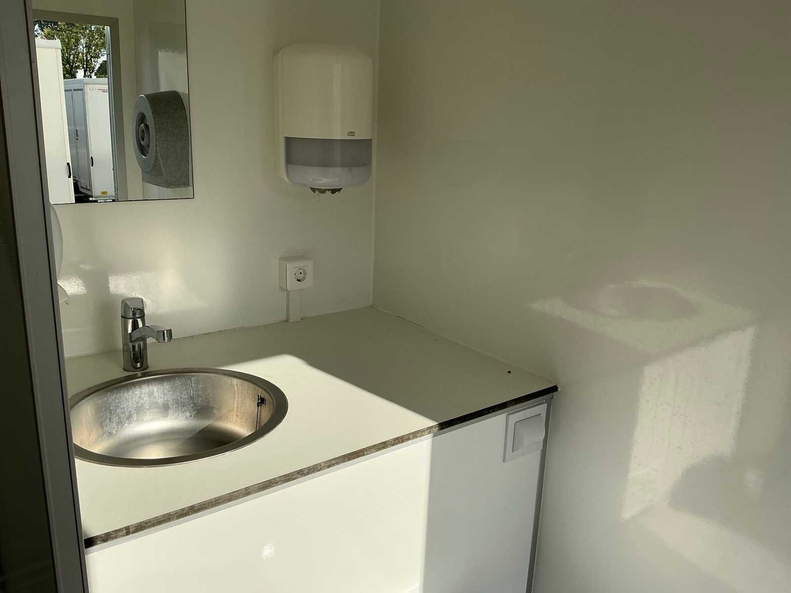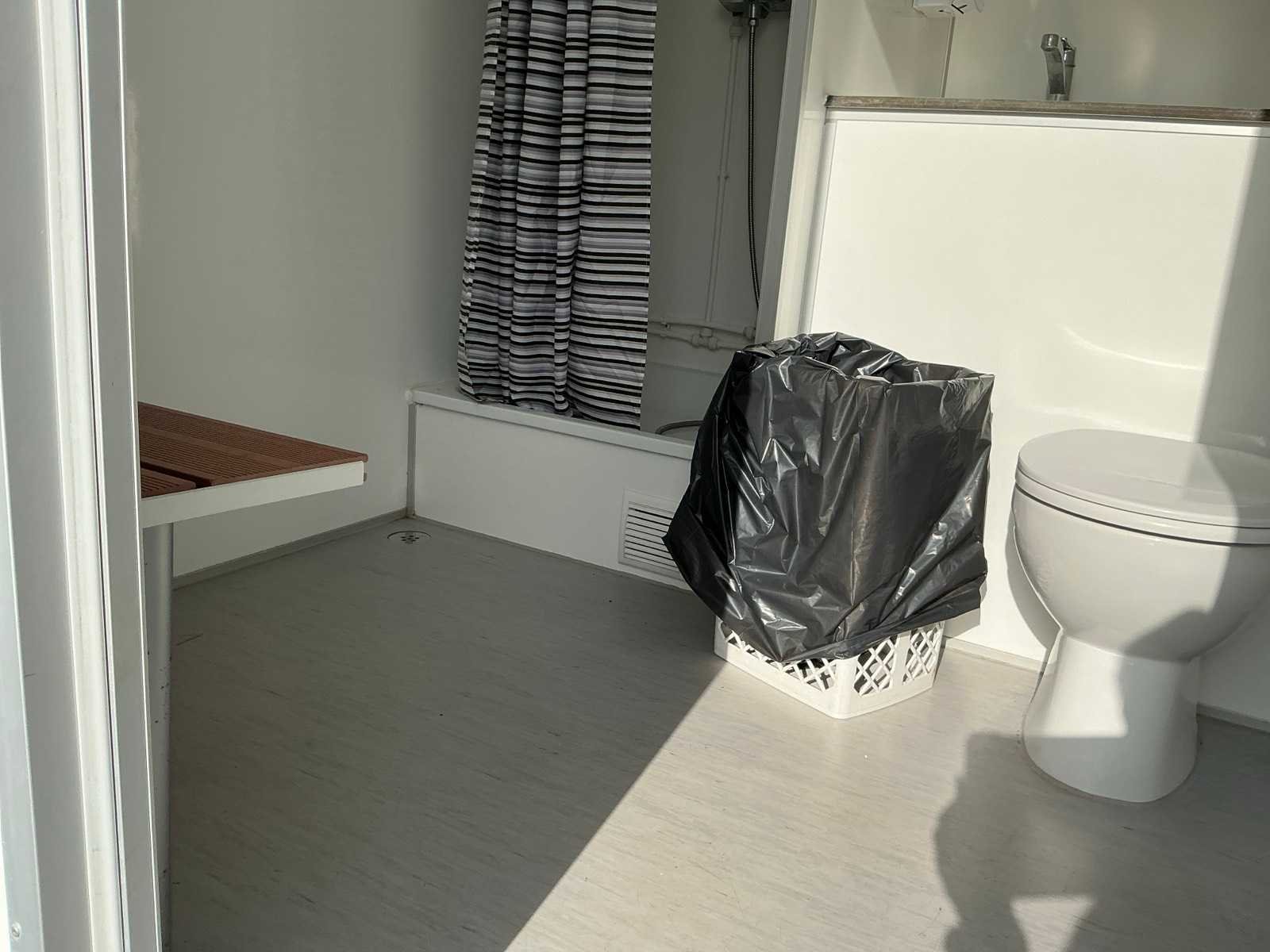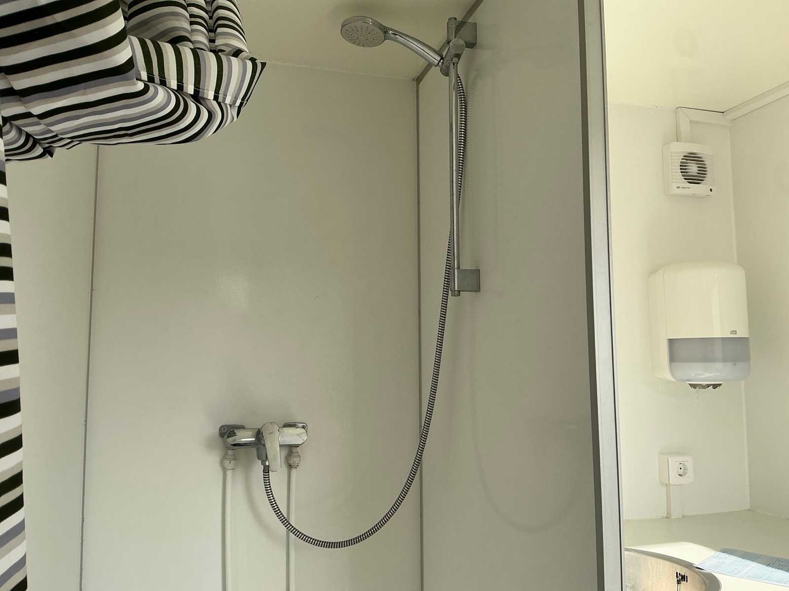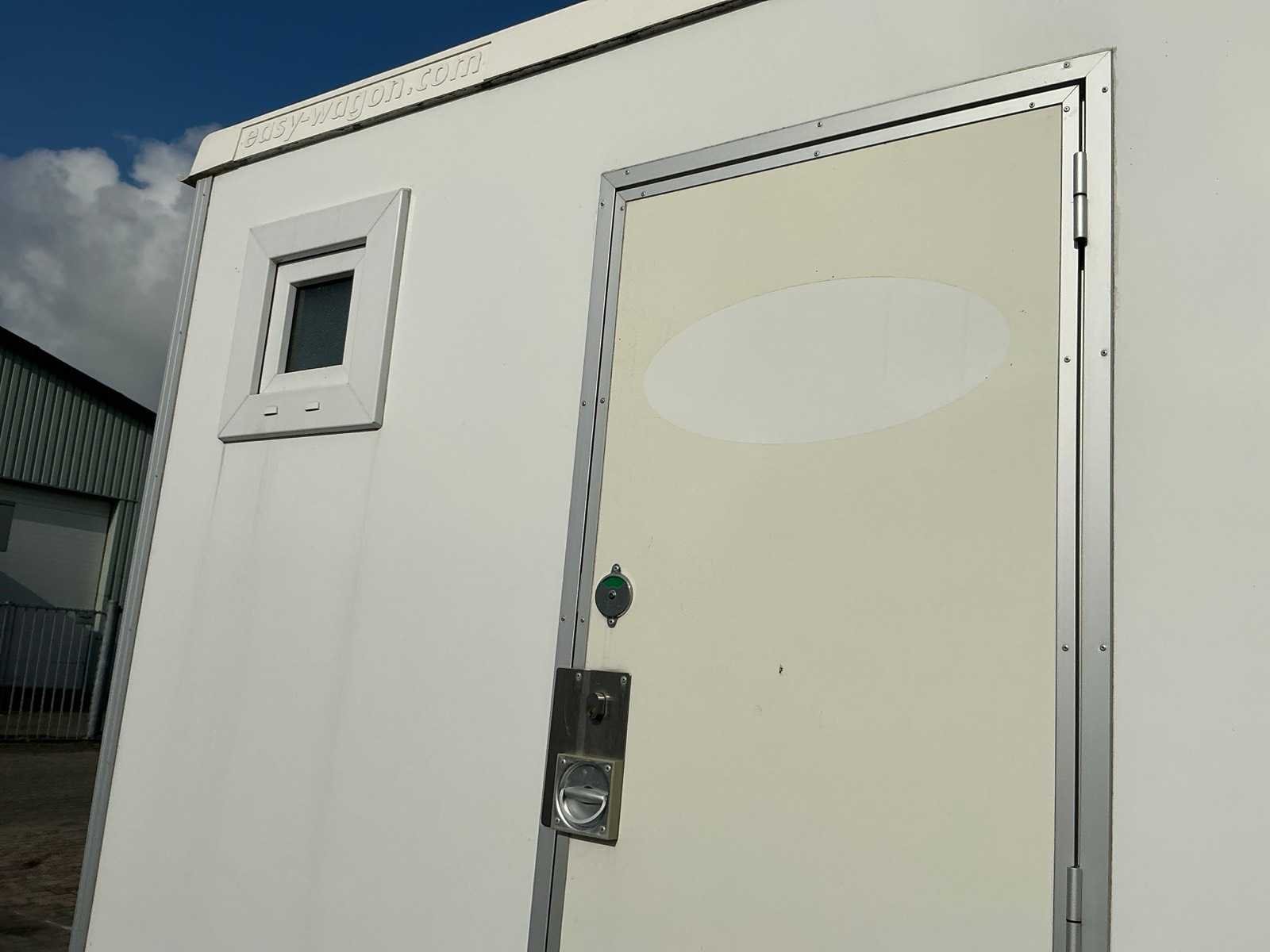 Voorzien van: 3x complete doucheruimte voorzien van toilet met toiletrolhouder vuilnisbak en toiletborstel, wasbak met kraan en spiegel en zeeppompdispenser, bankje, douchebak met douchekraan en gordijn, electrische kachel, verlichting, trapje, technische ruimte per doucheruimte ( 30L boiler, antivrieskachel, spoelbak toilet), aansluiting 1x 110 PVC, 1x 3/4 wateraansluiting, 1x 400V 16A aansluiting, steunpoten Nee Merk: Easywagen Type: 660 Bouwjaar: 2018 Afmeting l: 6600mm Afmeting b: 2500mm Afmeting h: 2900mm Aantal ramen: 3 Aantal toiletten: 3 Aantal wastafels: 3 Aantal douches: 3 Eigen gewicht: 2000kg