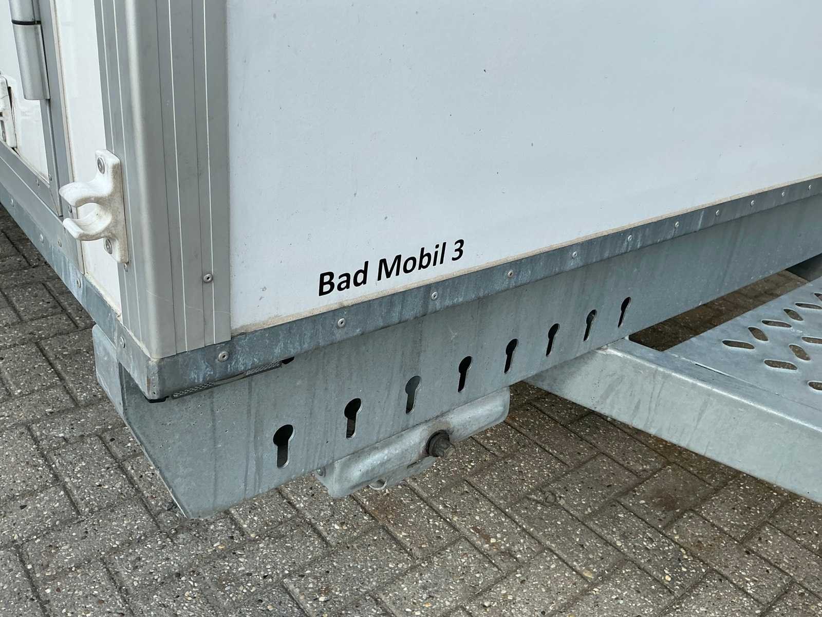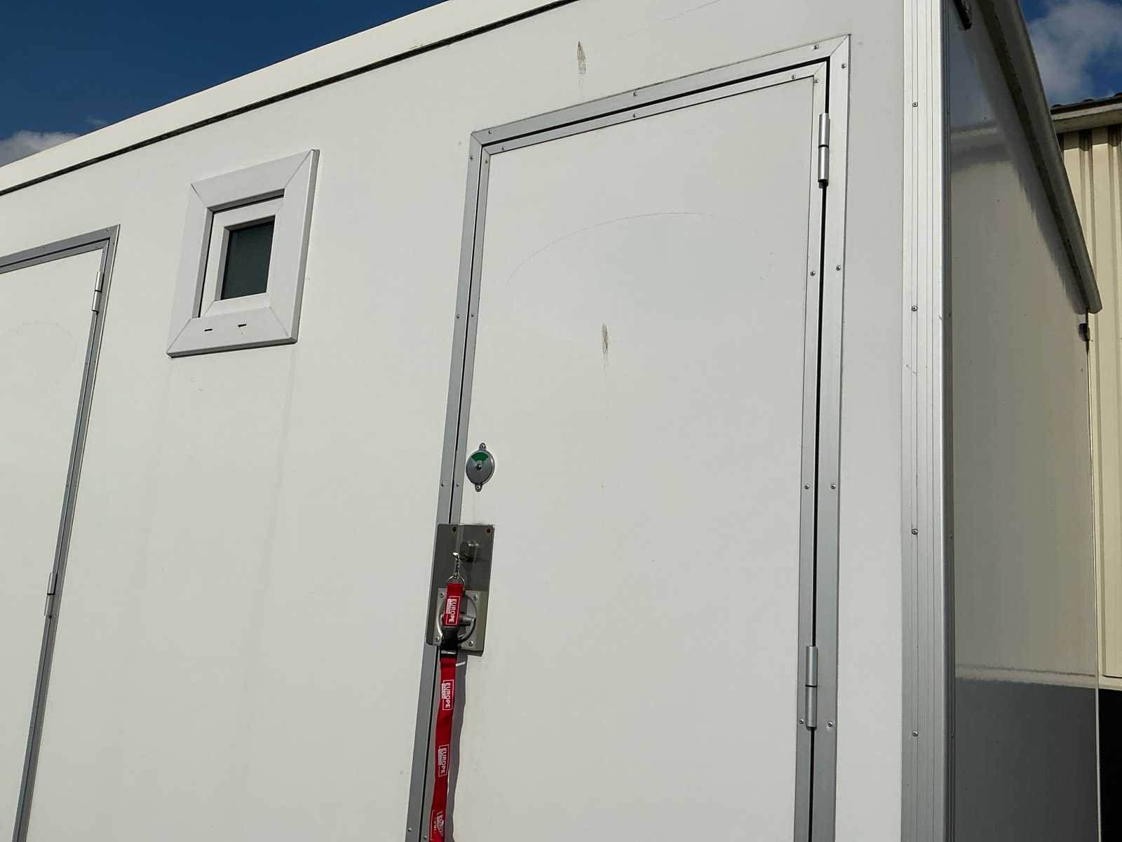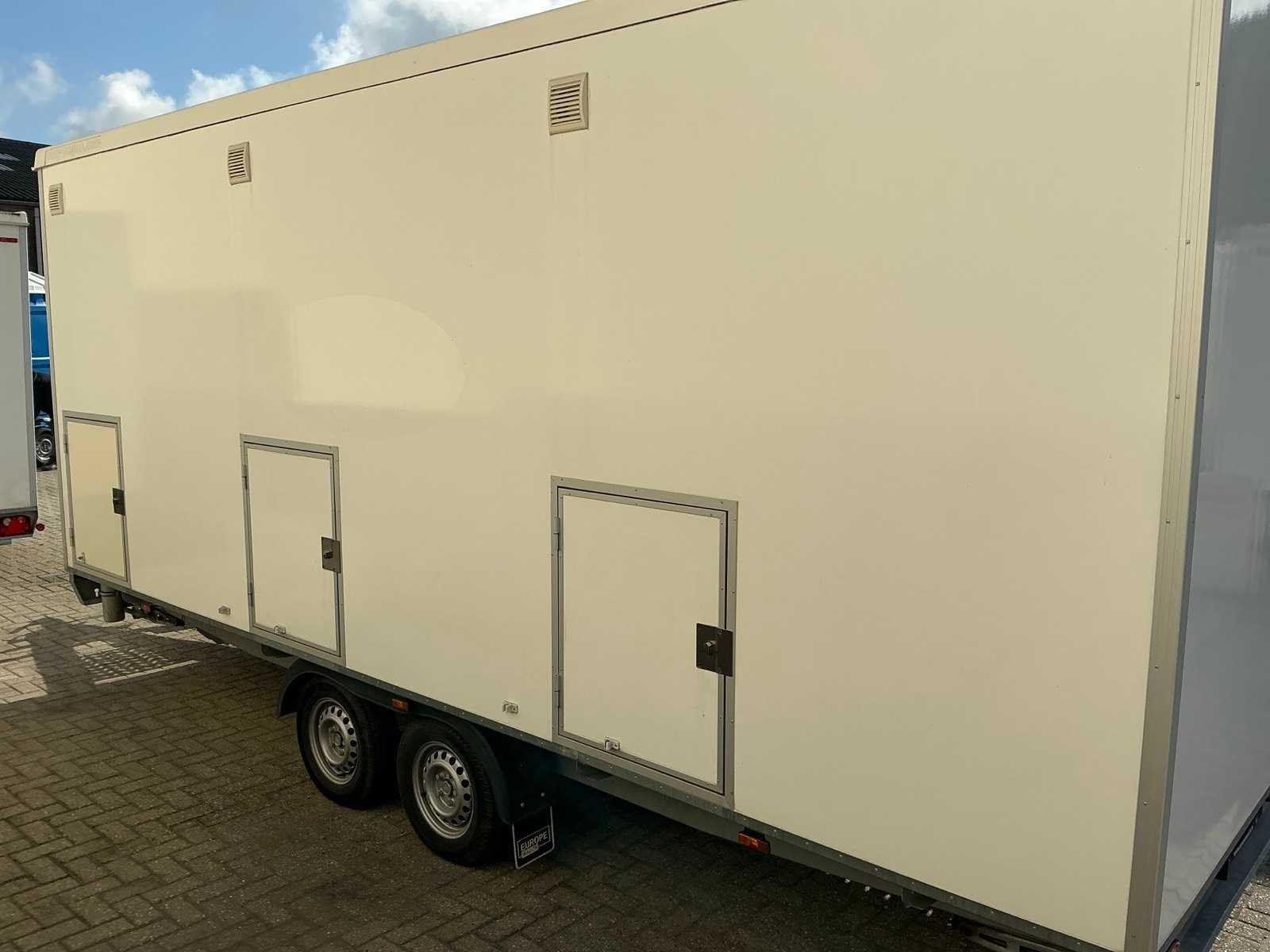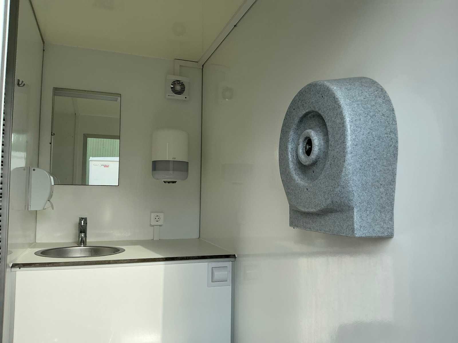 Voorzien van: 3x complete doucheruimte voorzien van toilet met toiletrolhouder vuilnisbak en toiletborstel, wasbak met kraan en spiegel en zeeppompdispenser, bankje, douchebak met douchekraan en gordijn, electrische kachel, verlichting, trapje, technische ruimte per doucheruimte ( 30L boiler, antivrieskachel, spoelbak toilet), aansluiting 1x 110 PVC, 1x 3/4 wateraansluiting, 1x 400V 16A aansluiting, steunpoten Nee Merk: Easywagen Type: 660 Bouwjaar: 2018 Afmeting l: 6600mm Afmeting b: 2500mm Afmeting h: 2900mm Aantal ramen: 3 Aantal toiletten: 3 Aantal wastafels: 3 Aantal douches: 3 Eigen gewicht: 2000kg