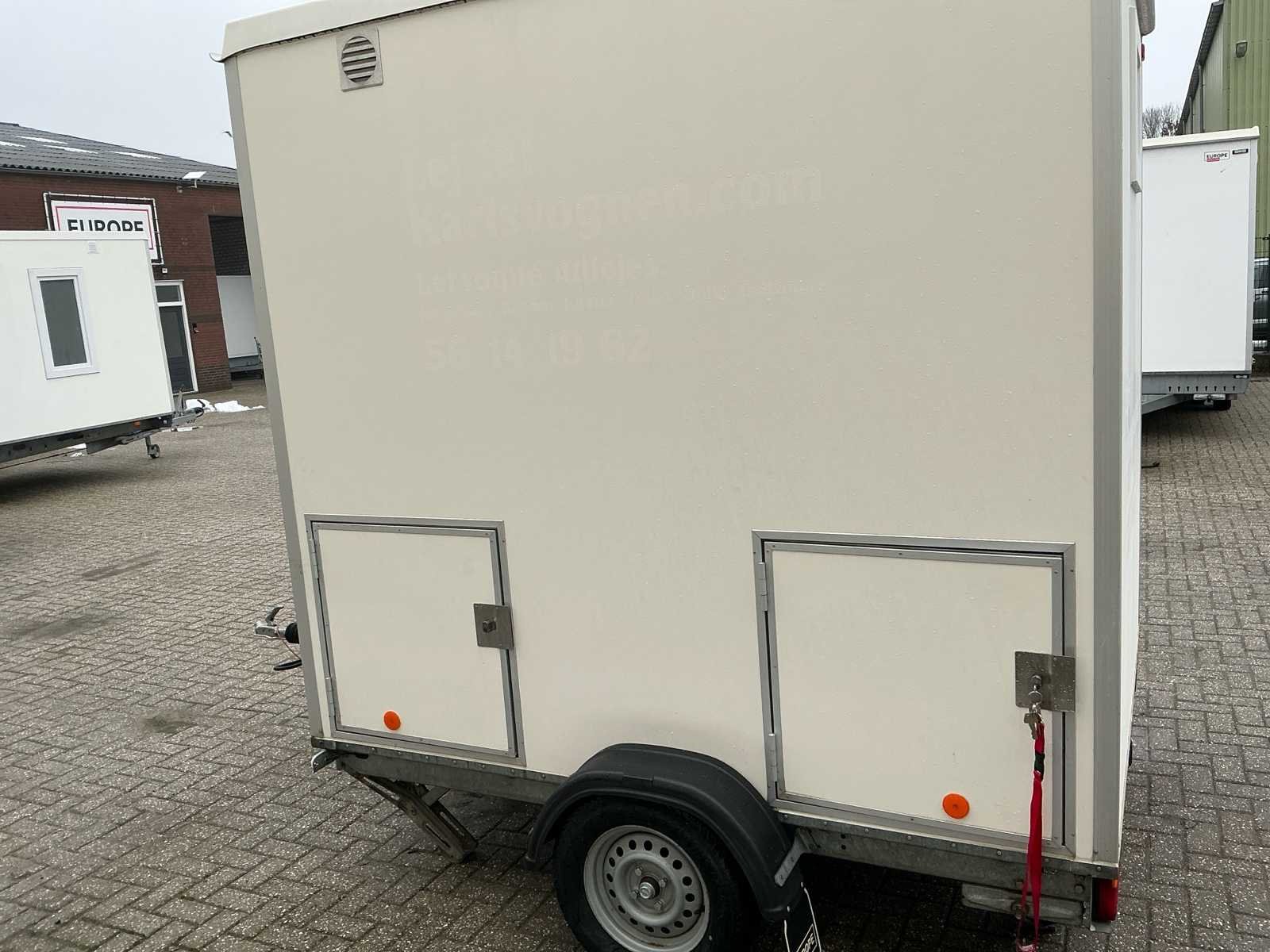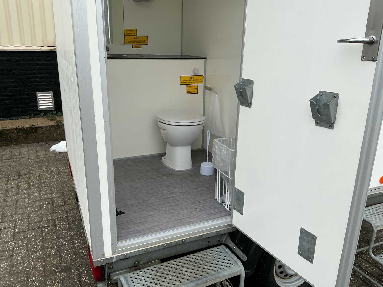 Voorzien van: per unit toilet, wcrolhouder, raam, papierrolhouder, wastafel met thermostaatkraan, ophanghaakjes, afvalbak, verlichting, buitenverlichting, verlichting op aanhanger, opstaptreden, trekhaakkoppeling, neuswiel, handrem, boiler, slot, verloopsnoer, steunpoten, spiegel, electrische kachel, sleutels Nee Merk: Europewagon Type: Dubbele toiletunit Afmeting l: 2450mm Afmeting b: 2150mm Afmeting h: 2100mm Aantal ramen: 2 Aantal toiletten: 2 Aantal wastafels: 2 Totale afmeting L: 3540mm Totale afmeting Breedte: 2150mm Totale afmeting Hoogte: 2700mm