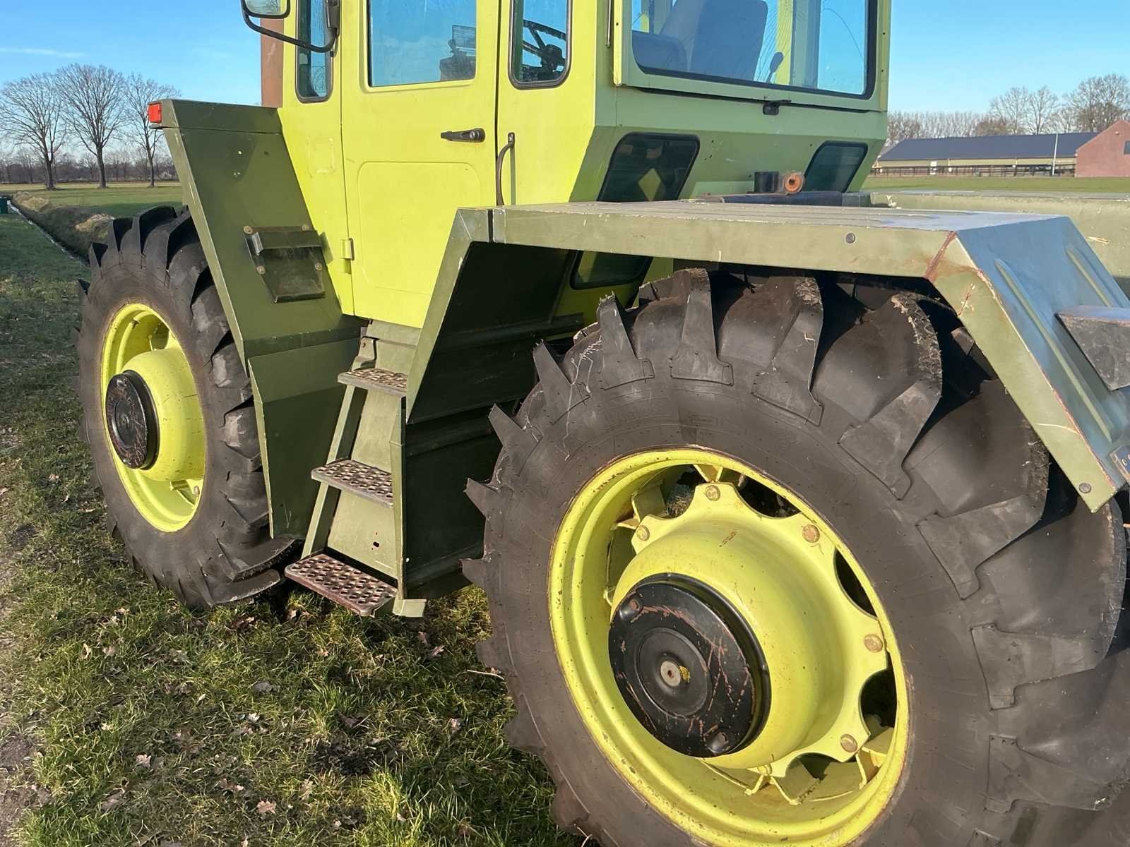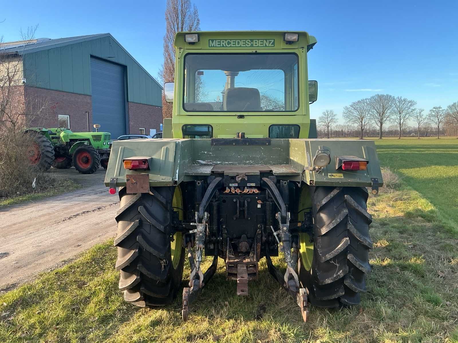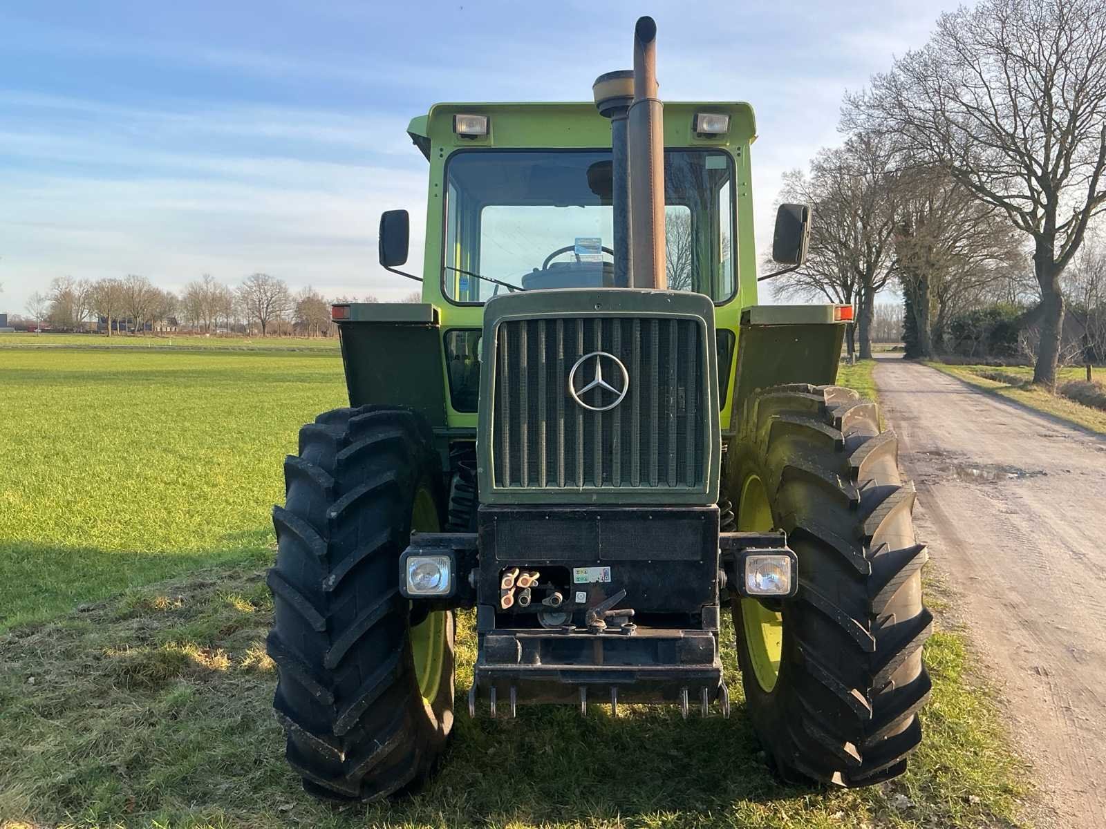 Aandrijving: 4×4, portaalassen, Motor, Type: Mercedes-Benz OM366A (turbo), Cilinders: 6-cilinder lijn, Cilinderinhoud: ± 6,0 liter, Vermogen: circa 136–140 pk, Brandstof: Diesel, Koeling: Watergekoeld, Versnellingsbak: Mercedes handgeschakeld, Versnellingen: 16 vooruit / 8 achteruit (met groepen), Maximale snelheid: tot 40 km/u, Aftakas (PTO): 540 / 1000 t/min, Hydrauliekopbrengst: circa: 45–55 l/min, Hefvermogen achter: ± 6.500–7.000 kg Nee Merk: Mercedes-Benz Type: MB Trac 1400 Turbo Bouwjaar: 1989 Kenteken: GEEN Motorvermogen (kW): 103kW Afgelezen urenstand: 7270 Versnellingsbaktype: Handgeschakeld Aantal hydraulische ventielen voor: 3 Aantal hydraulische ventielen achter: 3 Bandenmaat voor: 18.4 R34 Bandenmaat achter: 18.4 R34 Cabine: true Luchtgeveerde stoel: true Eigen gewicht: 7200kg Totale afmeting L: 4500mm Totale afmeting Breedte: 2450mm Totale afmeting Hoogte: 2900mm Chassisnummer: WB4431644 151047