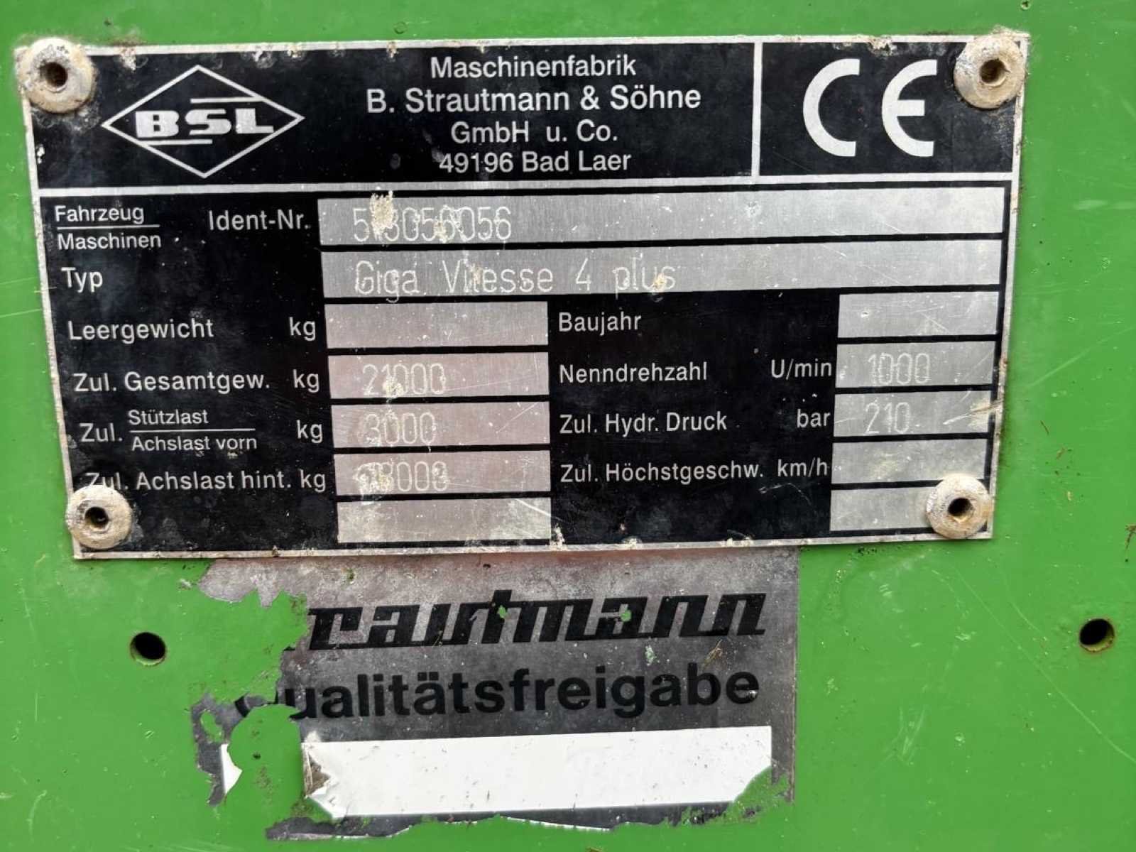 Nee Merk: Strautmann Type: Giga Vitesse 4 Plus Bouwjaar: 2006 Serienummer: 513056056 Kenteken: LFT-43-G Bandenmaat: Vredestein 710/50 R26.5 imp Eigen gewicht: 21000