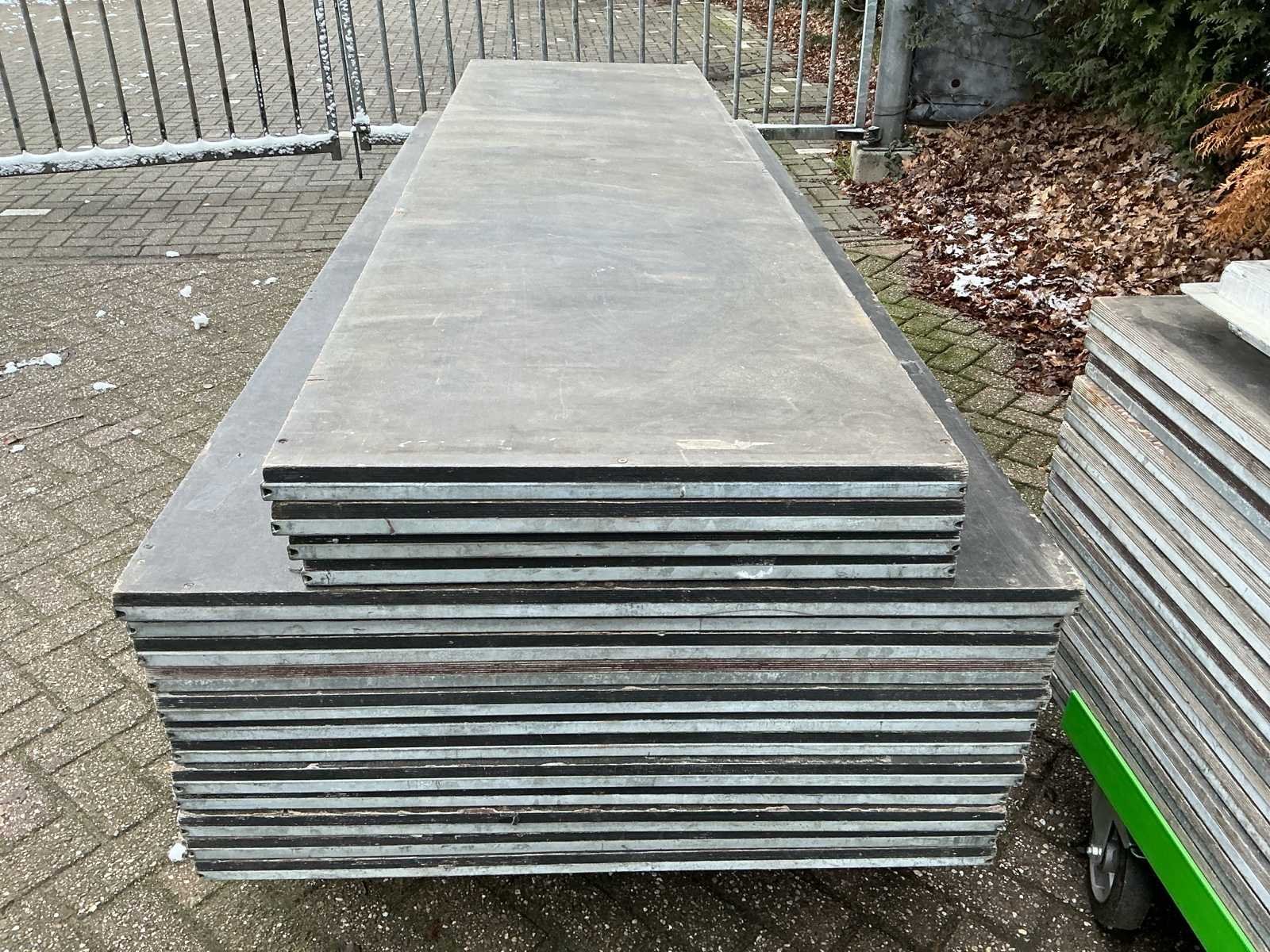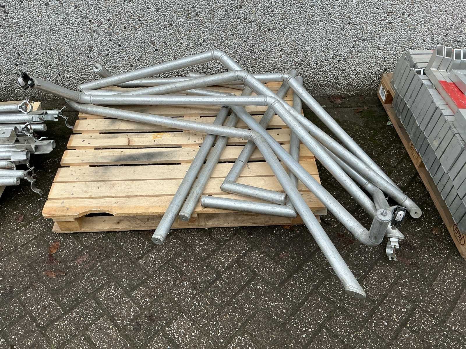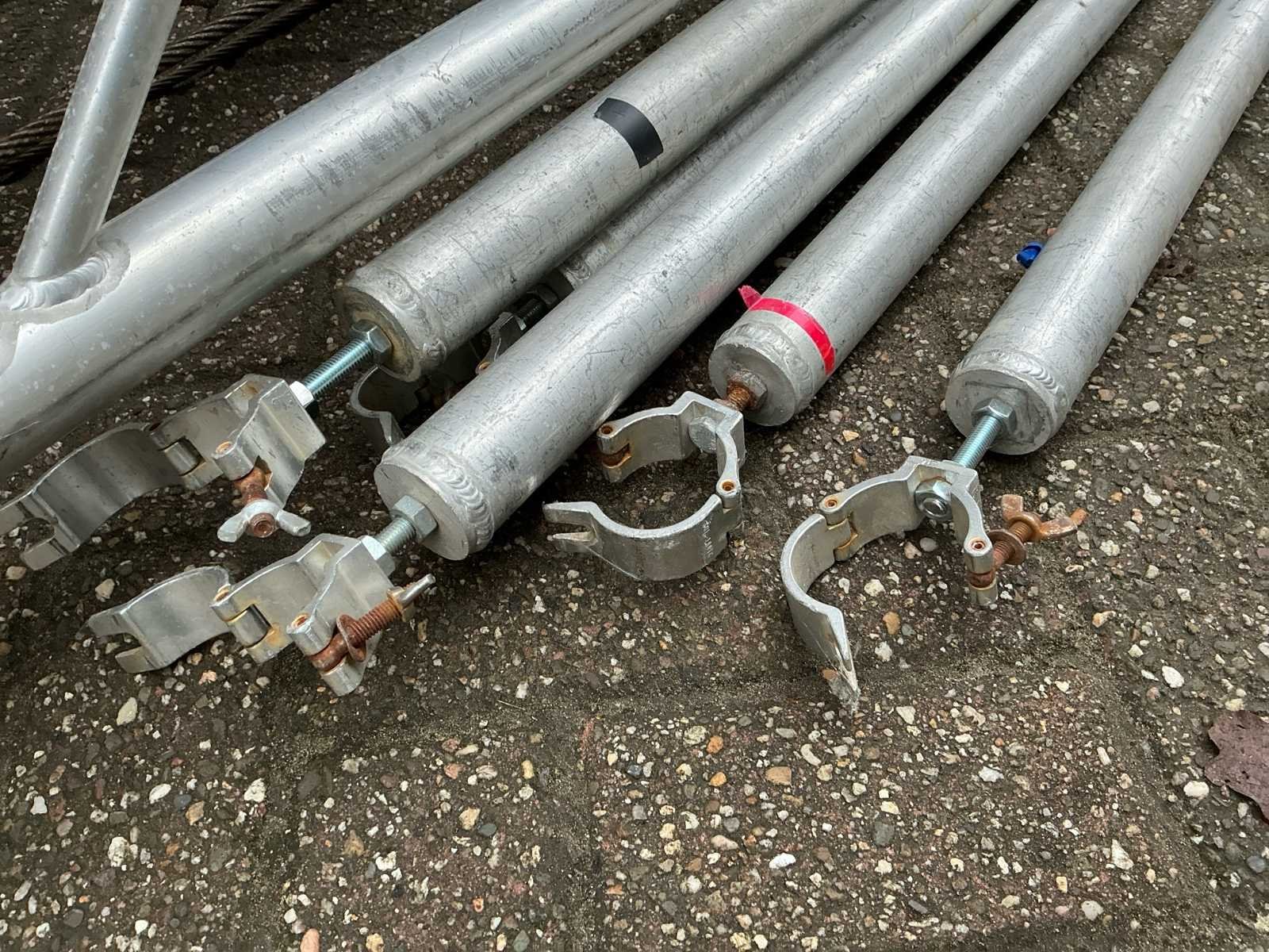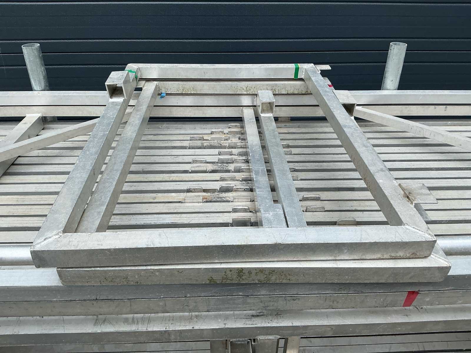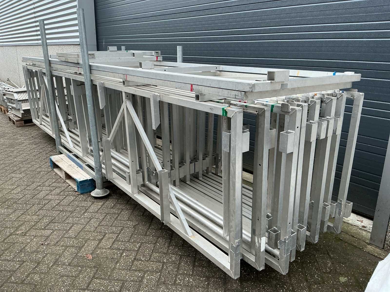 Voorzien van: opbergrekken, verhoogde vloer (100cm hoog), 2x trap, complete railing, 4x truss tower met lier voor dak omhoog te hijsen, 6x Truss (5 meter), 6x Truss ( 2,5 meter), 4x T-stuk, 1 x kruisstuk, 2x zeilenpakket, 28x vloerdeel (2,5m x 1m), 4x vloerdeel (67cm x 250cm), 4 passtuk, diverse koppelstukken vloer, complete set voor opbouwen podium Nee Merk: Global Truss Type: Aluminium Opbouw Aluminium poten lengte: 1000mm Totale afmeting L: 11000mm Totale afmeting Breedte: 7000mm Totale afmeting Hoogte: 5500mm