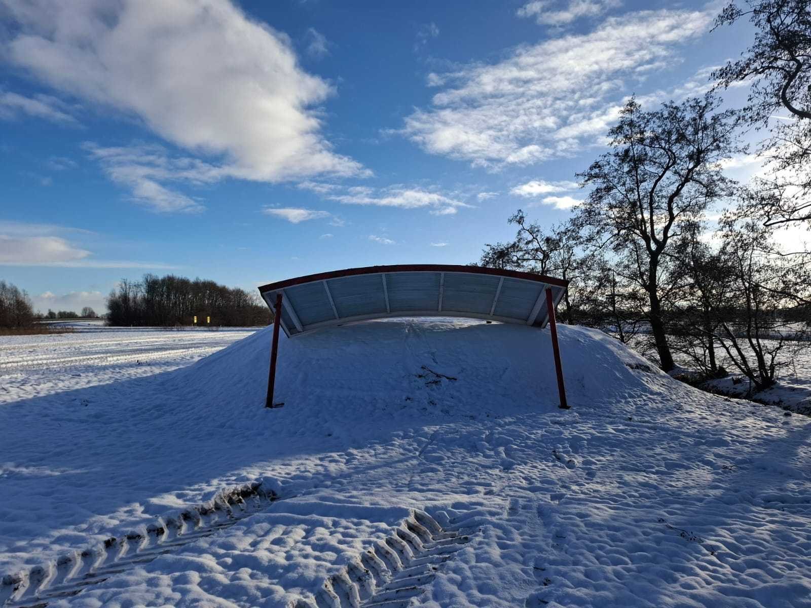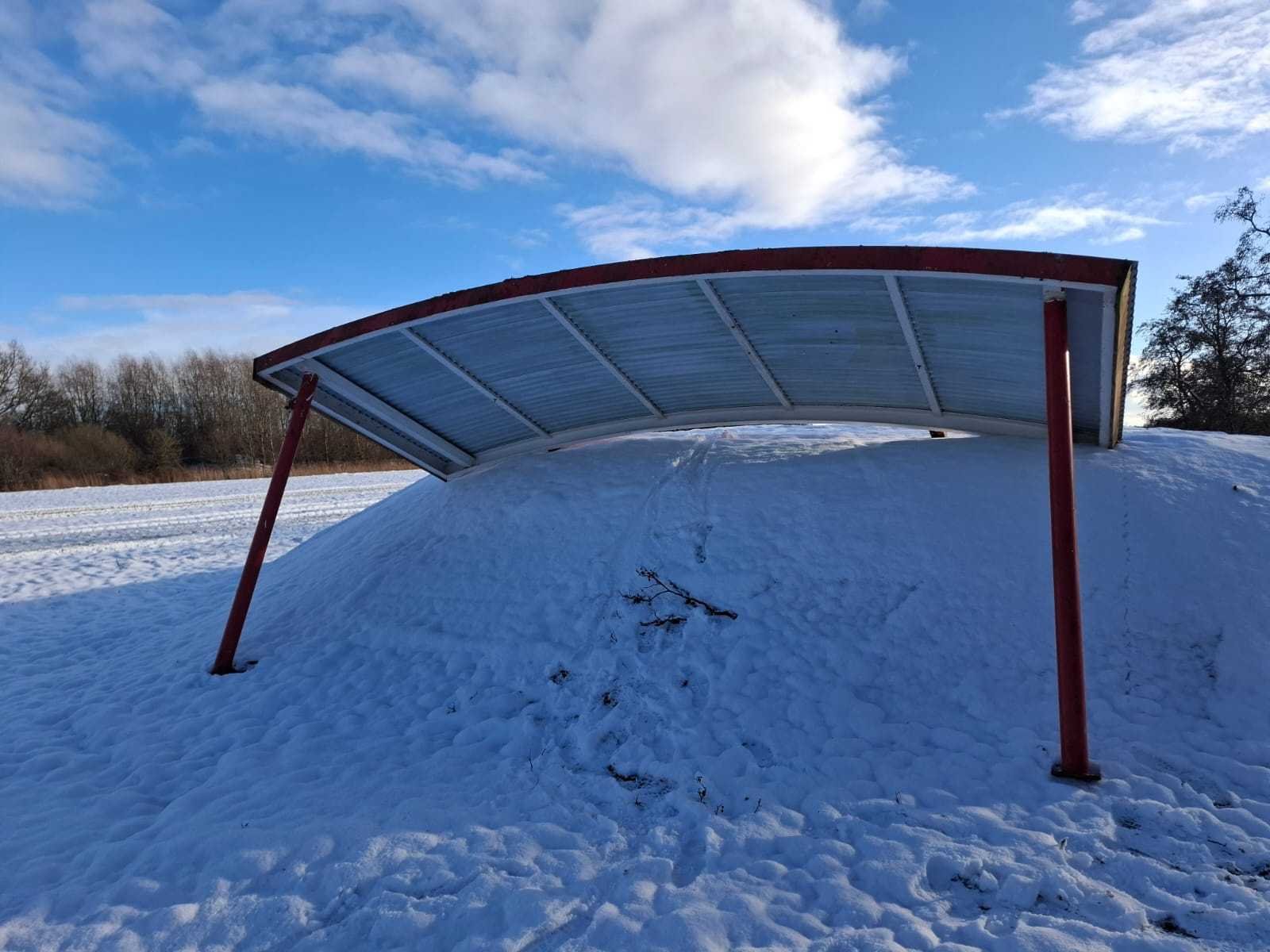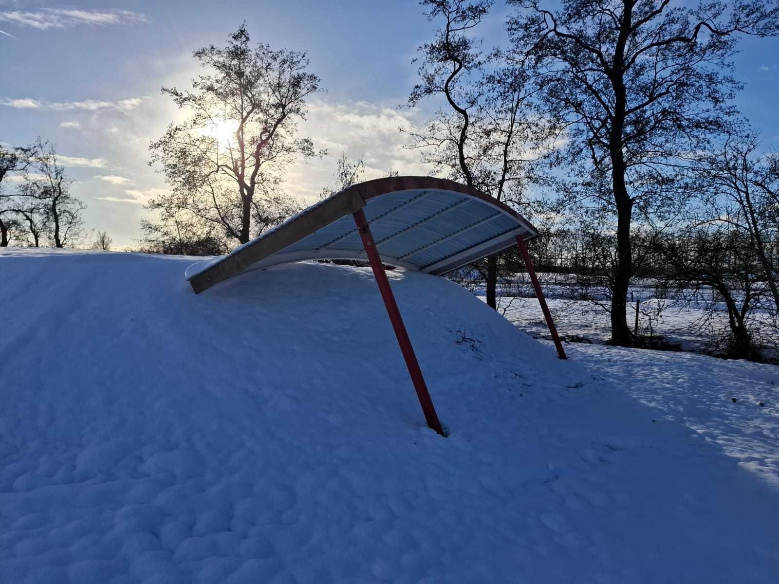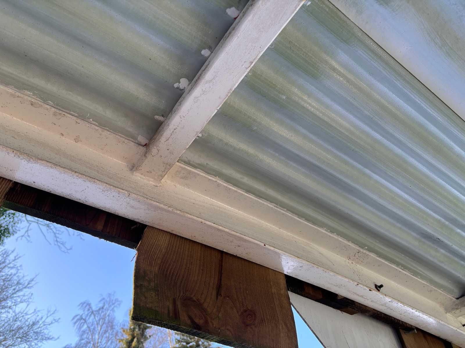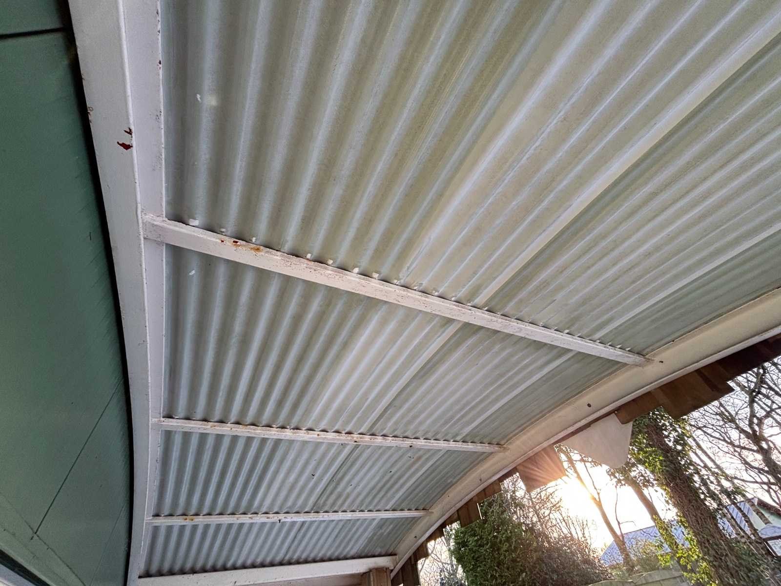 Voorzien van gebogen dak, entree-overkapping, half-vrijstaand, staal, let op! houtdelen niet inbegrepen (zie foto's), laadmogelijkheden beschikbaar Nee Lengte: 550cm Breedte: 225cm Hoogte: 250cm Materiaal: Staal