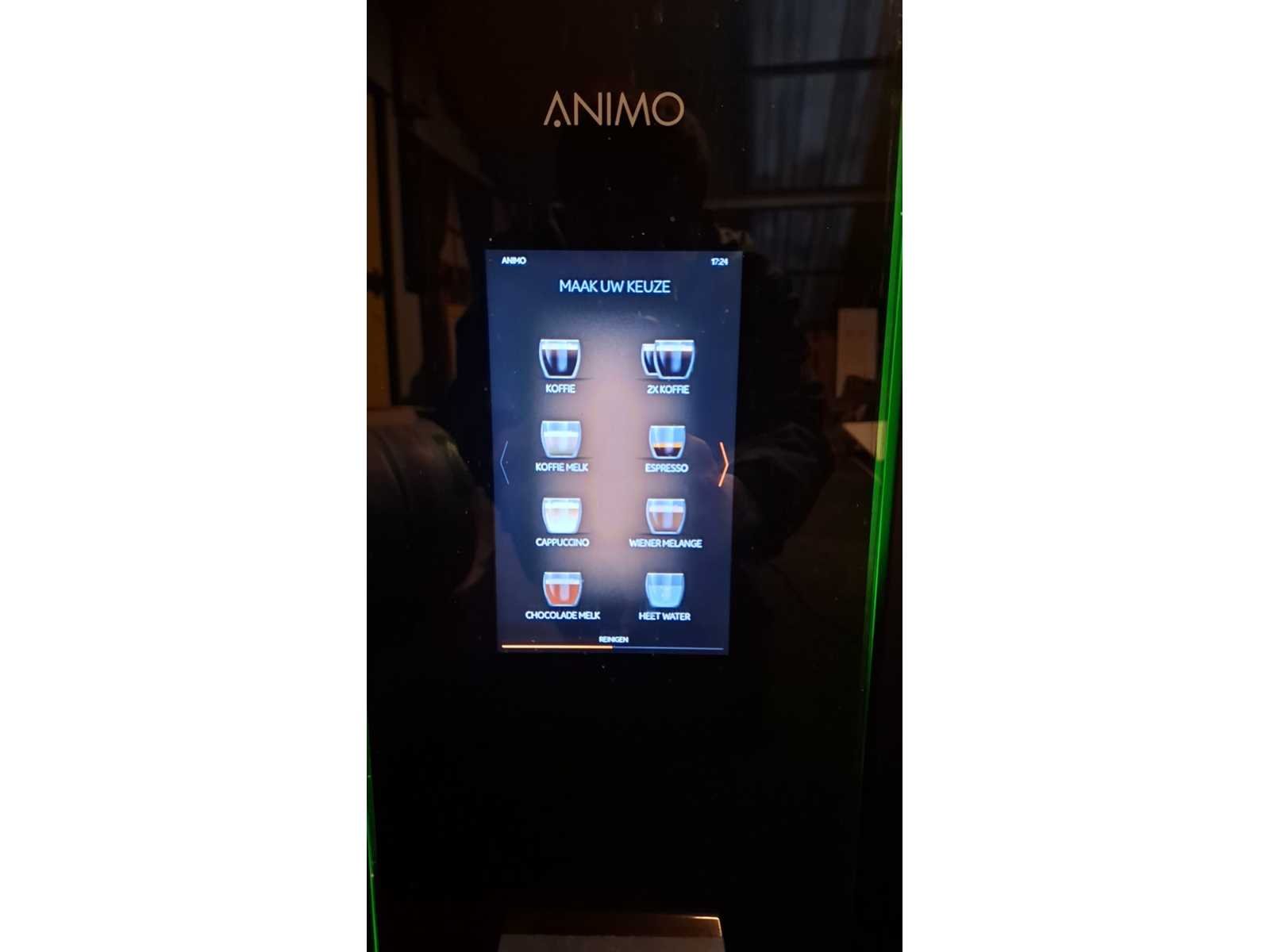 Animo OptiBean 4 Touch Zwart – Professionele koffiemachine <strong>Specificaties:</strong> Merk: Animo Model: OptiBean 4 Touch Type: Professionele koffiebonenmachine Bediening: 7" touchscreen Aantal canisters: 4 Capaciteit: Tot ca. 120 drankjes per uur Wateraansluiting: Vaste wateraansluiting (¾") Maalwerk: Keramische schijven Netspanning: 220–240 V / 50–60 Hz Vermogen: ca. 2275 W Afmetingen (H x B x D): ca. 792 x 409 x 565 mm Geschikt voor: Kantoor, kantine en professionele koffieomgevingen <strong>Voorzien van:</strong> Meerkeuze koffiesysteem Touchscreen bediening Geschikt voor verse koffiebonen Geschikt voor meerdere drankvarianten Aparte heetwateruitloop (thee) Automatische reinigingsprogramma’s Professionele zetgroep Nee Merk: Animo Type: Optibean 4 Touch Aansluiting: 230V Digitale uitlezing: true