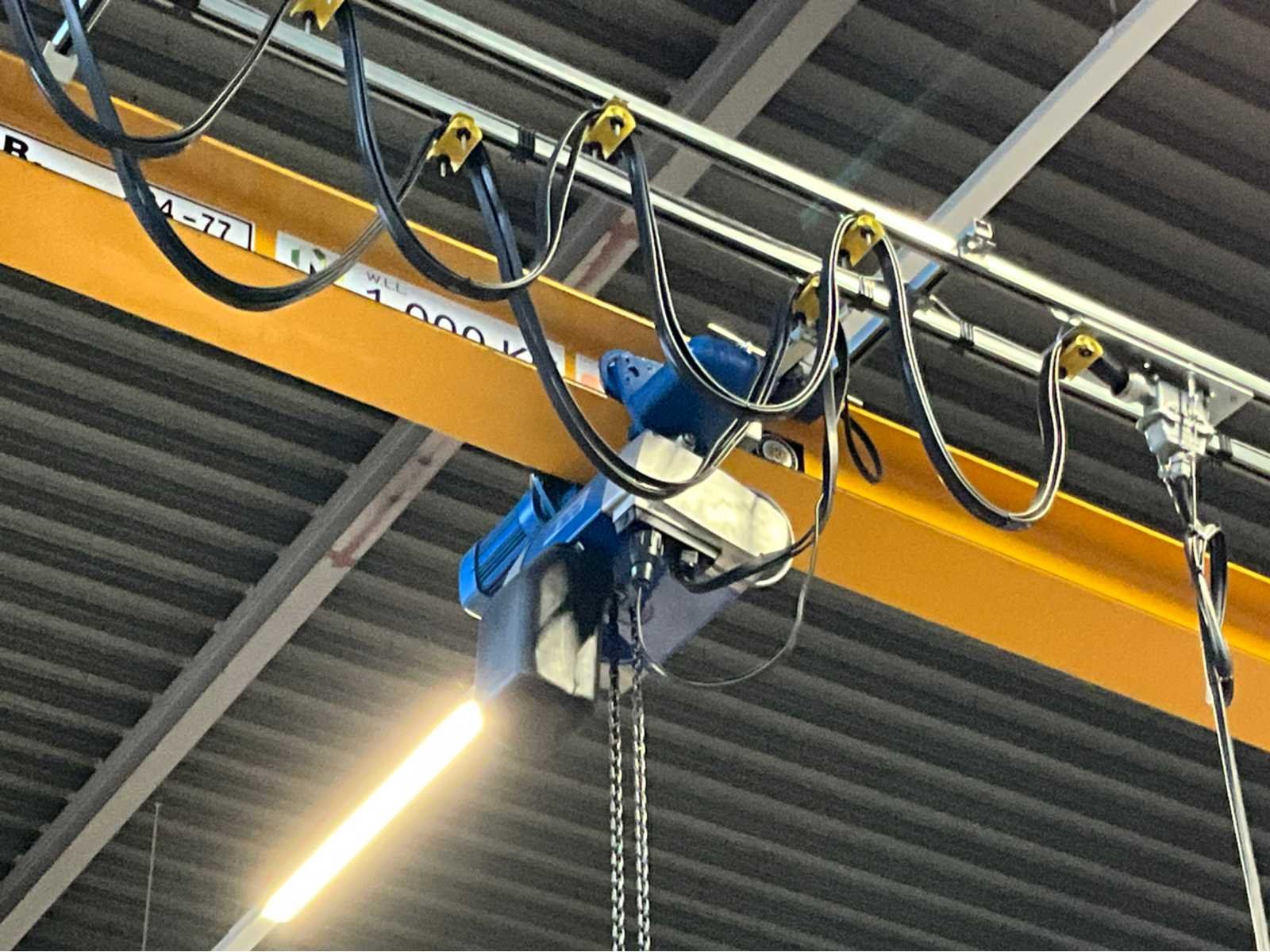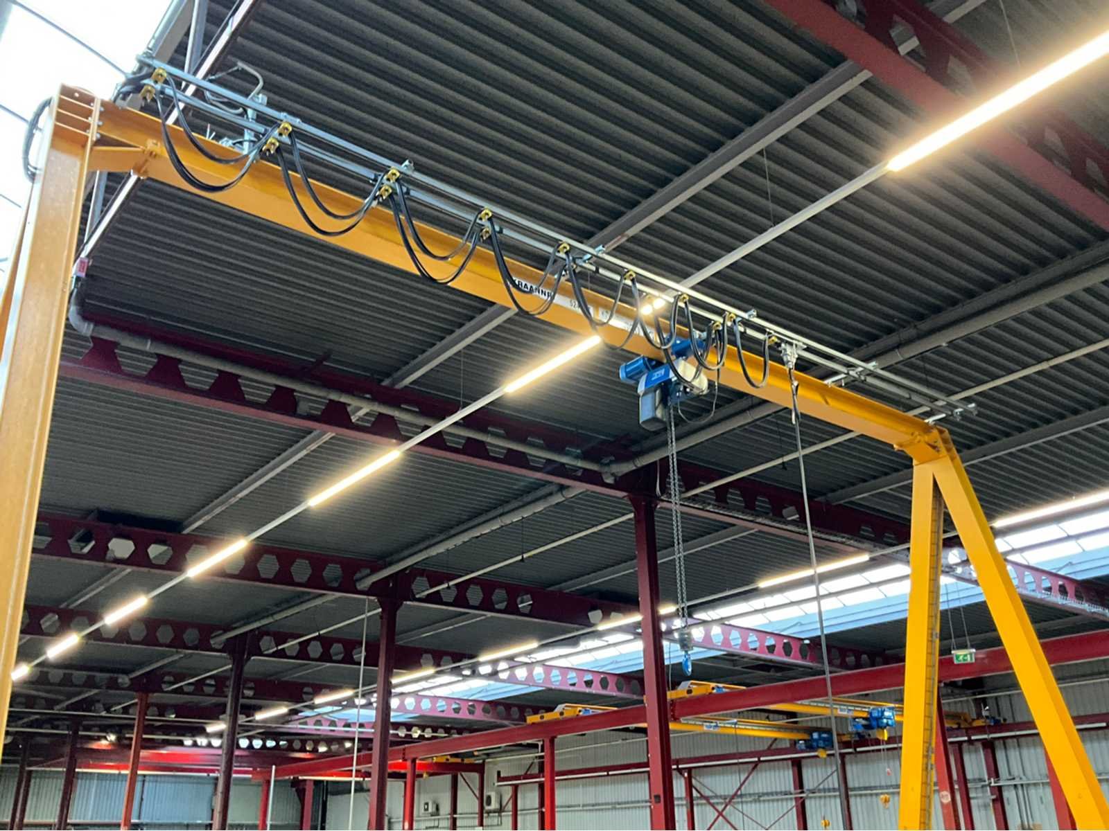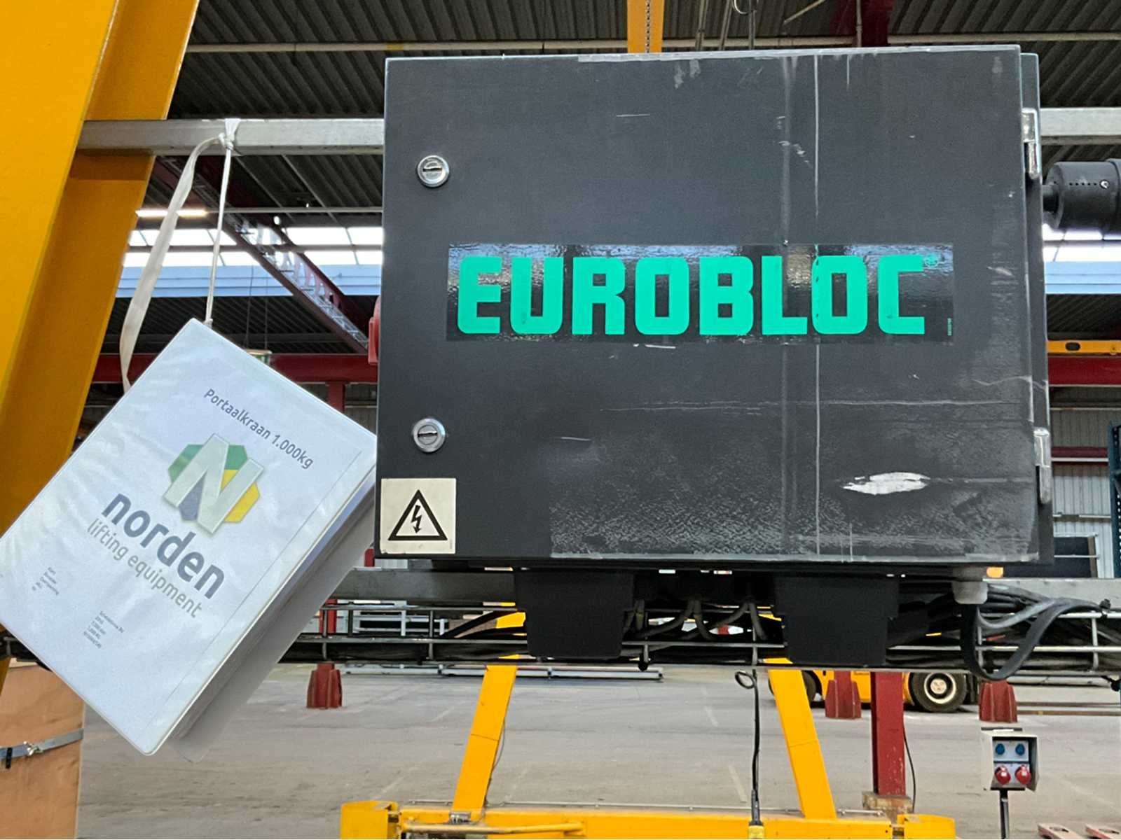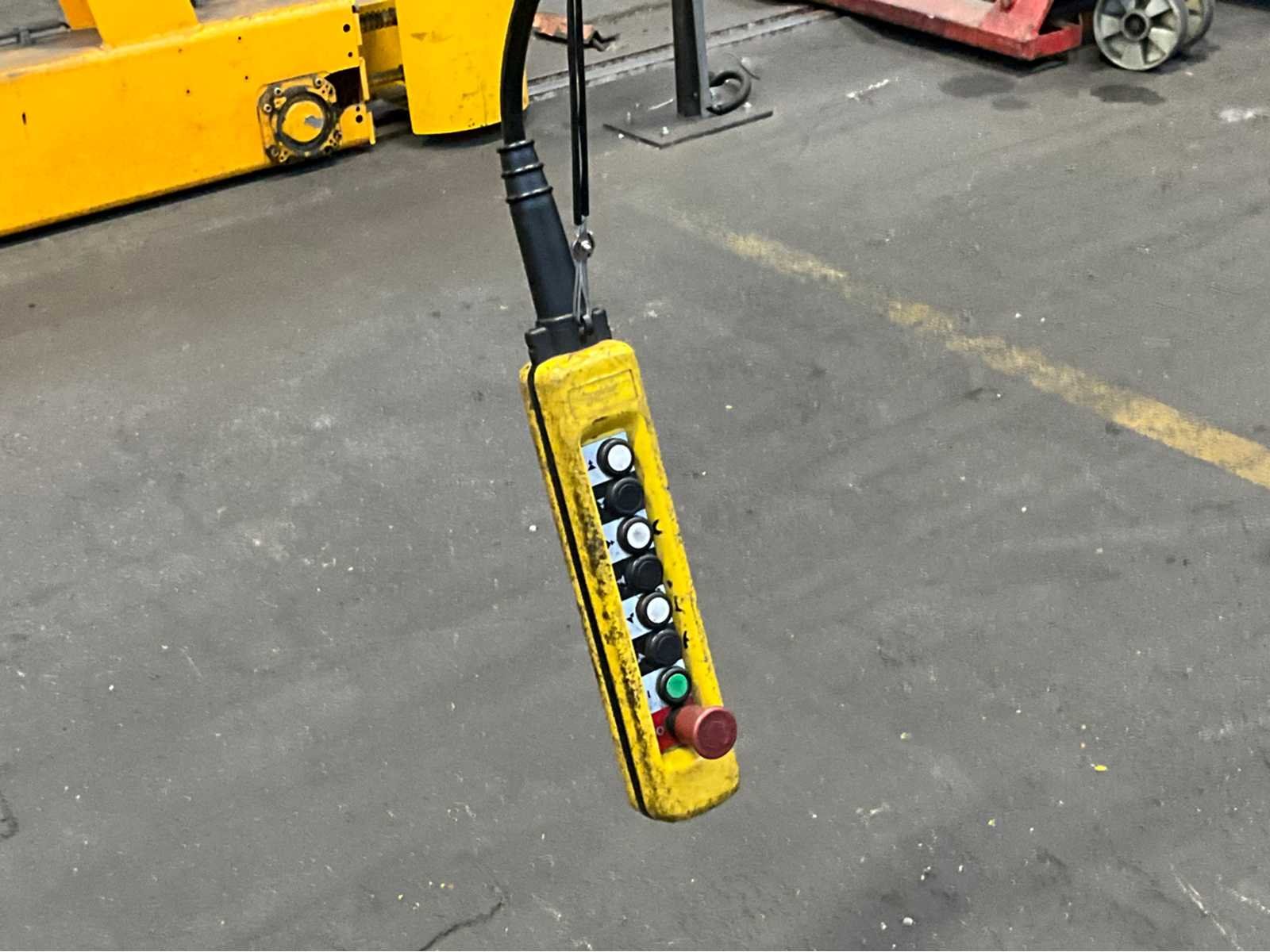 Zelfrijdende portaalkraan; demontabel (geschroefd); rijdend over spoor; zonder spoor; voorzien van Abus (Bj. 2012) elektrisch rijdende kettingtakel capaciteit 1000 Kg; draadbediend; voorzien van aanrijdbeveiliging; breedte over de sporen 7050 mm; wiel afstand 2700 mm; elektro schakelkast; kraanboek; Nee Merk: Norden / Verlinde Bouwjaar: 2015 Serienummer: 524-77 Overspanning: 6700m Hijsvermogen: 1000kg Max. hijshoogte: 4000m Zelfrijdend: true Met kraanboek: true Aansluiting: 400V Totale afmeting L: 7400mm Totale afmeting Breedte: 3800mm Totale afmeting Hoogte: 4300mm