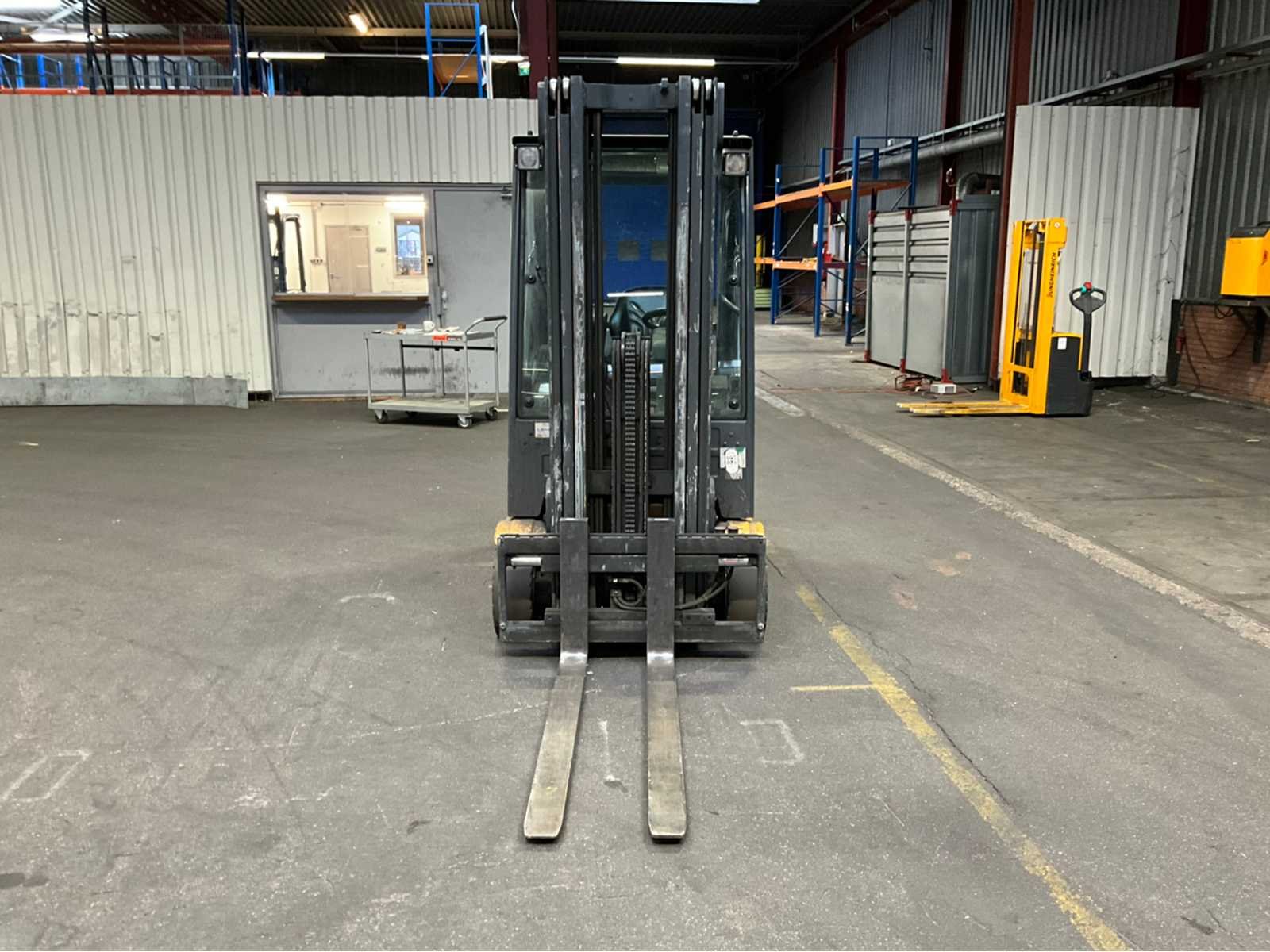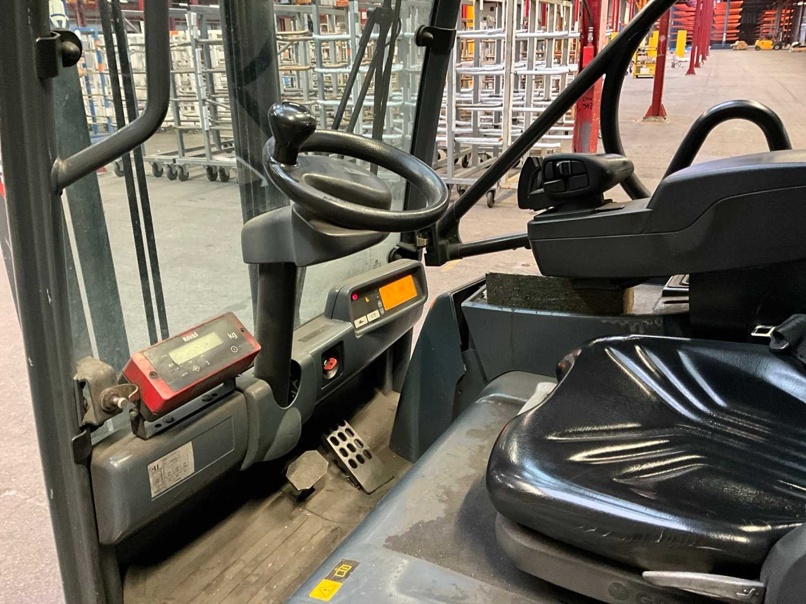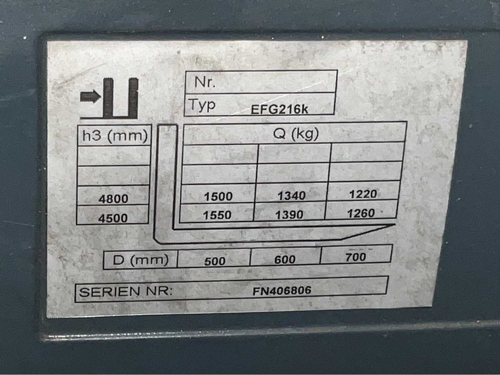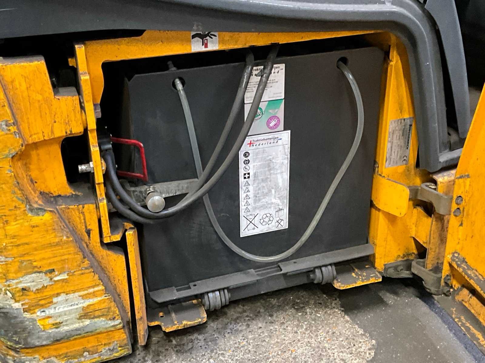 Werkverlichting; ingebouwde weegunit niet werkend; Nee Merk: Jungheinrich Type: EFG216k Mast: Triple Soort band: Volrubber banden Aantal wielen: 3 Afgelezen urenstand: 6770 Accu lader: true Free-lift: true Side-shift: true Eigen gewicht: 3500kg Hefvermogen: 1550kg
