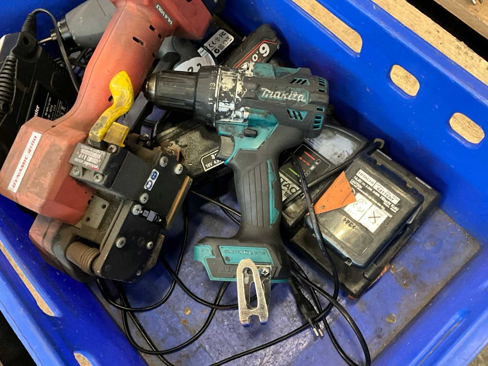 Waaronder accu omsnoerapparaat Dynamic 2100; accu boormachine; accu schroefmachine; diverse accu’s en accu laadstations; inclusief 2 kunststof kratten; zonder pallet; Nee