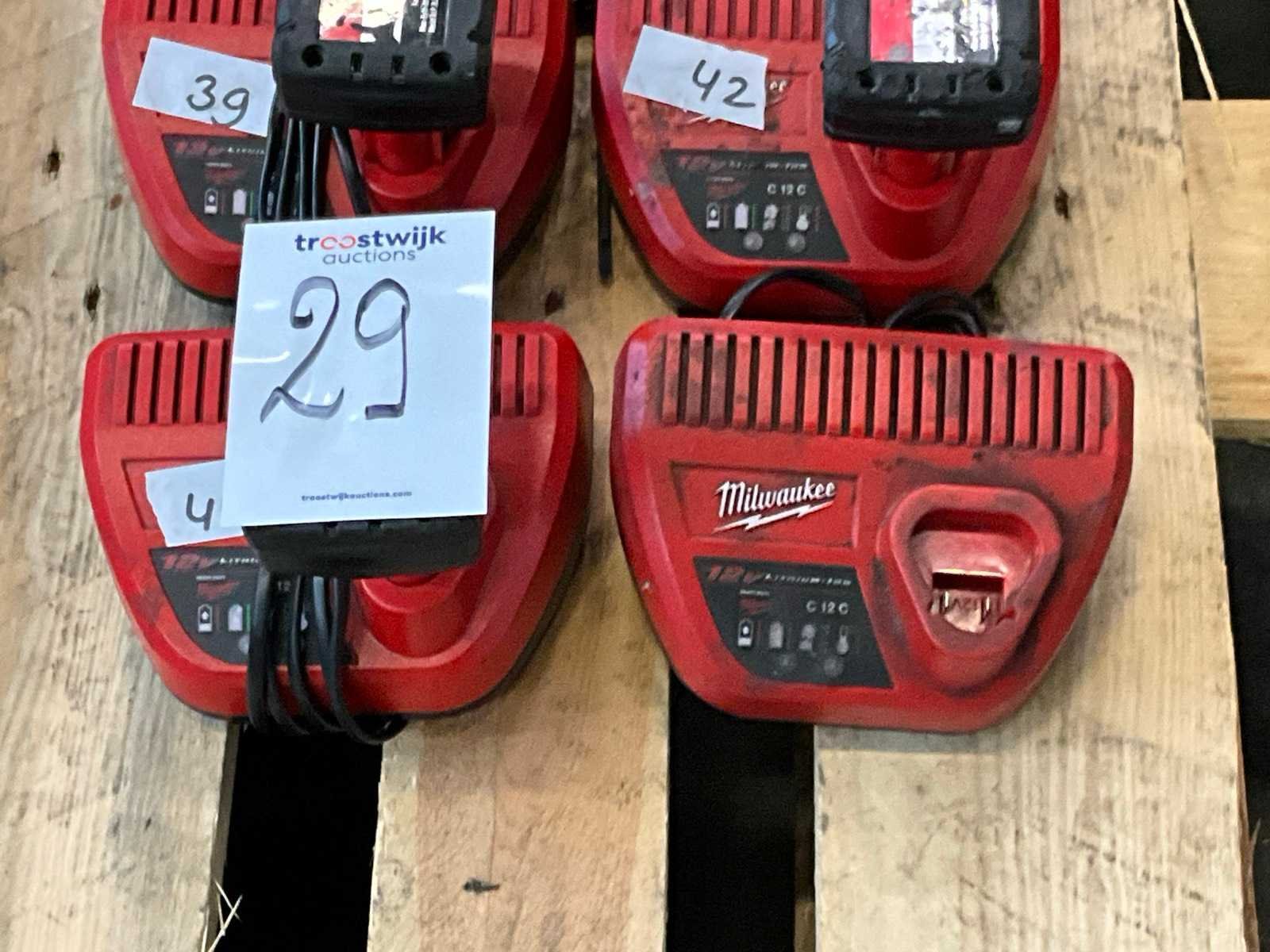 Waaronder 10x acculader; 9x accu; zonder pallet; Nee Merk: Milwaukee
